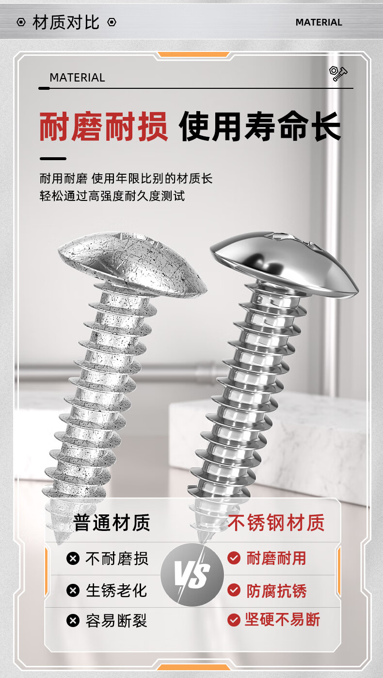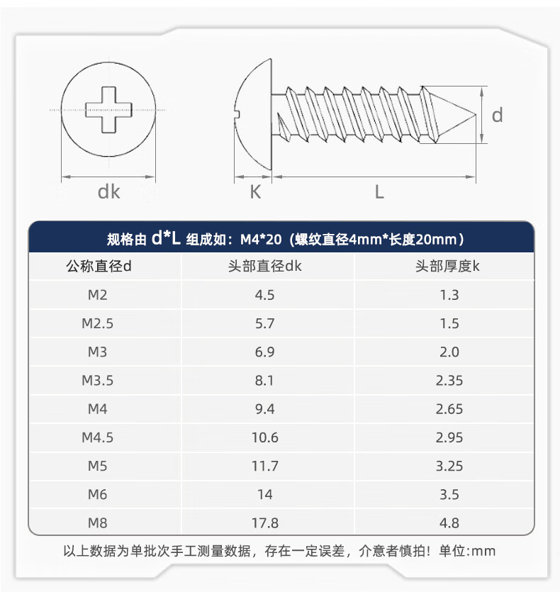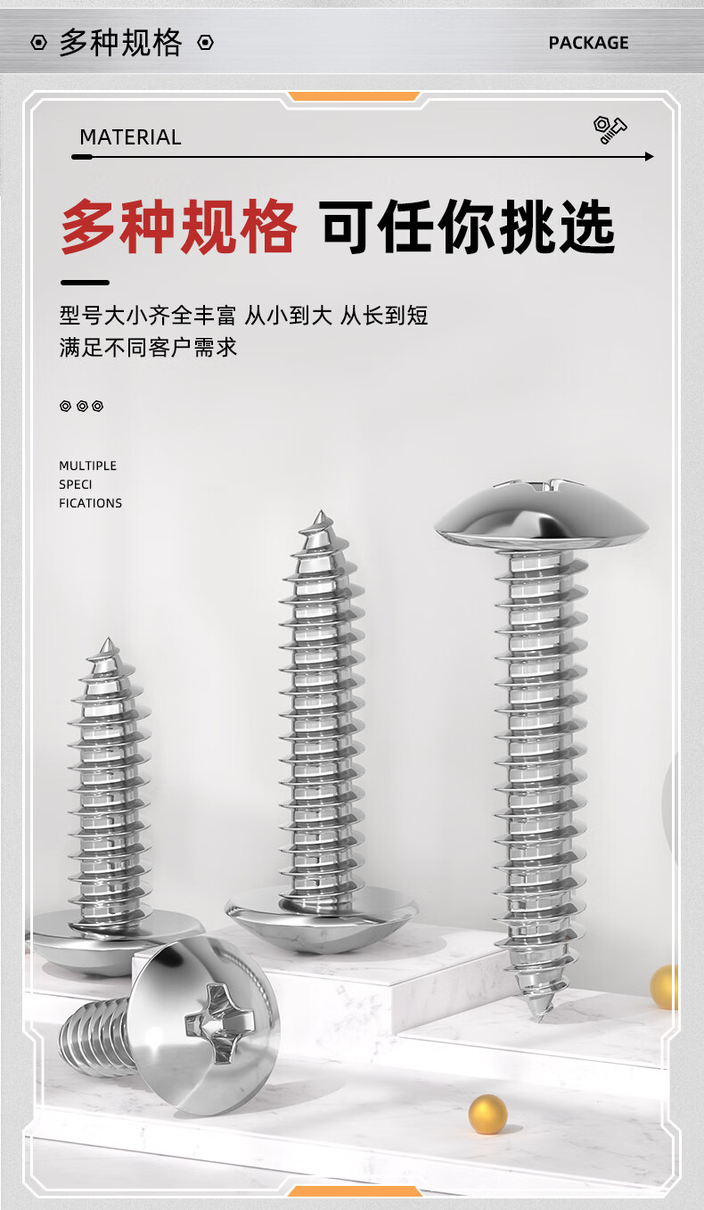 天卓五金国标316不锈钢十字槽大扁头自攻螺丝 蘑菇头大圆头木螺钉M3M4M5M6 M6*60-10个