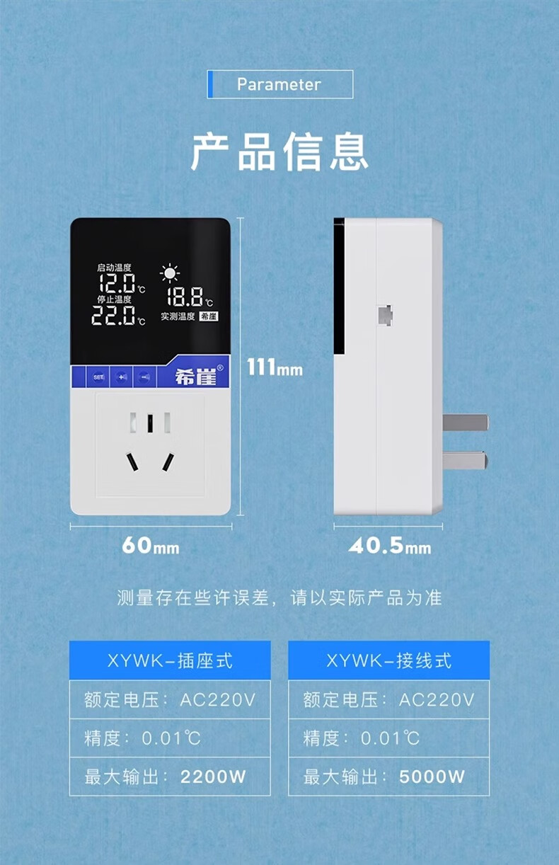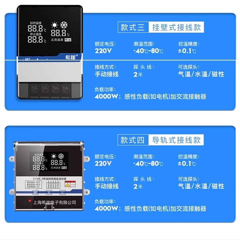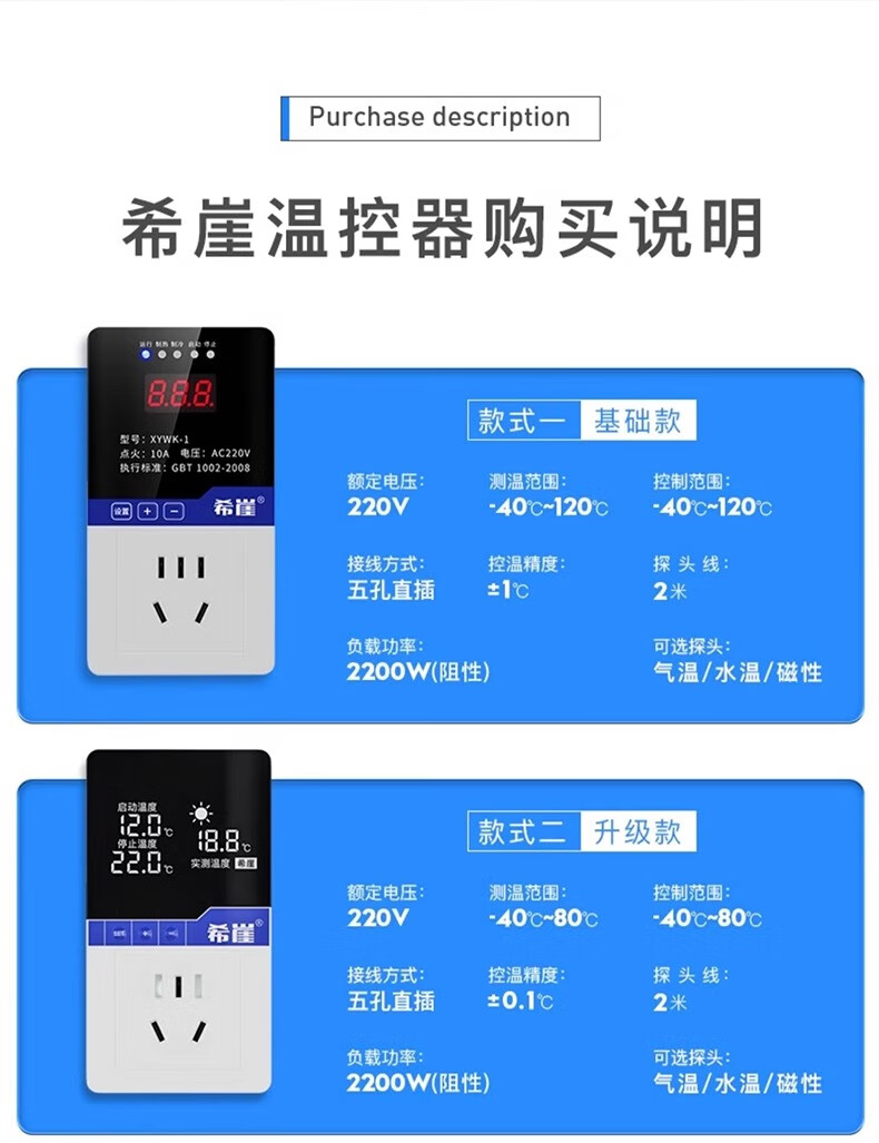 希崖温控器插座开关控制器智能数显电子控温仪温度控制器鱼缸乌龟养殖 款2气温头2m+温控器2.2kw(三显推荐款)