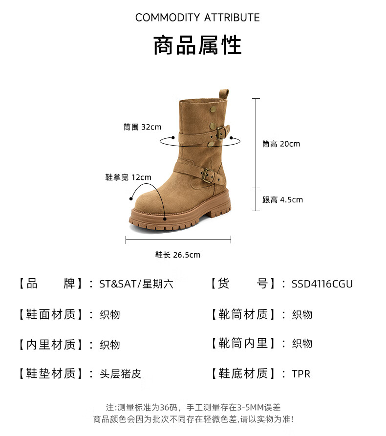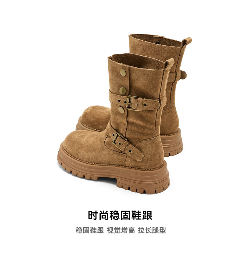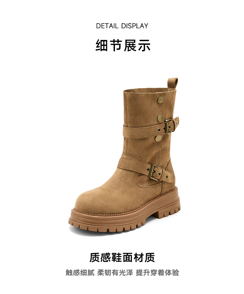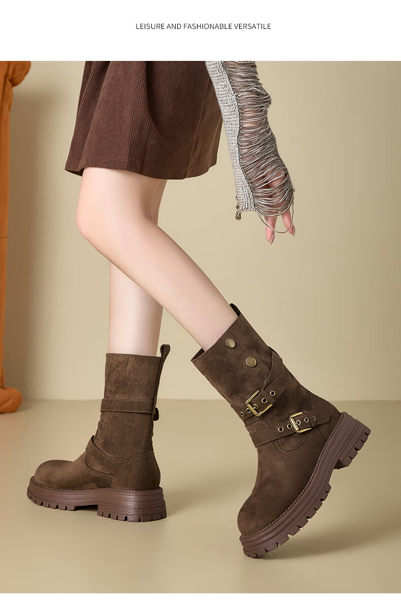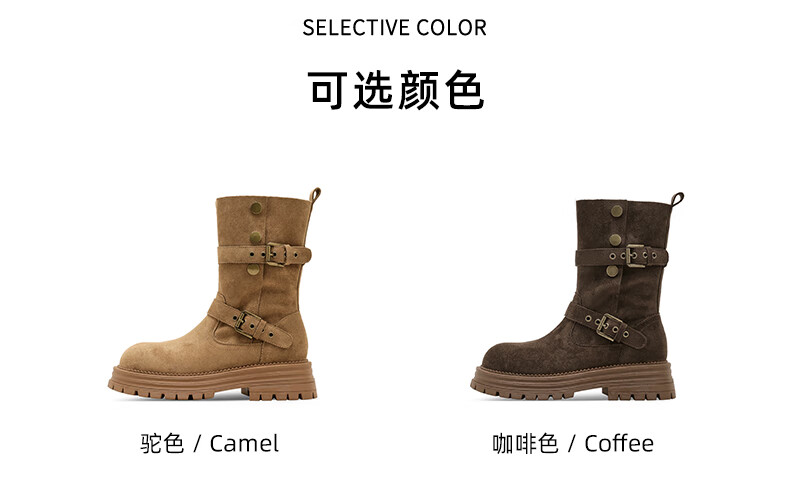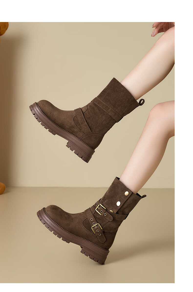 星期六美拉德短靴女款2025新款秋冬咖色骑士靴子女西部牛仔马丁靴 咖啡色【短筒款】 36