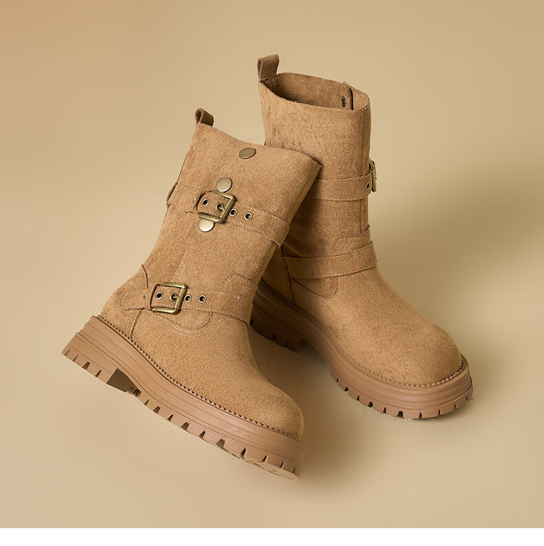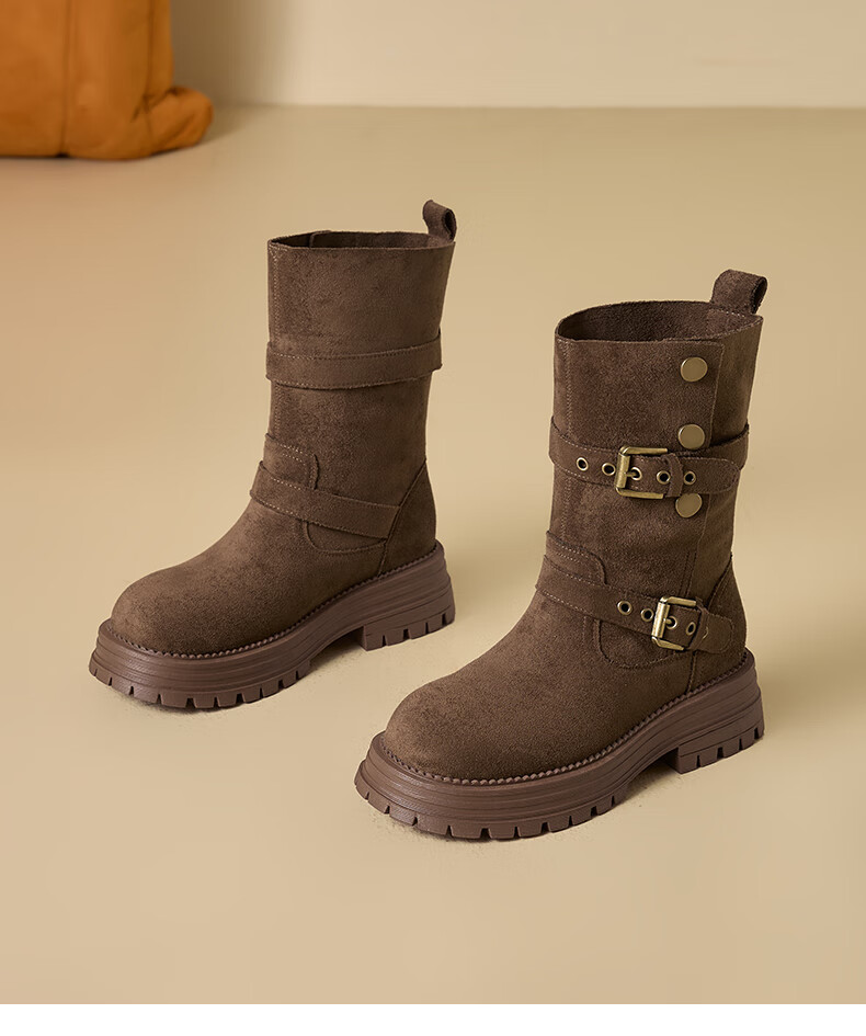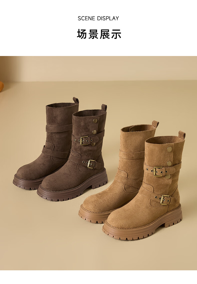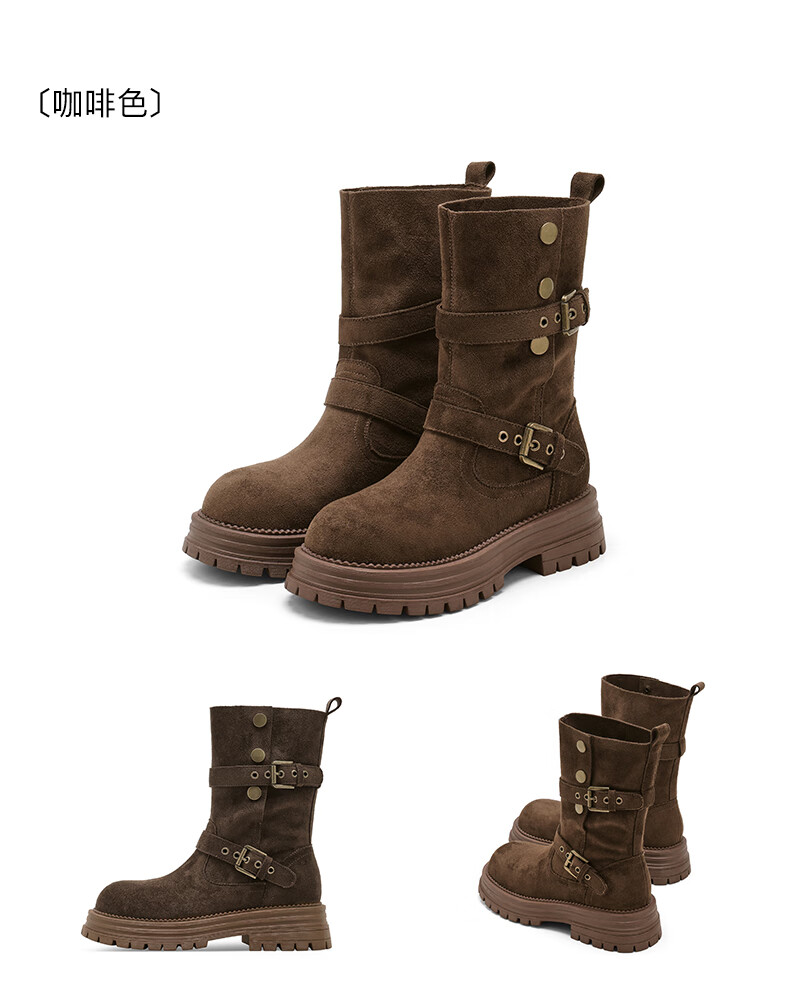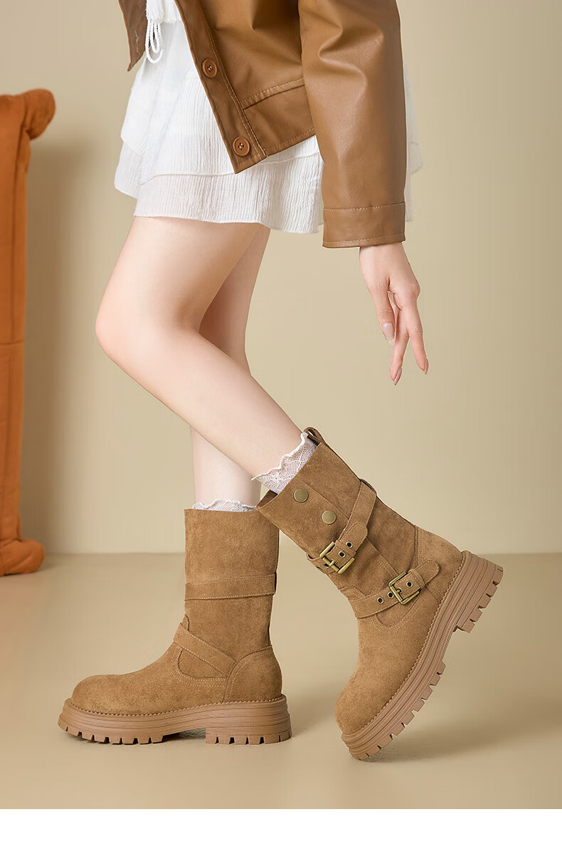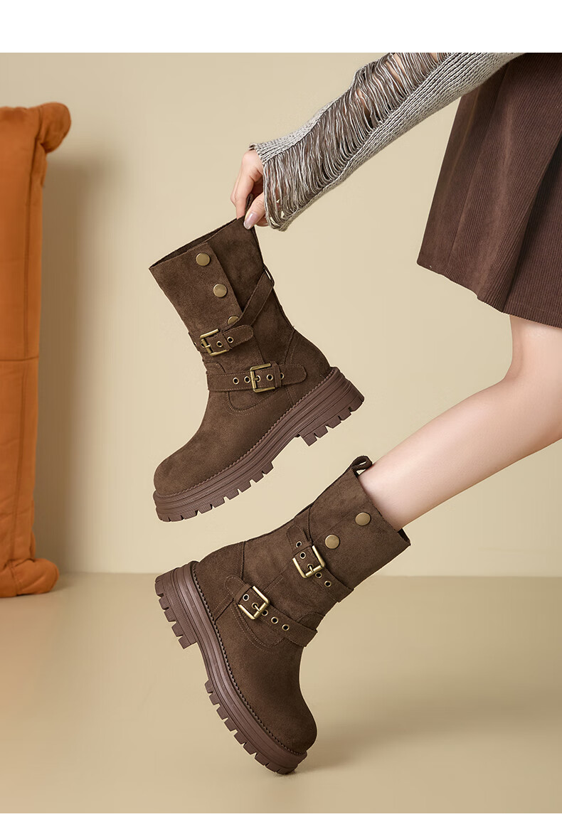 星期六美拉德短靴女款2025新款秋冬咖色骑士靴子女西部牛仔马丁靴 咖啡色【短筒款】 36