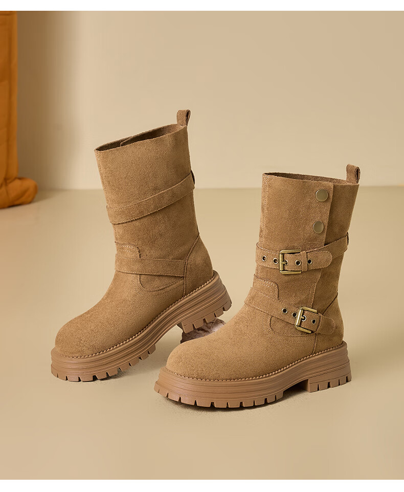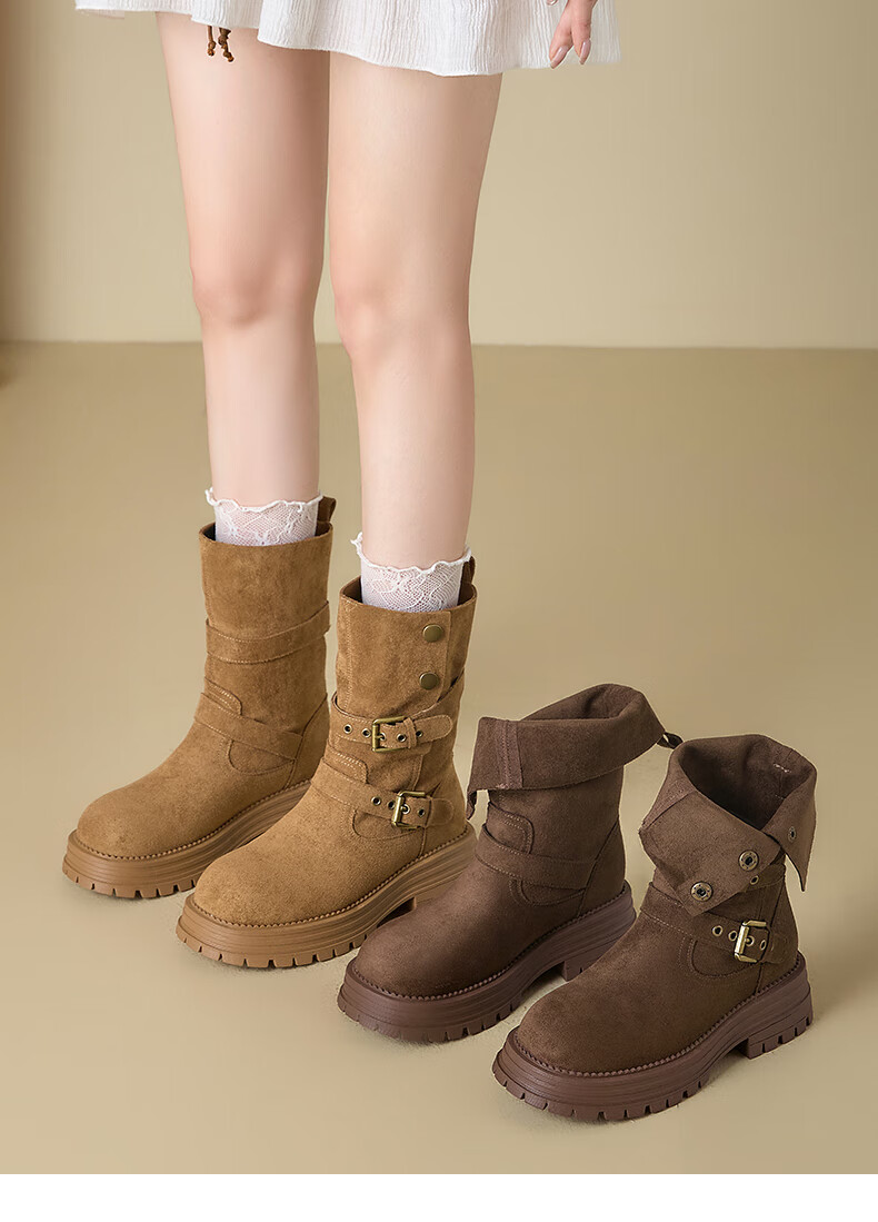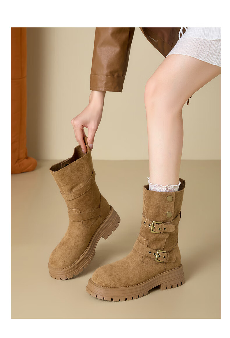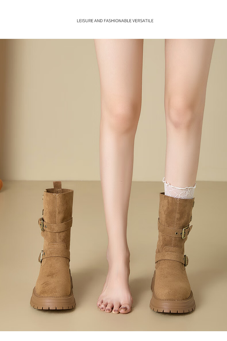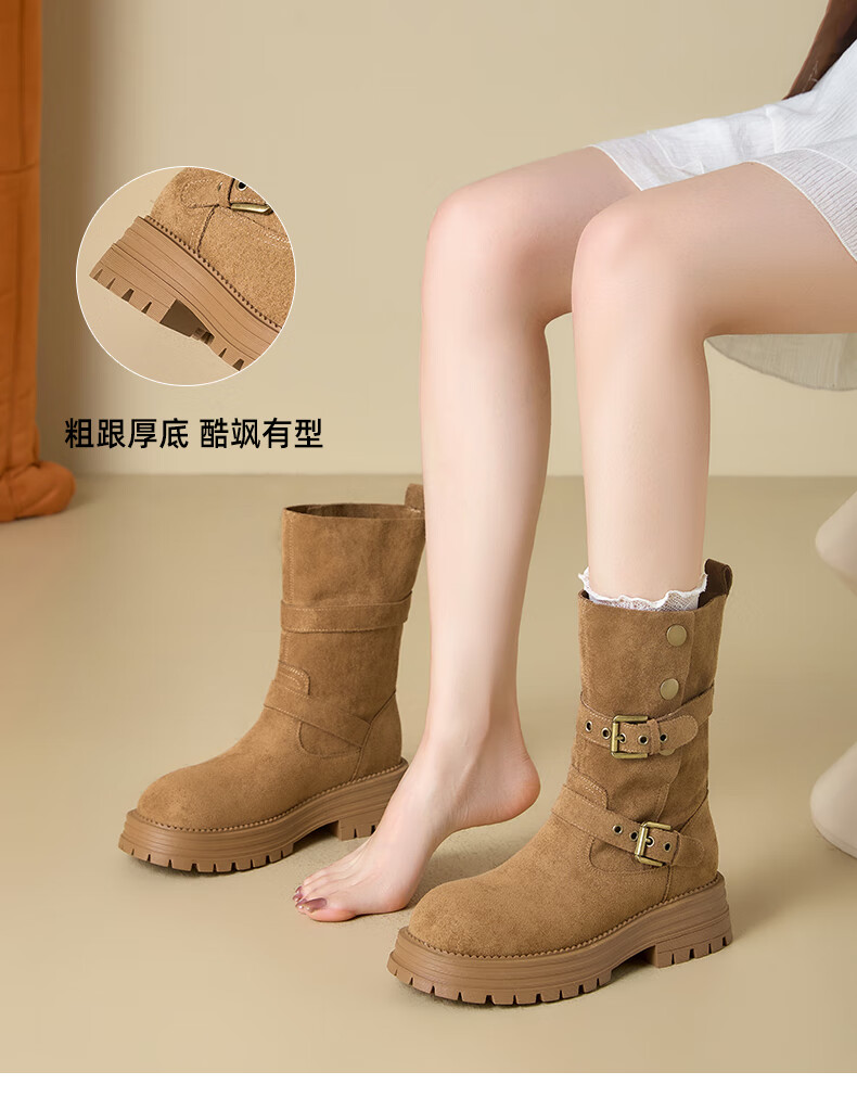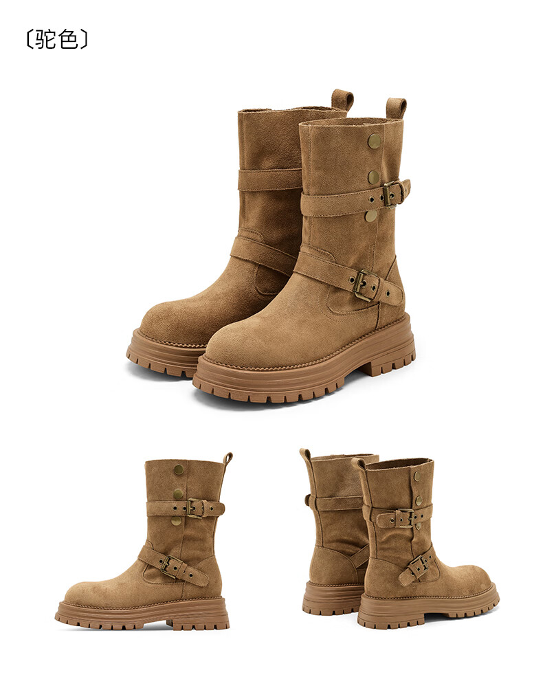 星期六美拉德短靴女款2025新款秋冬咖色骑士靴子女西部牛仔马丁靴 咖啡色【短筒款】 36