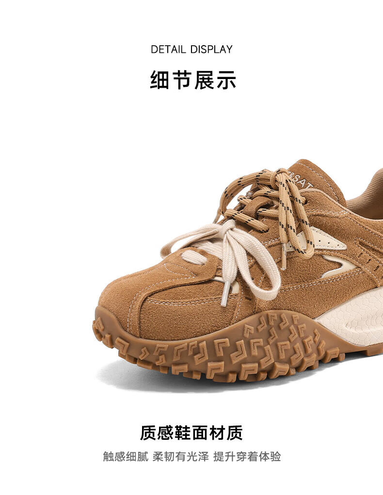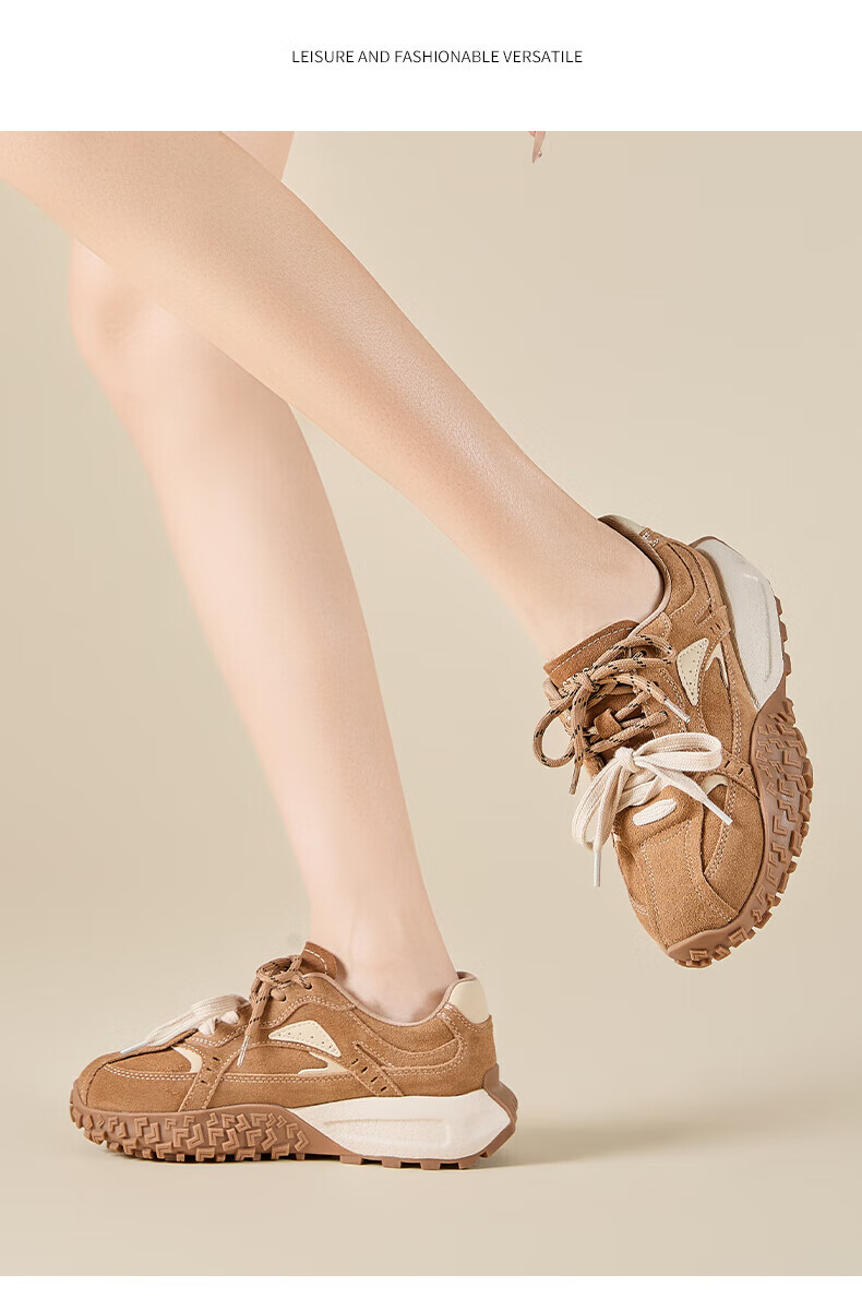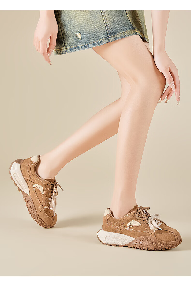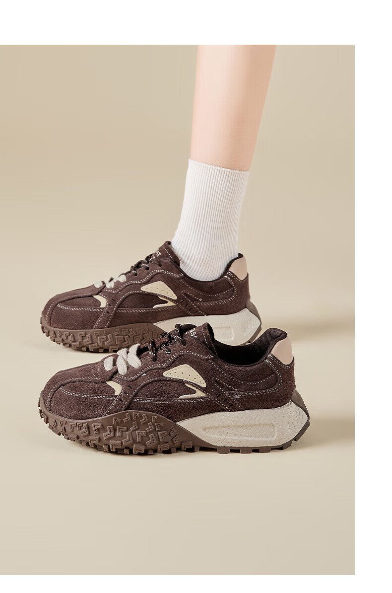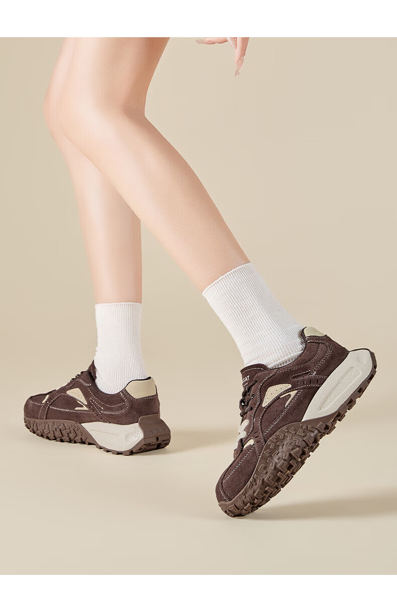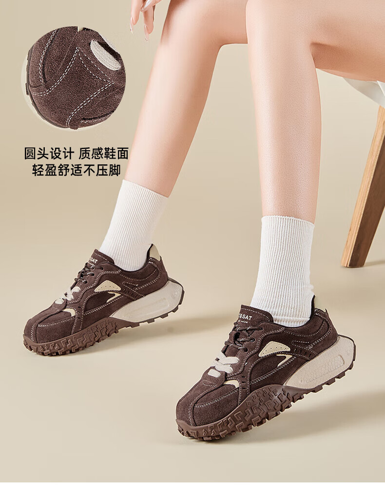 星期六内增高德训鞋女鞋2025新款秋冬加绒休闲运动鞋舒适百搭阿甘鞋女 深咖色【单里款】 35