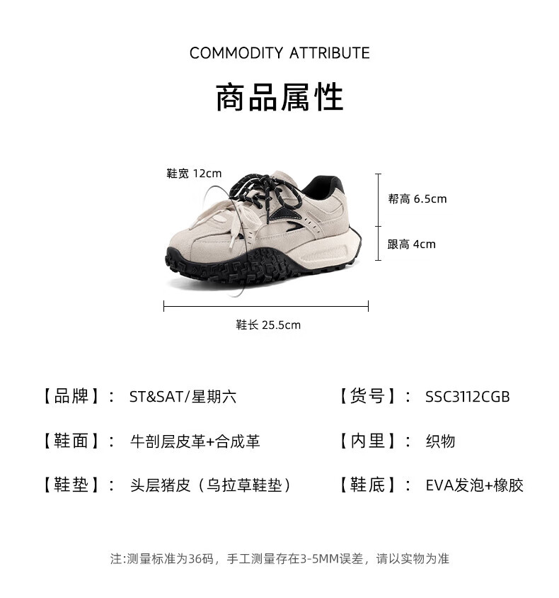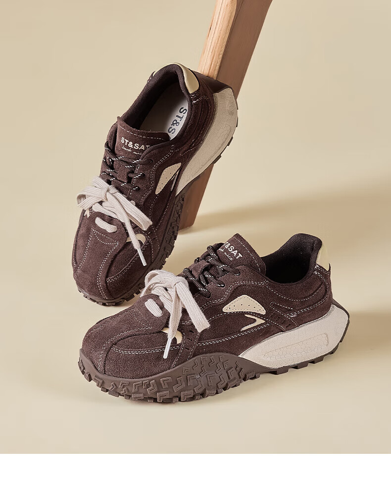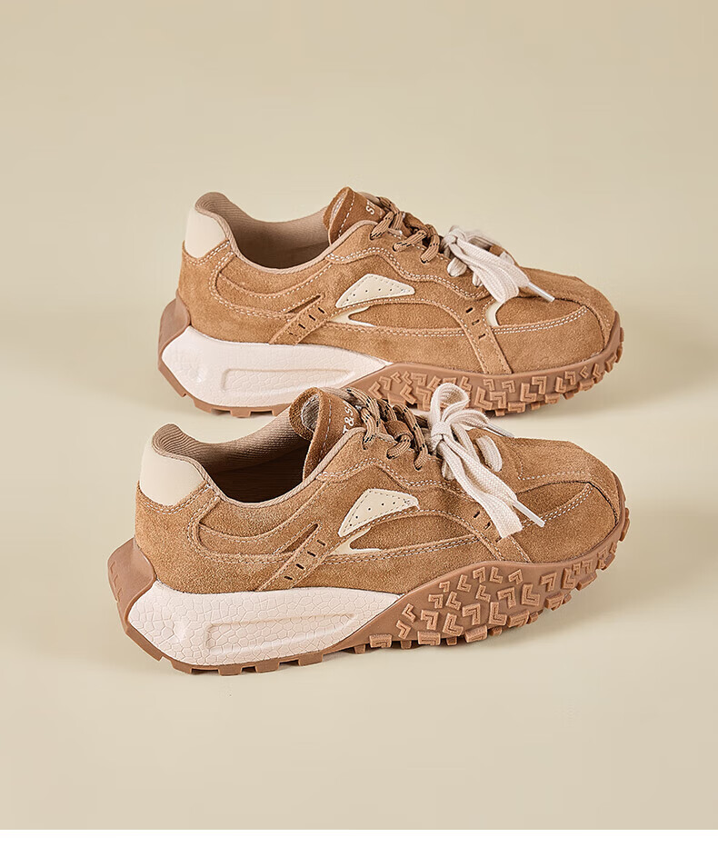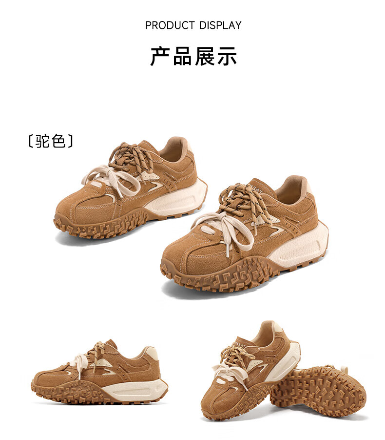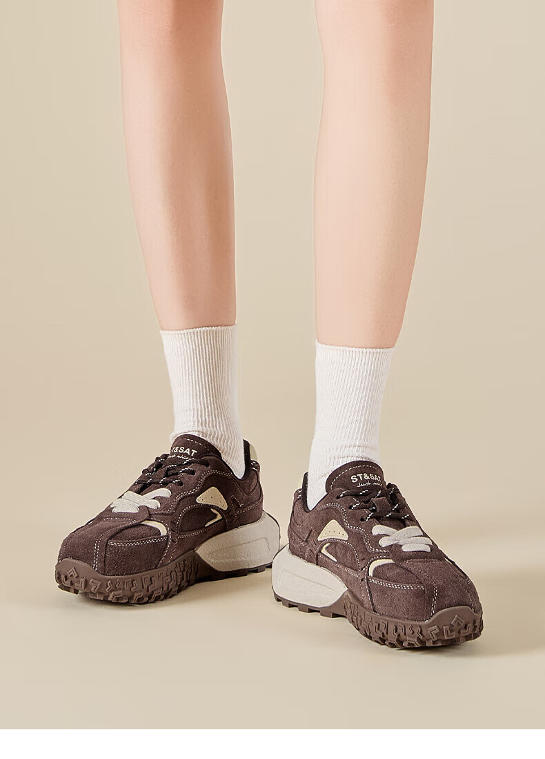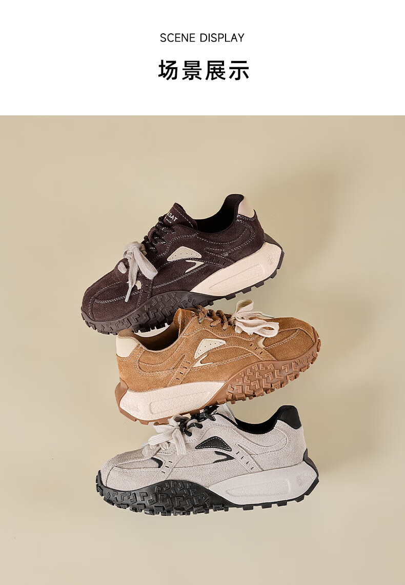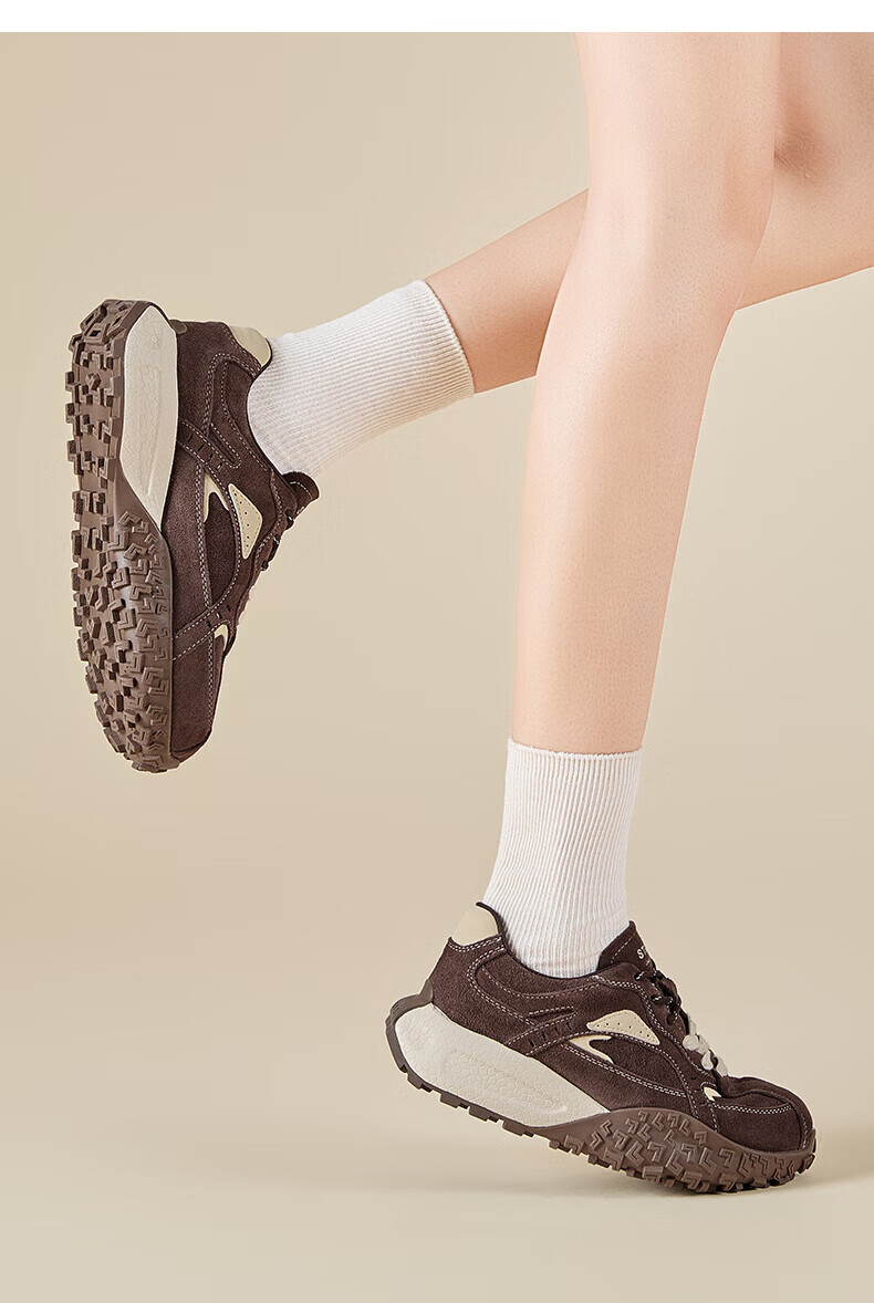星期六内增高德训鞋女鞋2025新款秋冬加绒休闲运动鞋舒适百搭阿甘鞋女 深咖色【单里款】 35