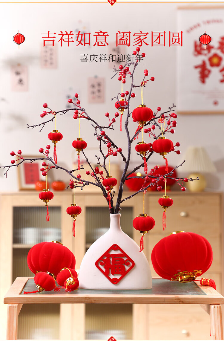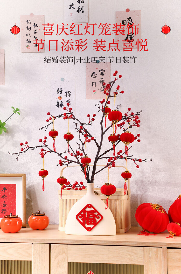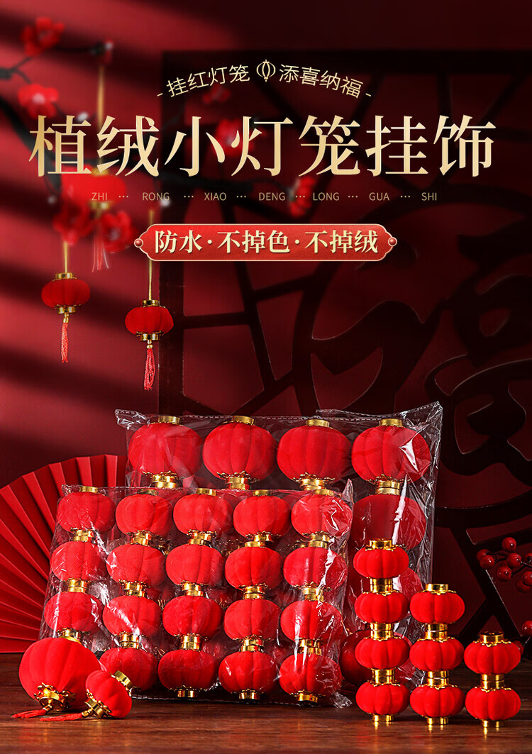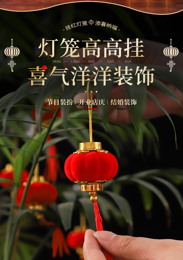 OYKTN小灯笼挂饰元旦过新年红灯笼装饰品2026马年春节挂件树上场景布置 植绒红灯笼3cm(30个)