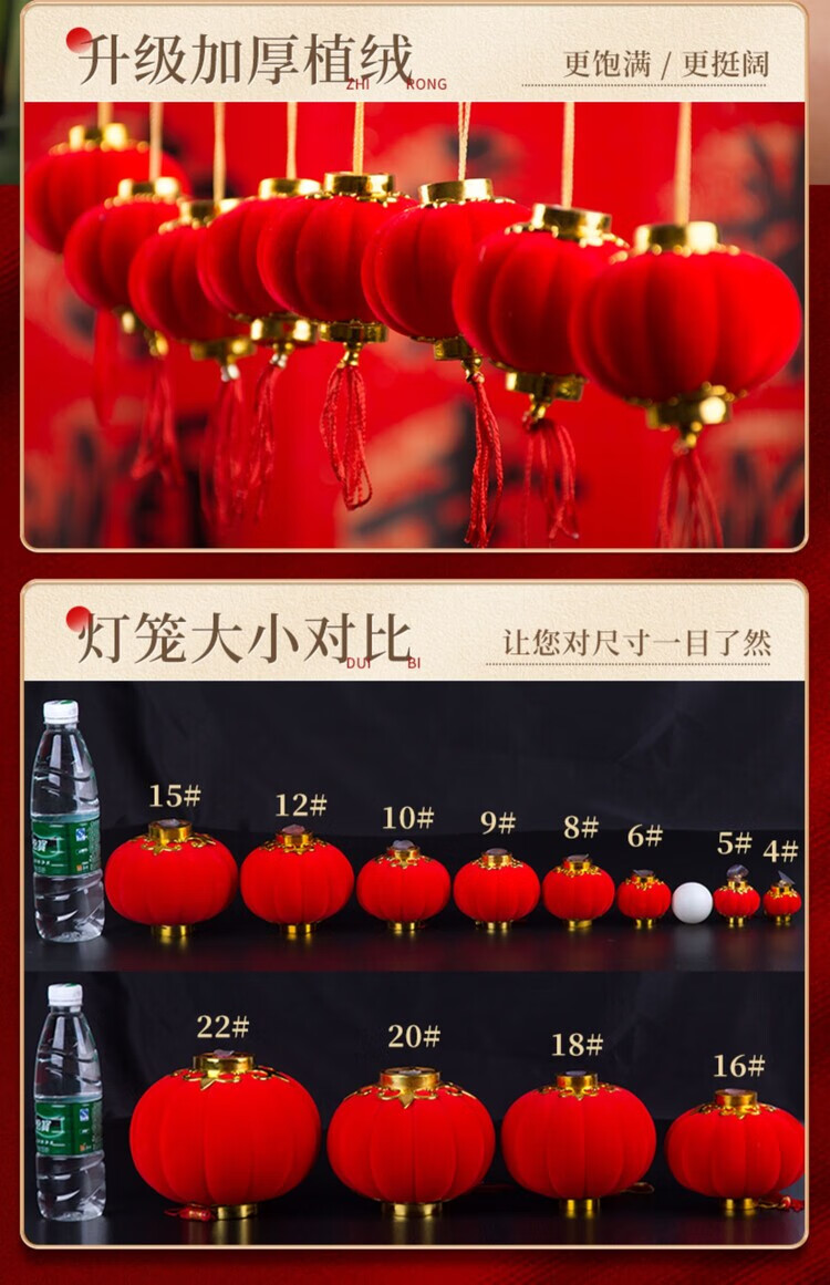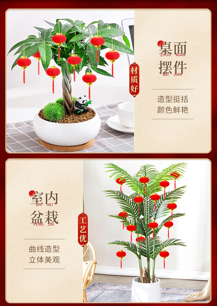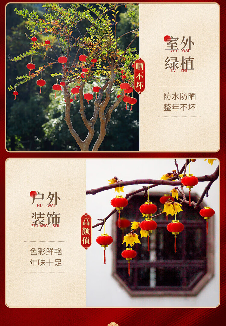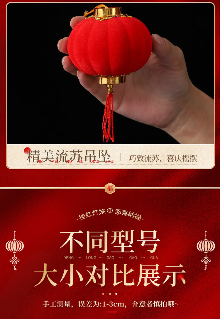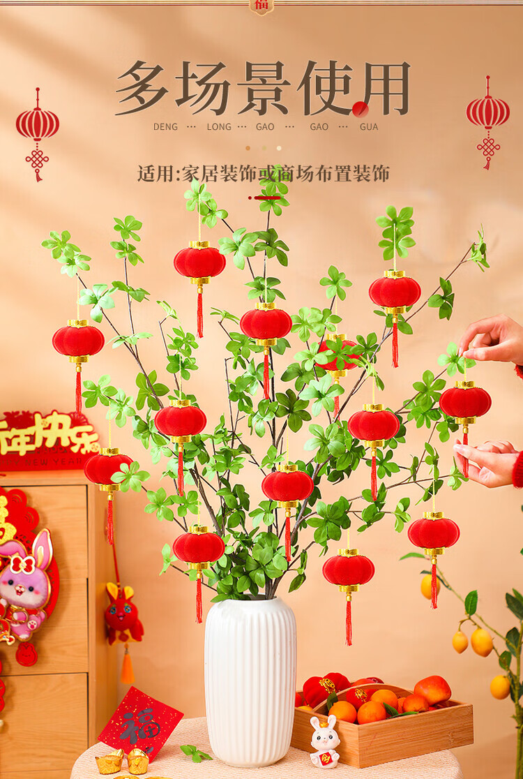 OYKTN小灯笼挂饰元旦过新年红灯笼装饰品2026马年春节挂件树上场景布置 植绒红灯笼3cm(30个)