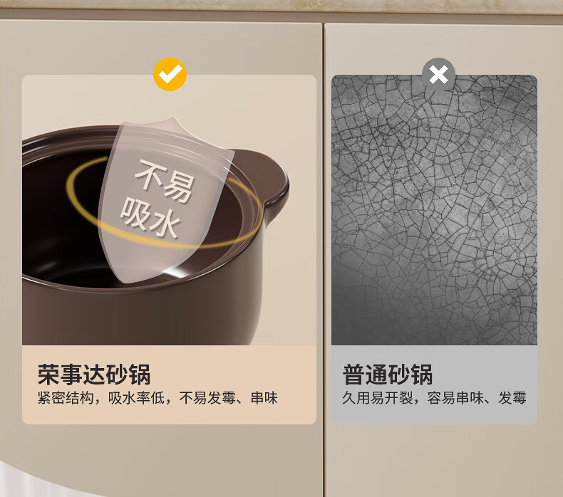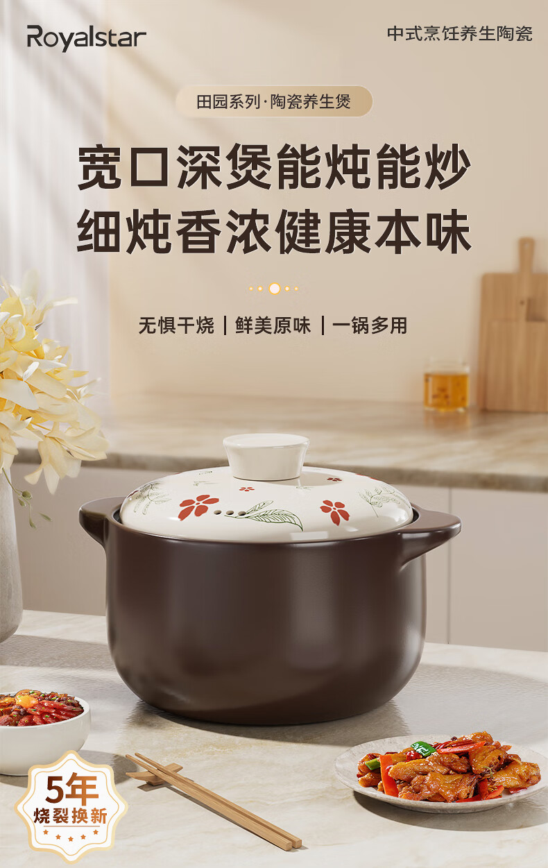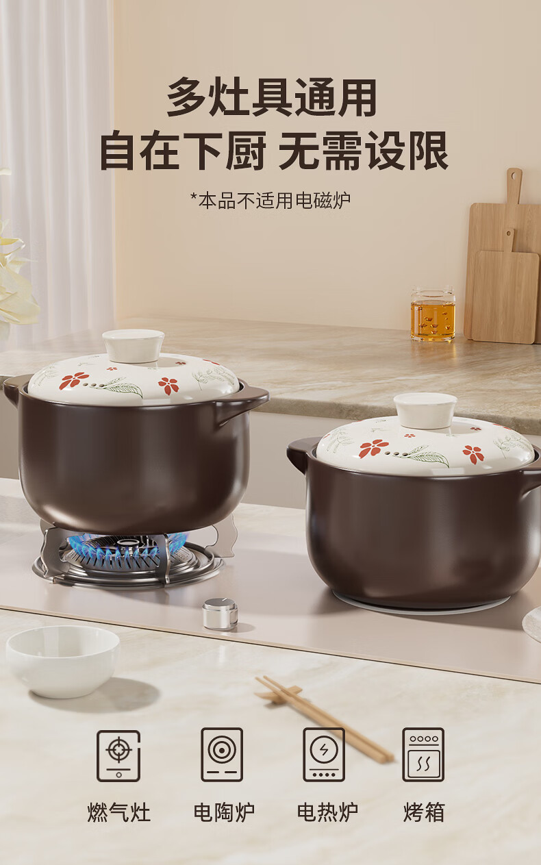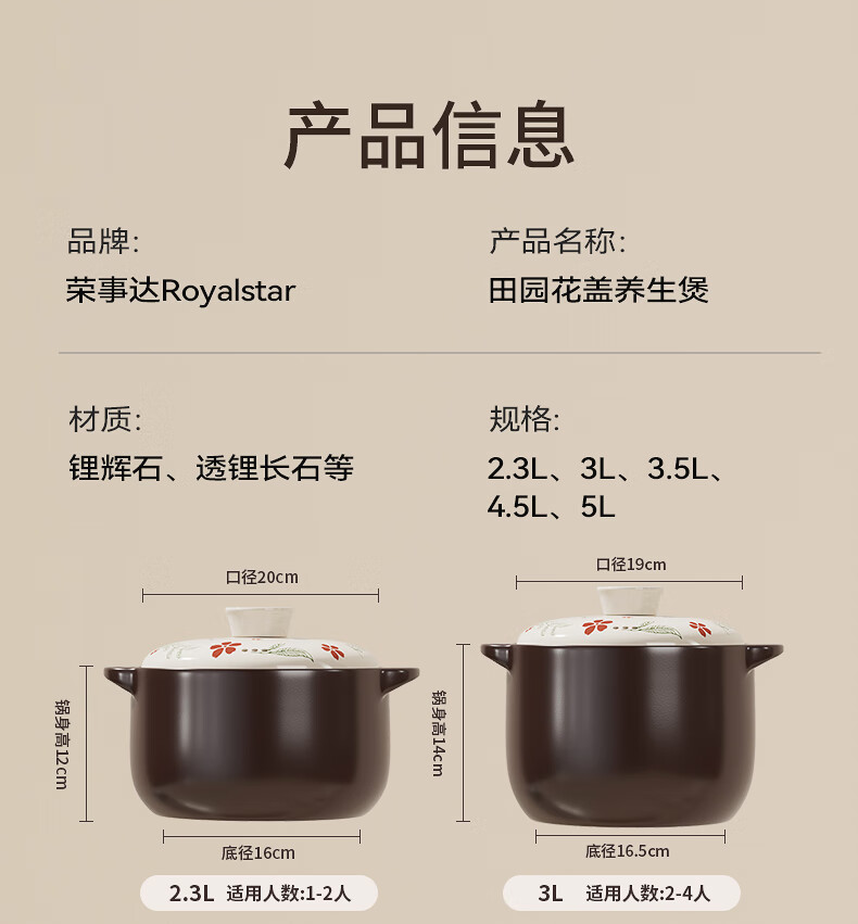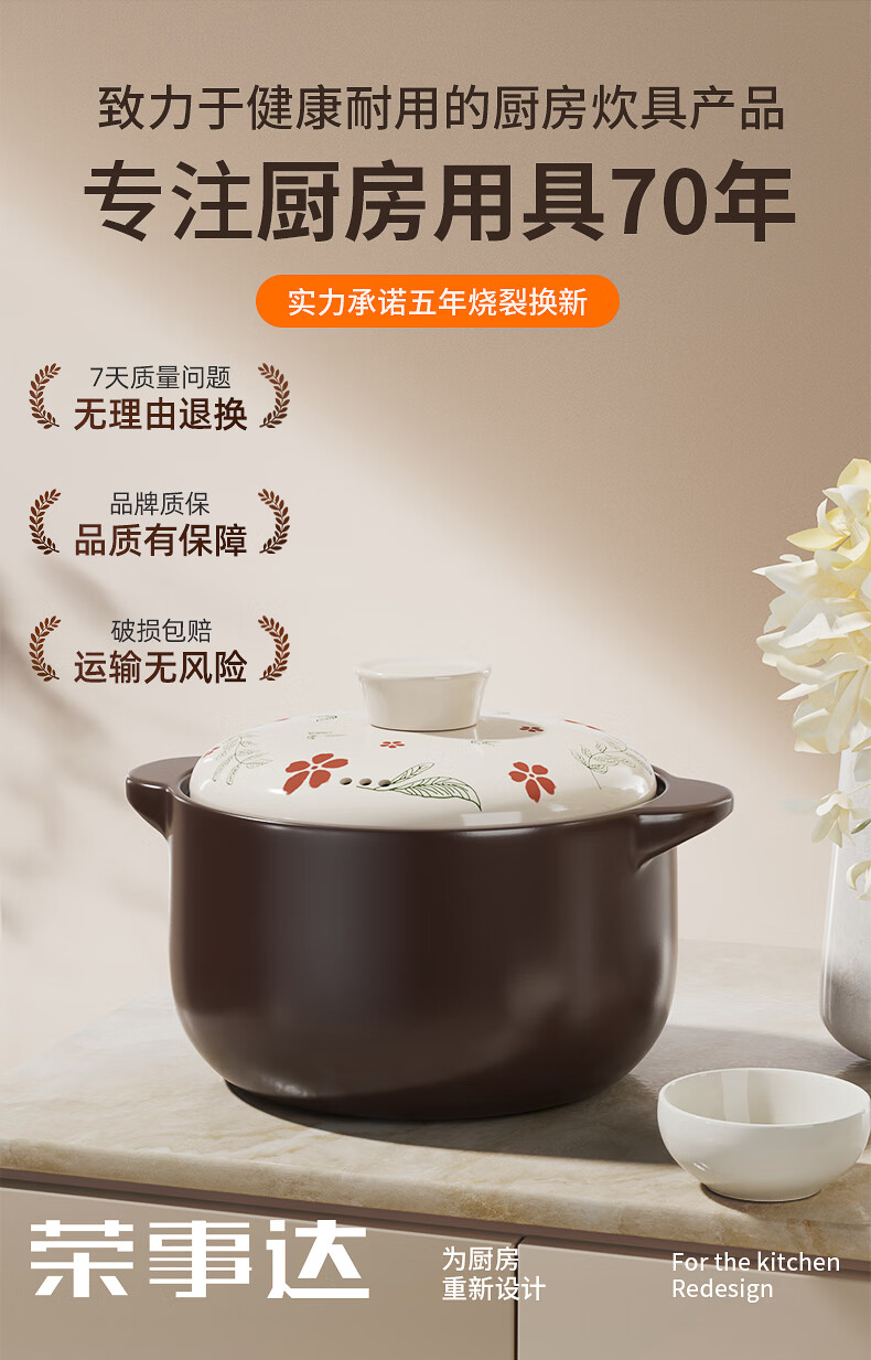 荣事达砂锅家用燃气炖锅陶瓷煲仔饭炖汤锅耐高温干烧不裂沙锅汤锅 【加厚】干烧不裂砂锅【适合2-4人】 3.0L