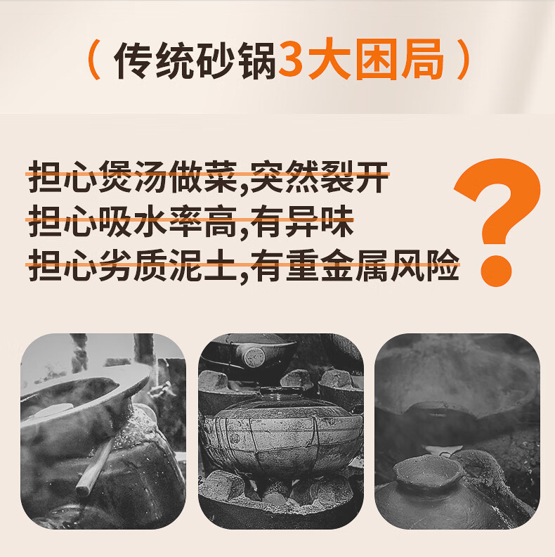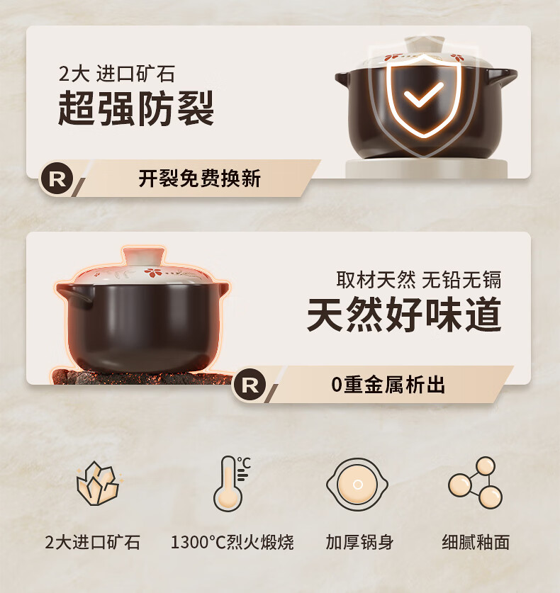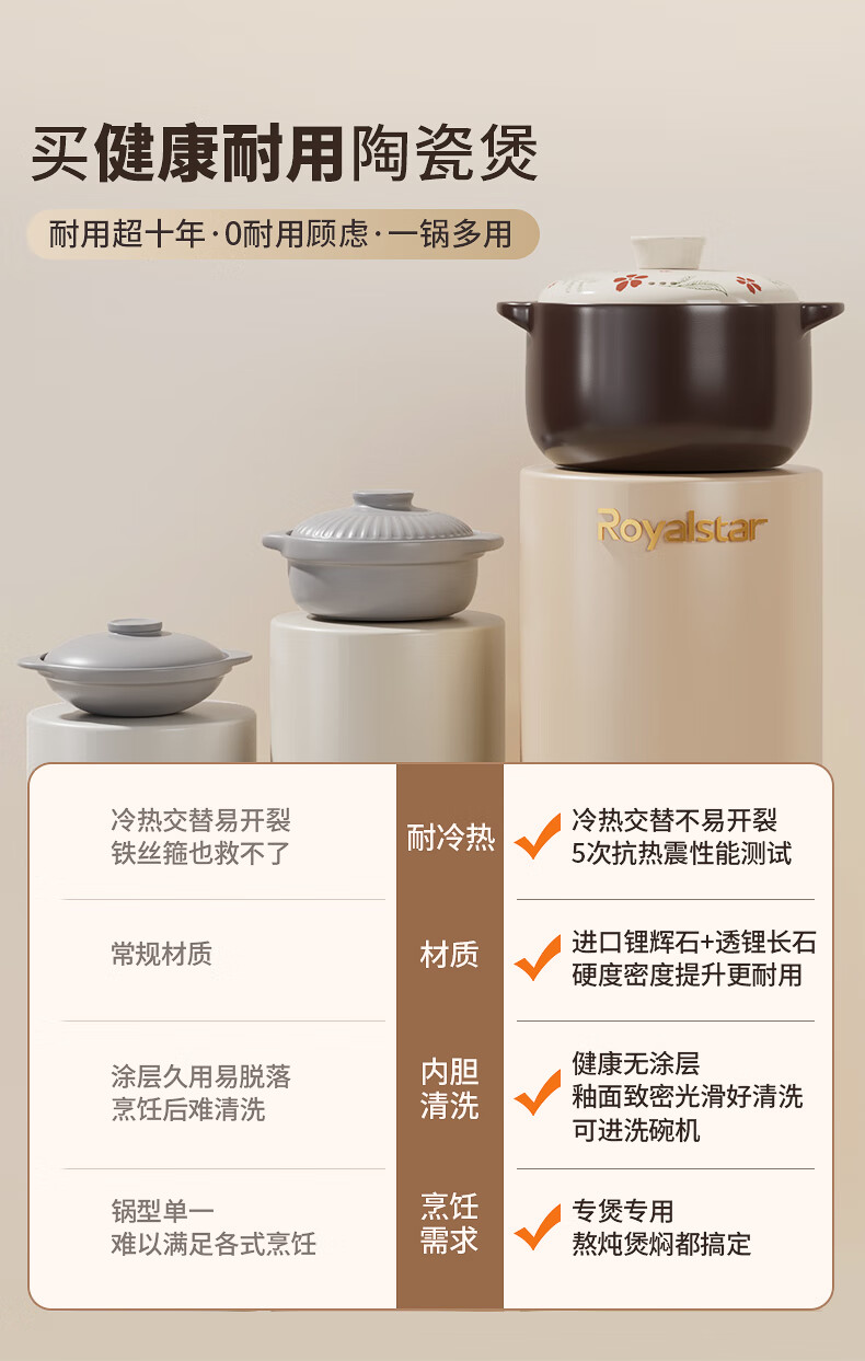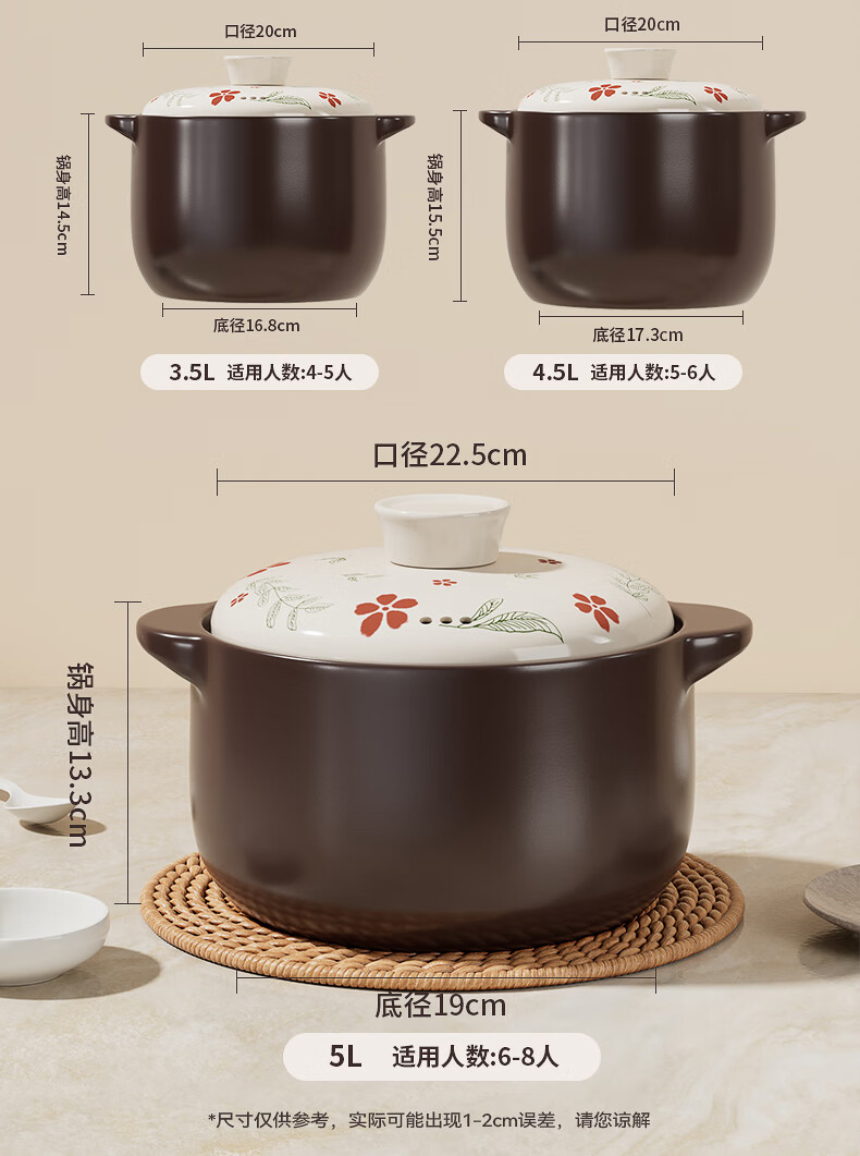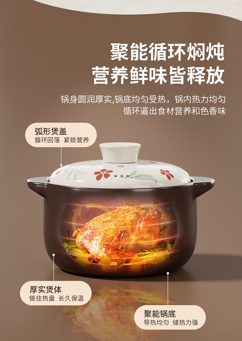 荣事达砂锅家用燃气炖锅陶瓷煲仔饭炖汤锅耐高温干烧不裂沙锅汤锅 【加厚】干烧不裂砂锅【适合2-4人】 3.0L