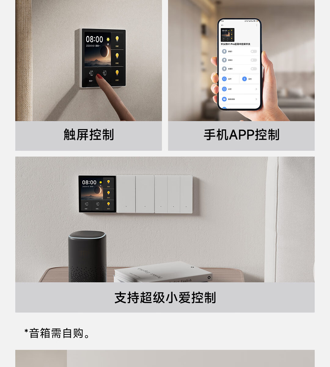 平头熊新款F1PRO超薄中控屏开关蓝牙2.0 白色