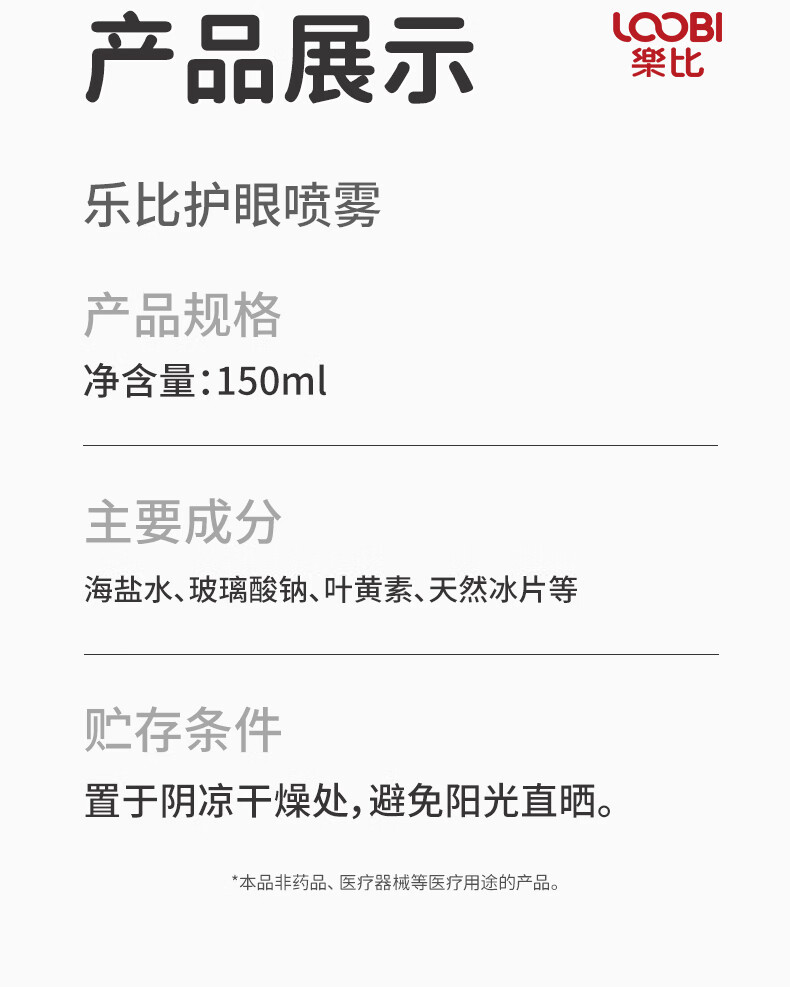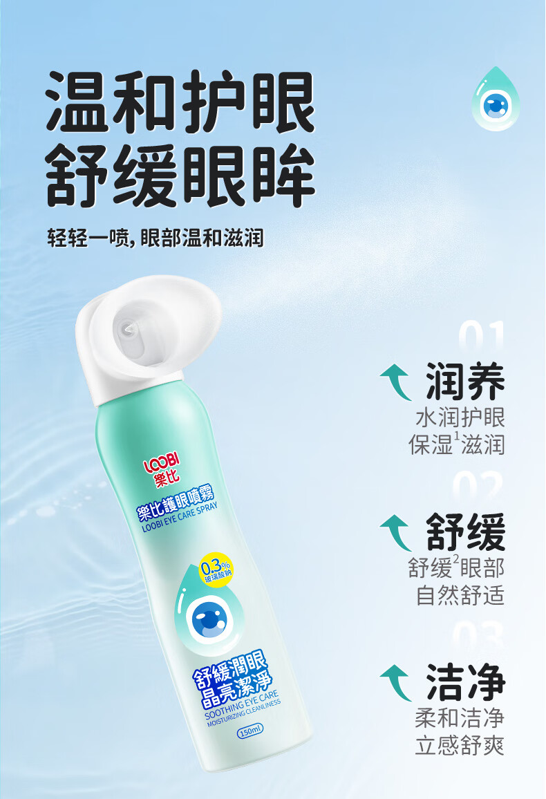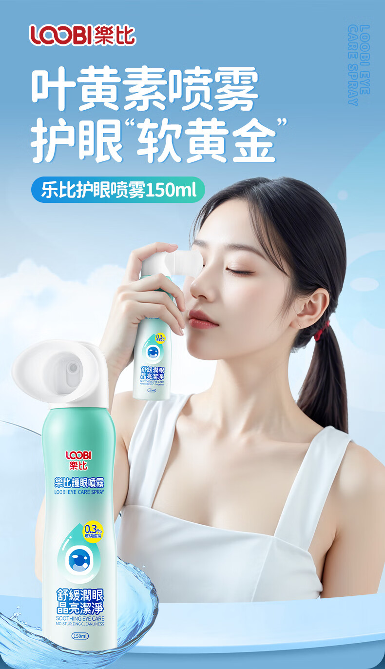 乐比(LOOBI)叶黄素护眼喷雾洗眼液150ml缓解眼疲劳干涩模糊防近视雾化润眼液
