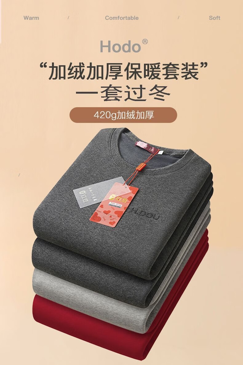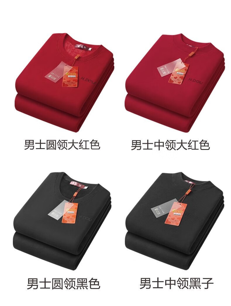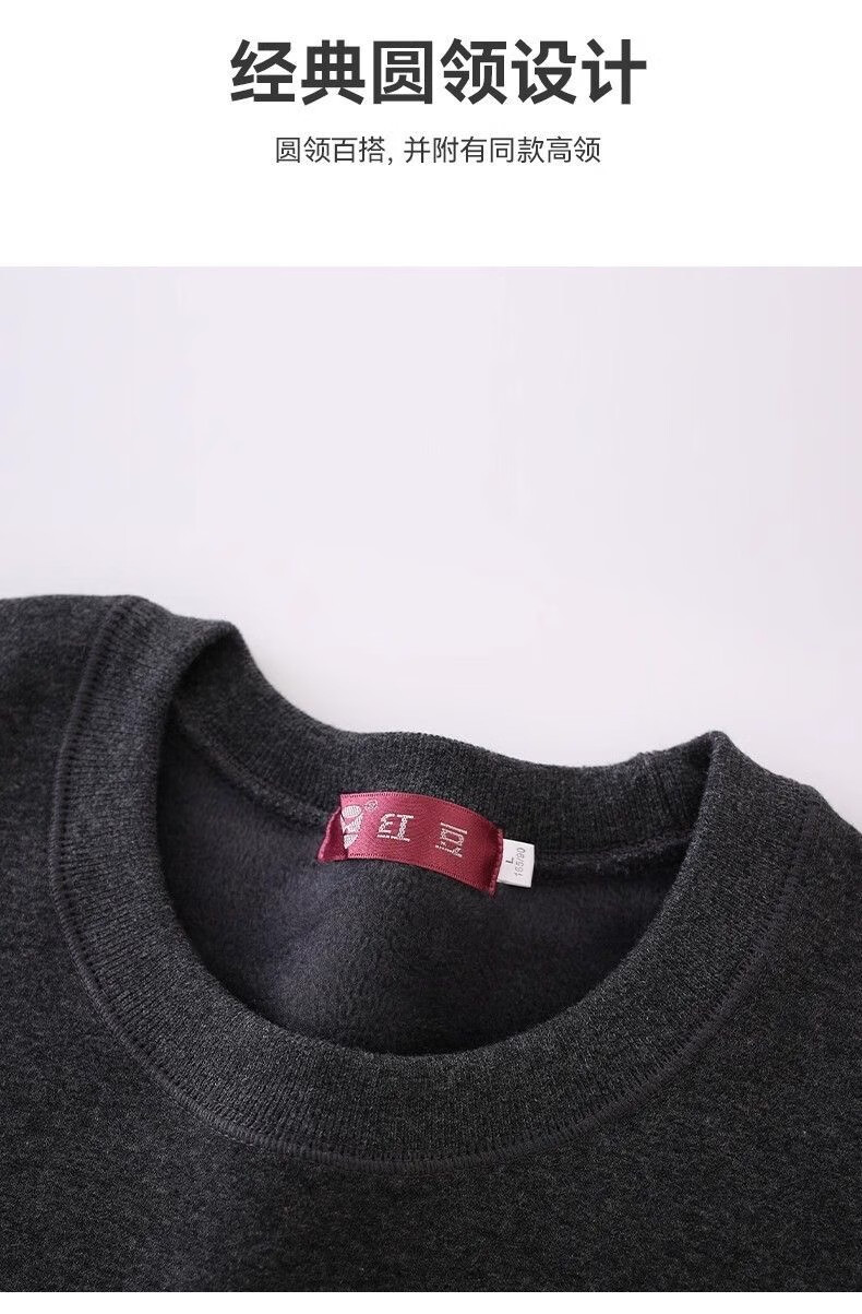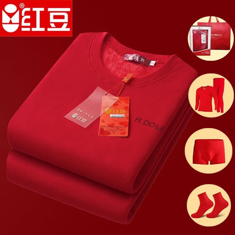 红豆本命年属马大红色保暖内衣套装加绒加厚男女结婚喜庆蛇年内衣礼盒 男士圆领大红色+内裤+袜子 XL /170