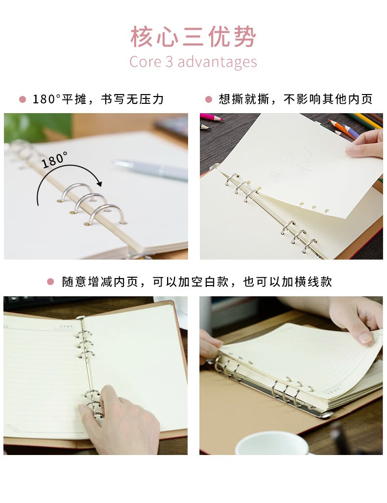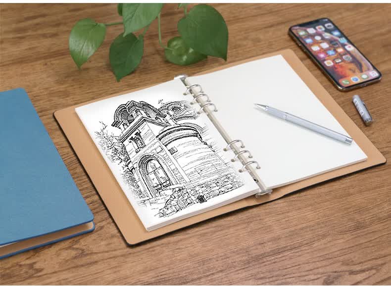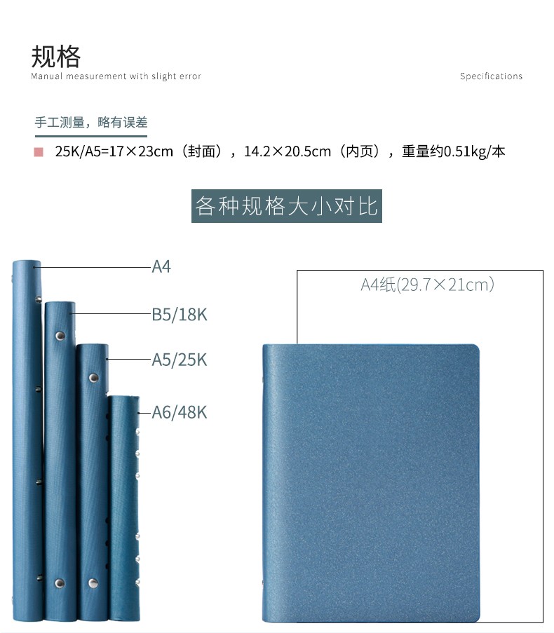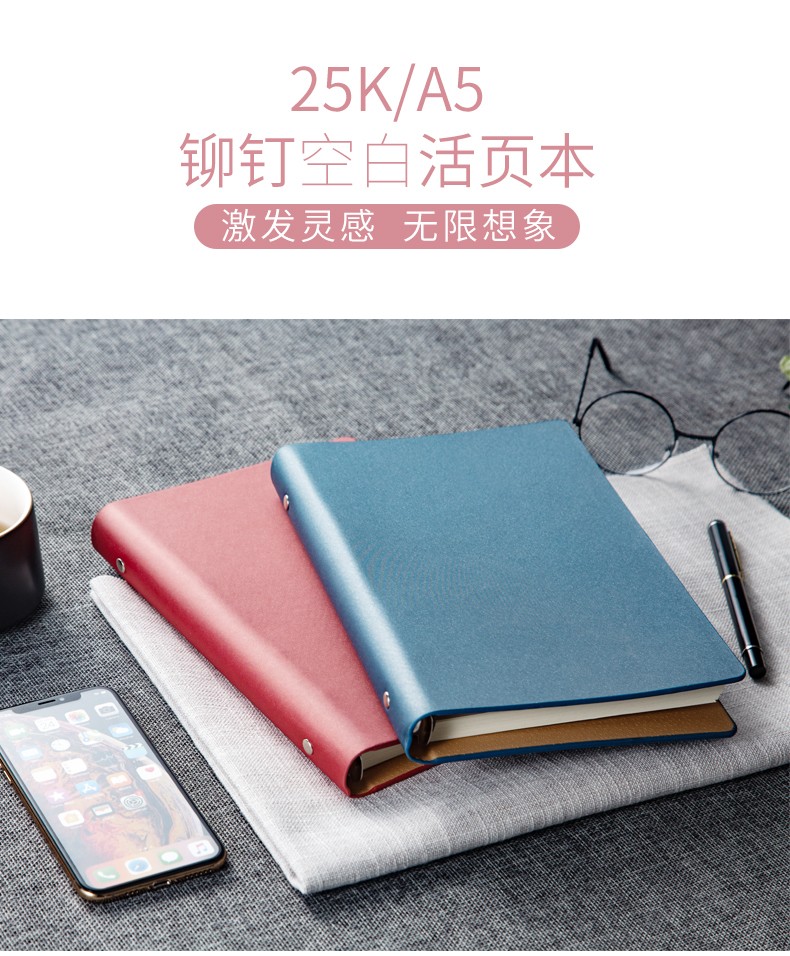 九千年 活页笔记本b5a4a5可拆卸外壳替芯空白页商务记事本加厚六孔定制 内页160页 可定制 A4蓝色