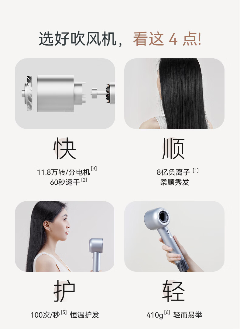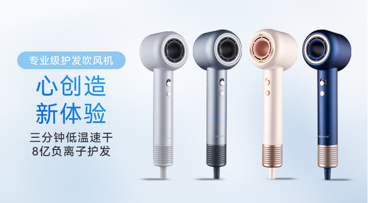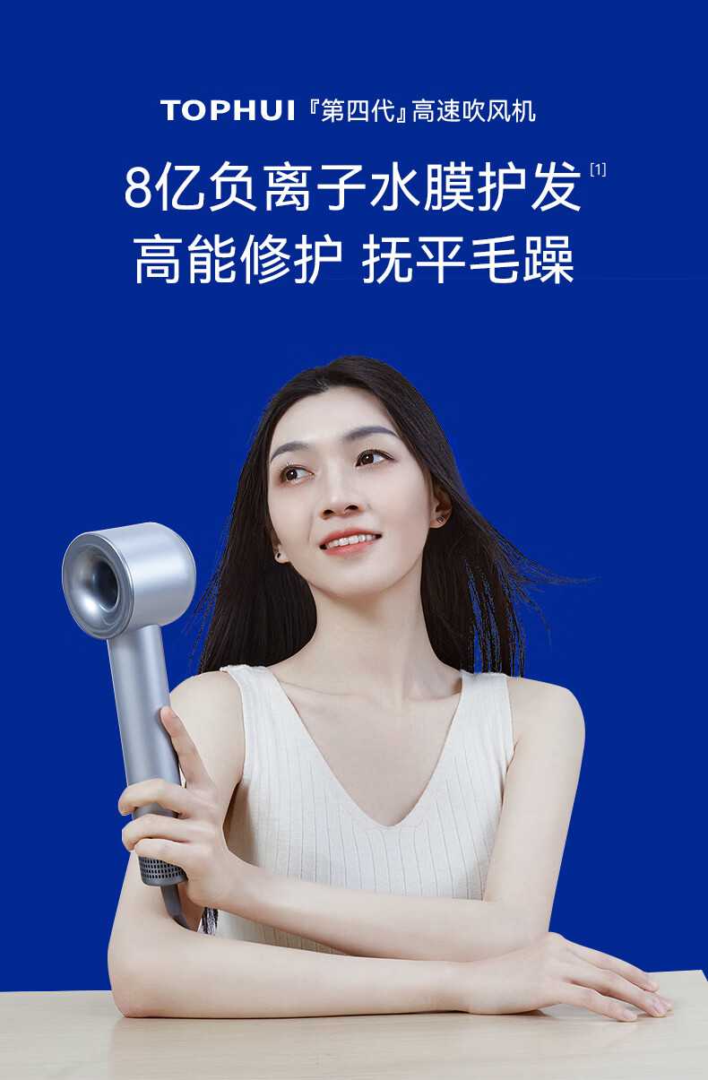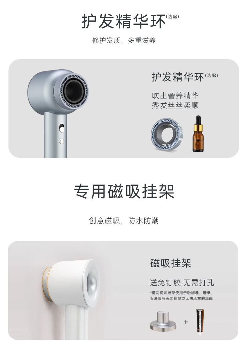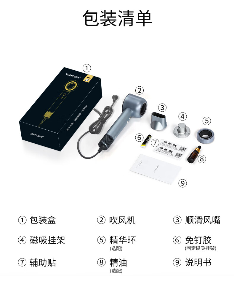 TOPHUI顶惠高速吹风机家用电吹风筒8亿负离子护发大功率风力冷热速干智能恒温养发护发礼盒孕妇儿童 节日礼物 【高级款·香槟粉】(磁吸挂架*1 + 顺滑风嘴*1)