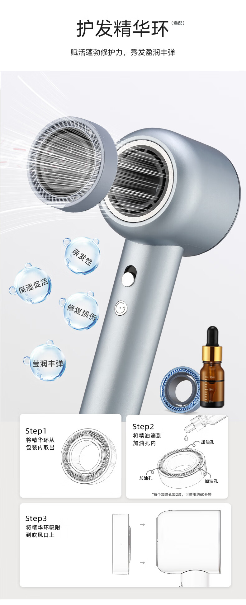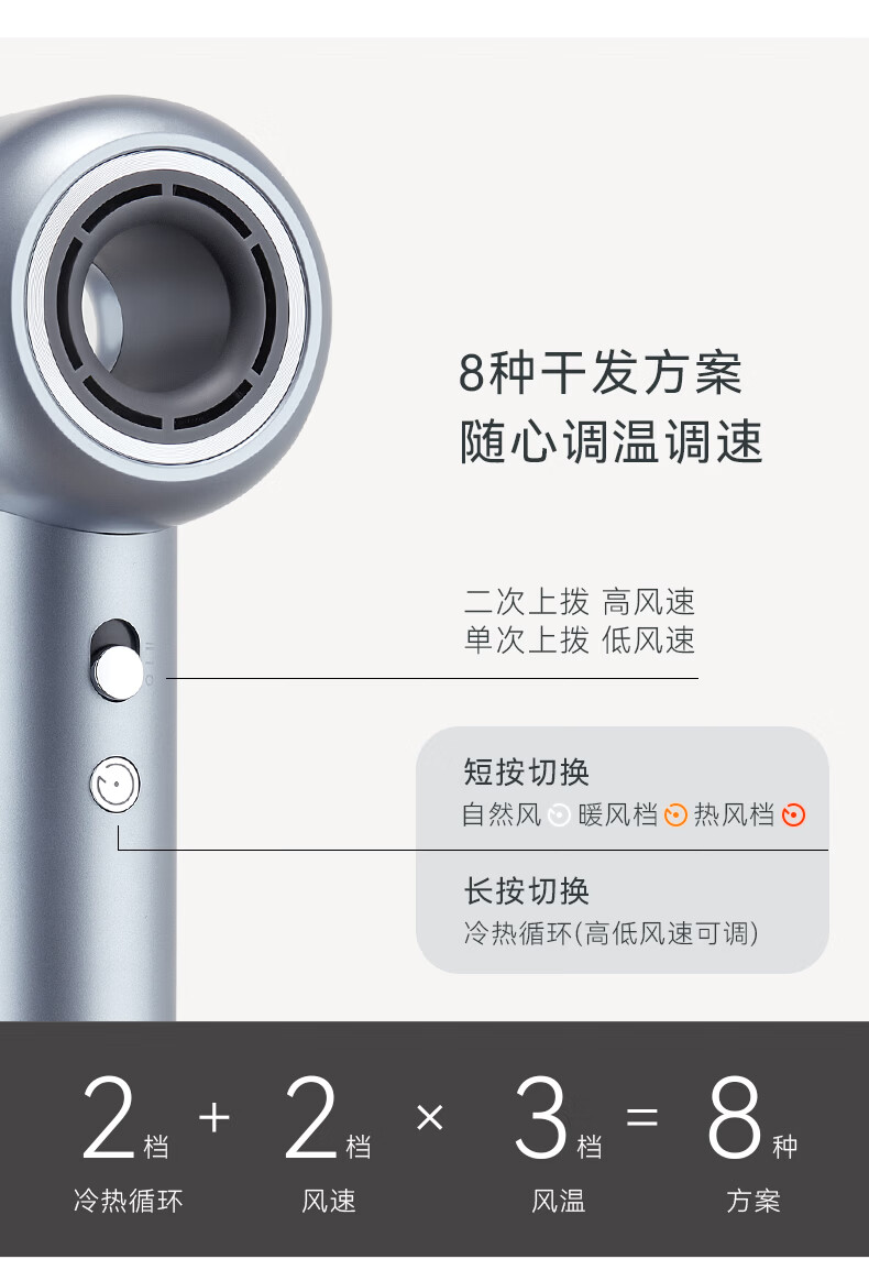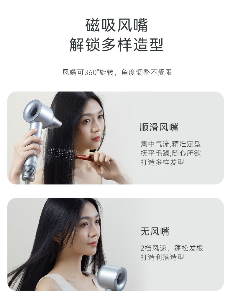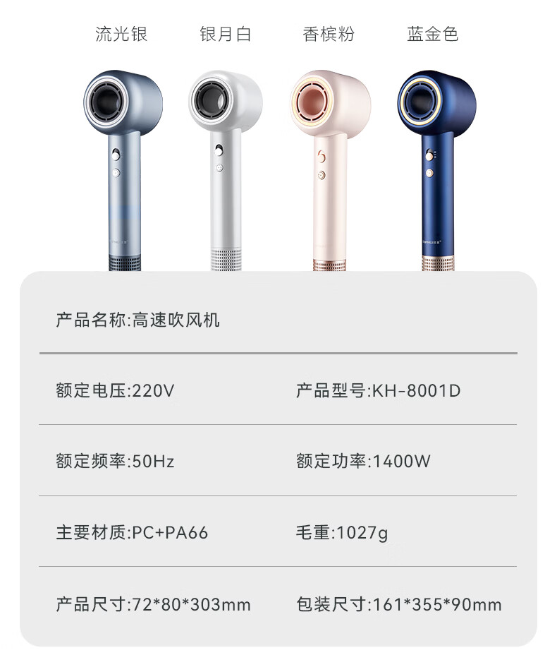 TOPHUI顶惠高速吹风机家用电吹风筒8亿负离子护发大功率风力冷热速干智能恒温养发护发礼盒孕妇儿童 节日礼物 【高级款·香槟粉】(磁吸挂架*1 + 顺滑风嘴*1)
