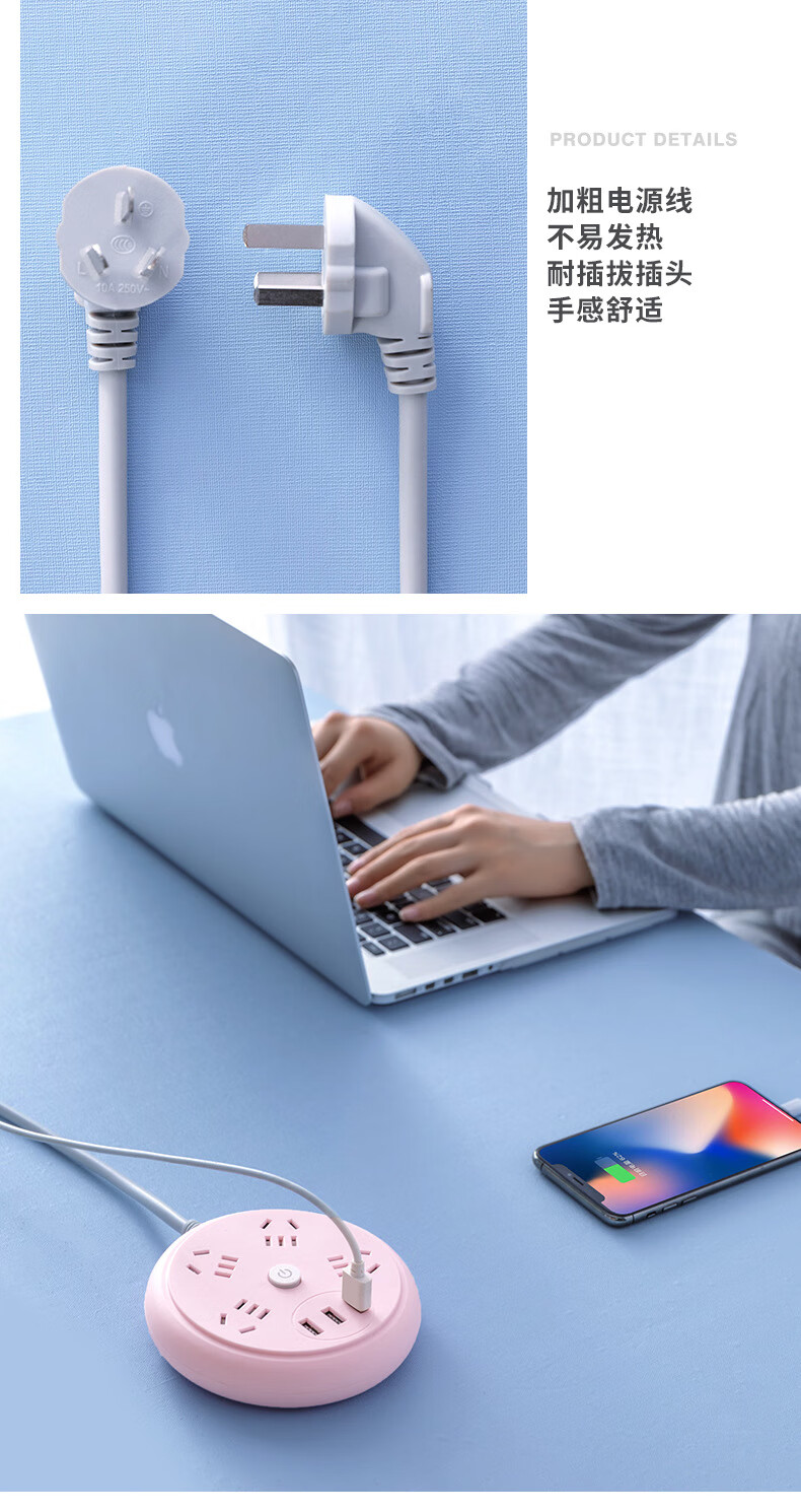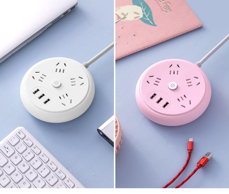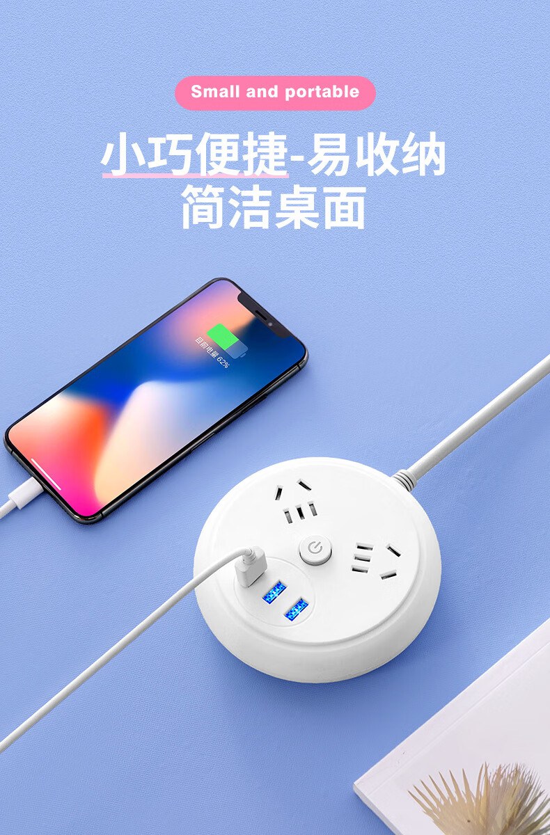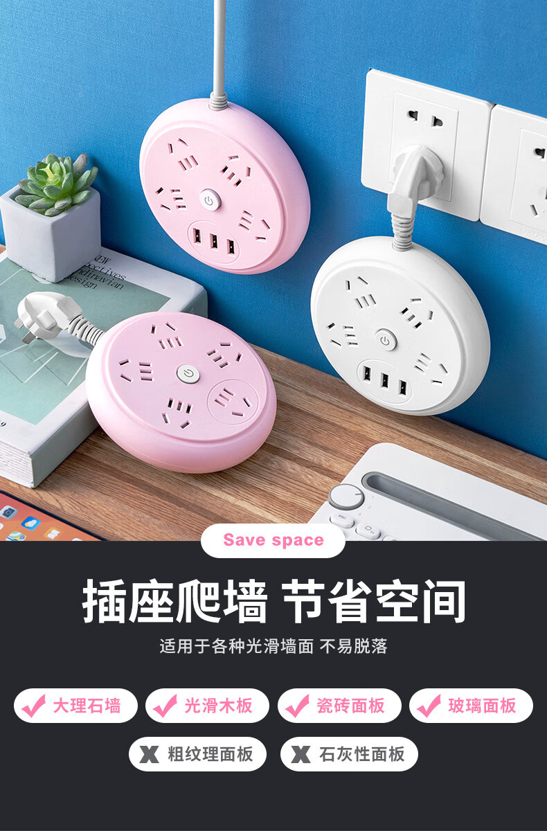 【实用】长线3USB多位多功能个性智能学生插座插板带线家用插线板 2位【不带USB】白色*0.1米 国标