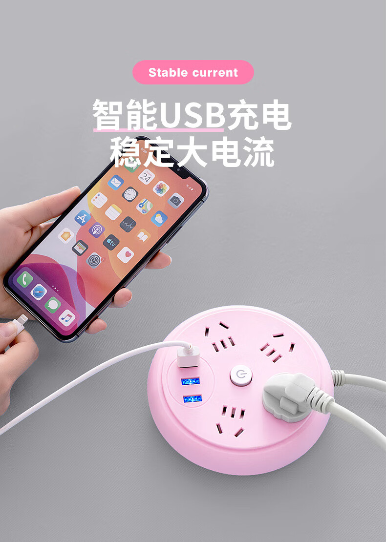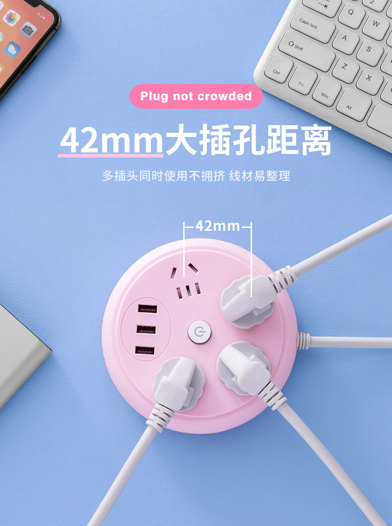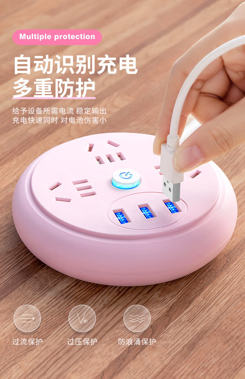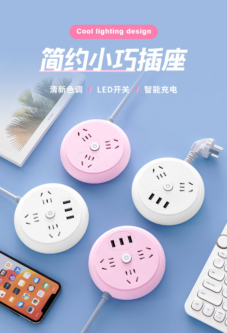 【实用】长线3USB多位多功能个性智能学生插座插板带线家用插线板 2位【不带USB】白色*0.1米 国标
