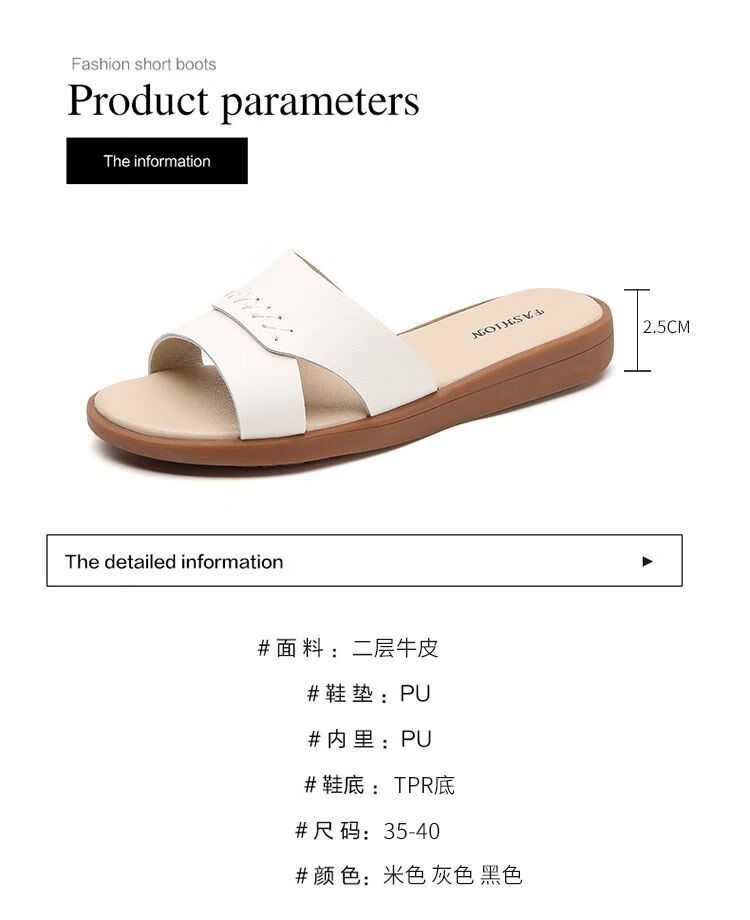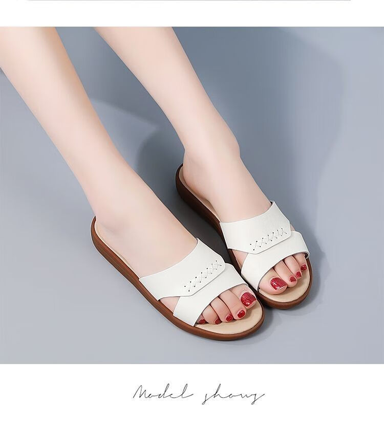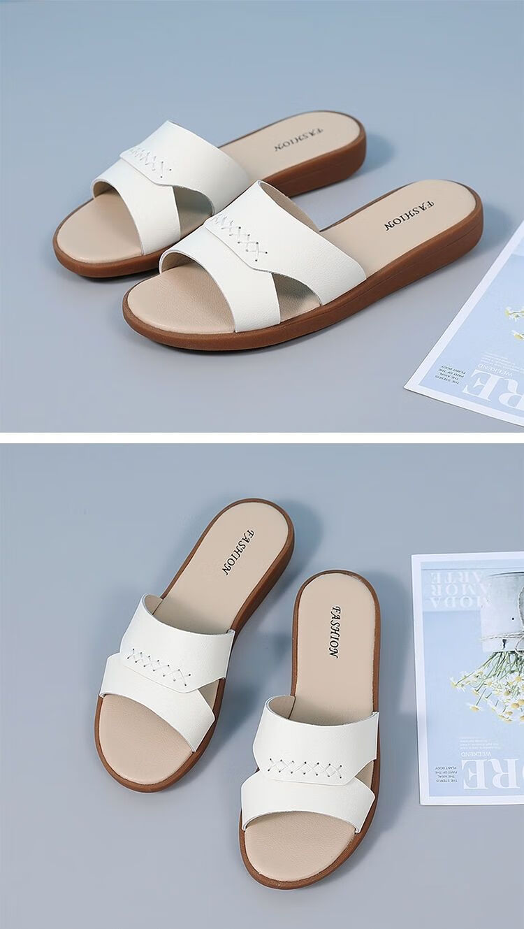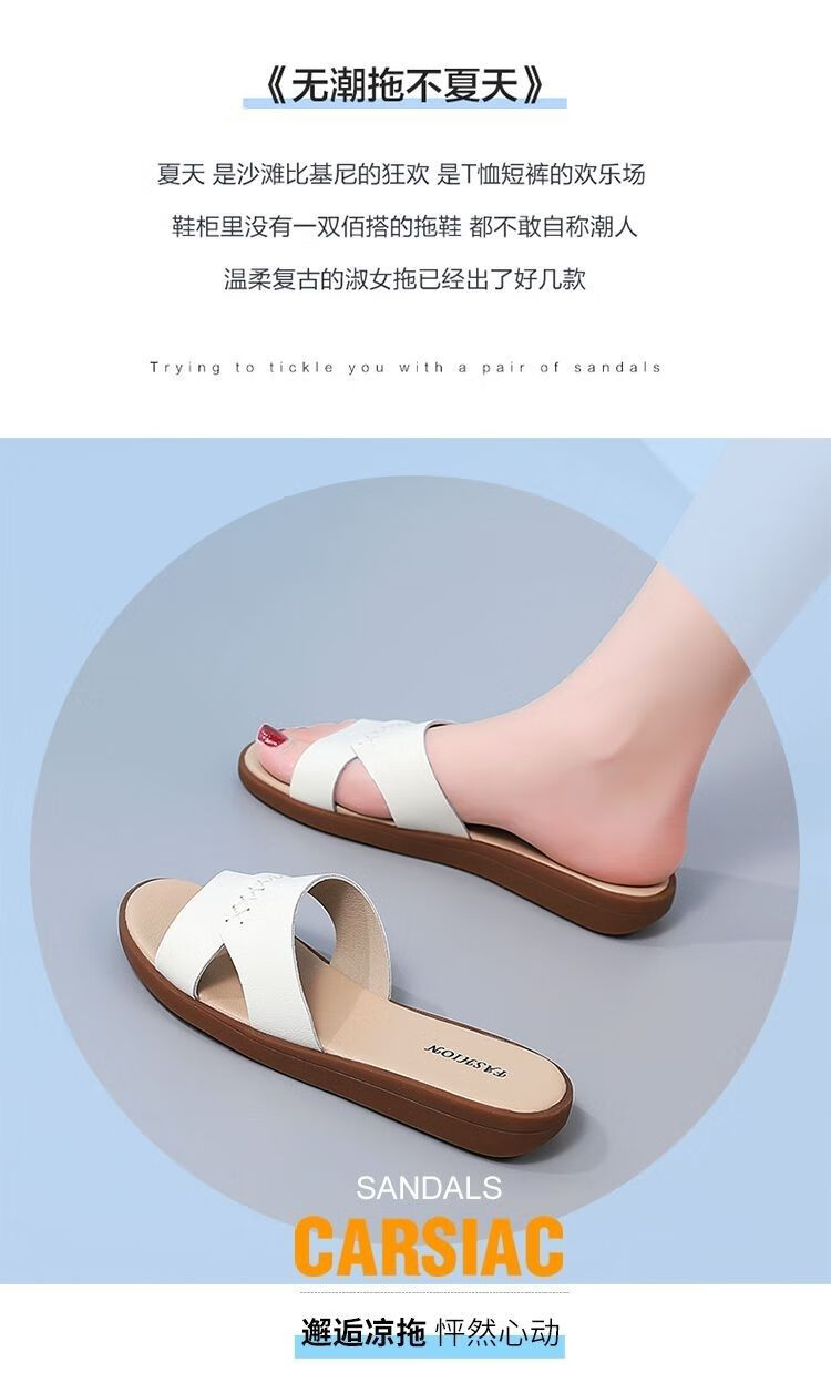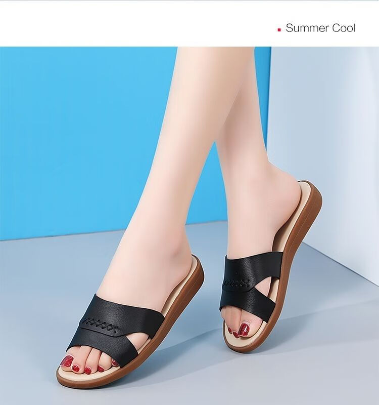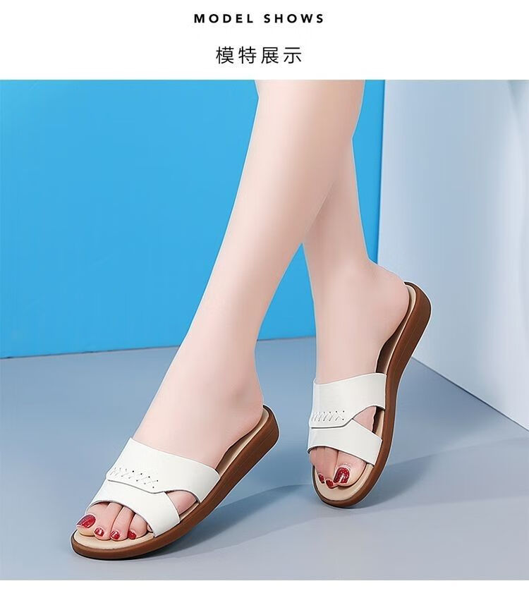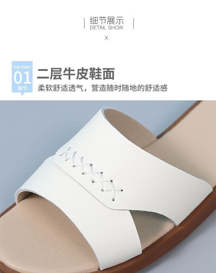 金盈姿真软皮拖鞋女夏新款牛筋底凉拖女款中年平底防滑外穿软底拖鞋 主图款 35