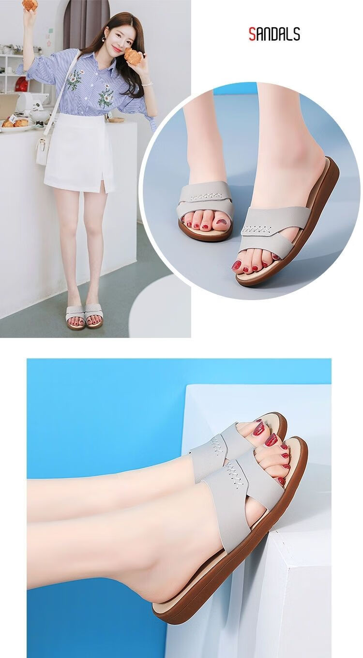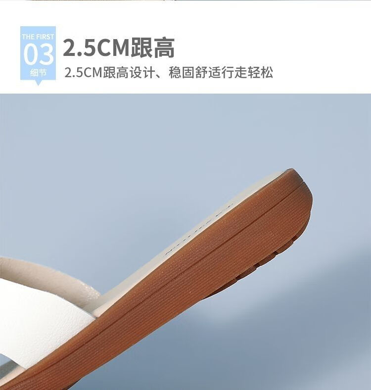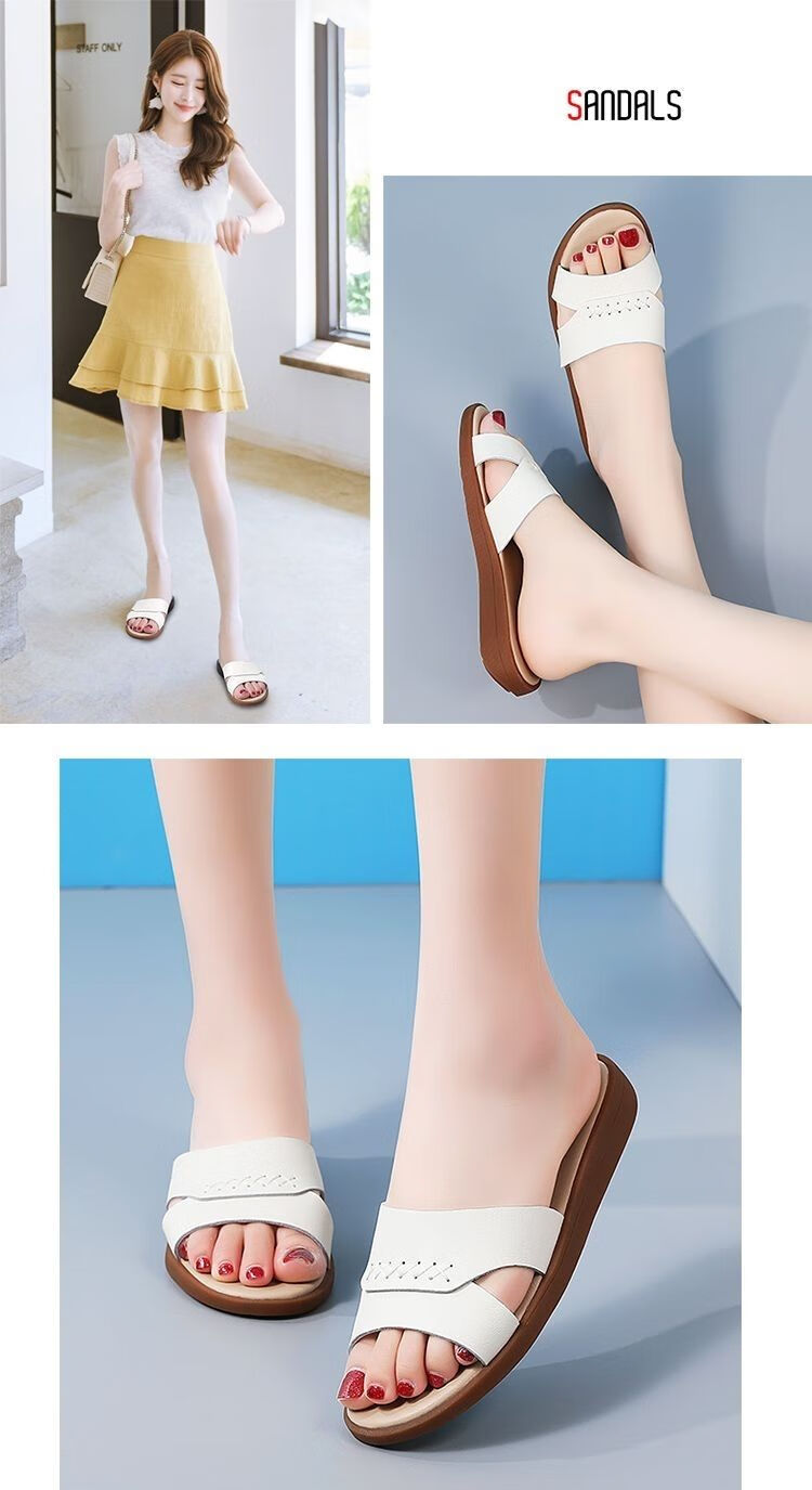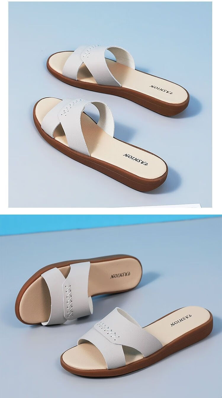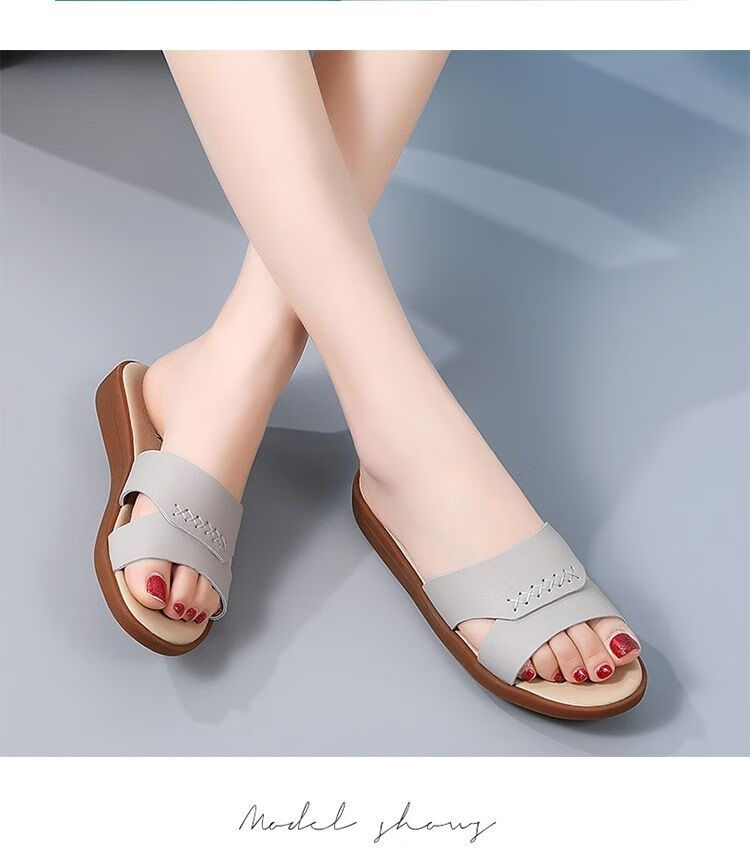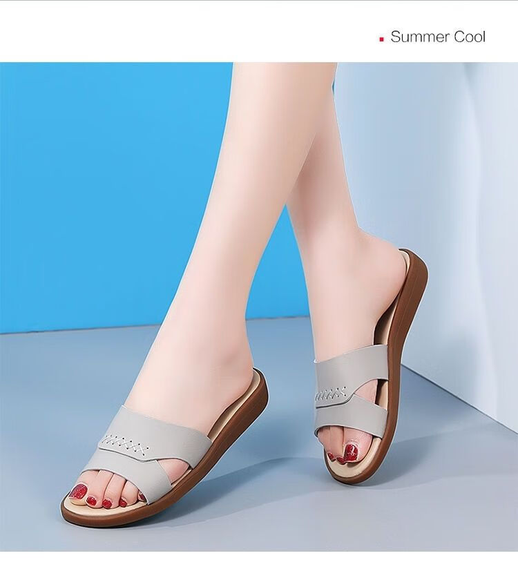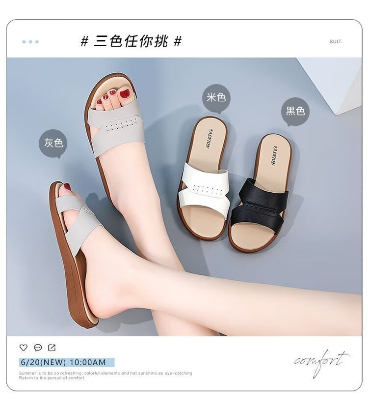 金盈姿真软皮拖鞋女夏新款牛筋底凉拖女款中年平底防滑外穿软底拖鞋 主图款 35