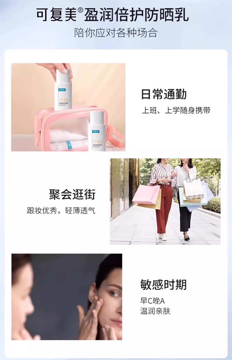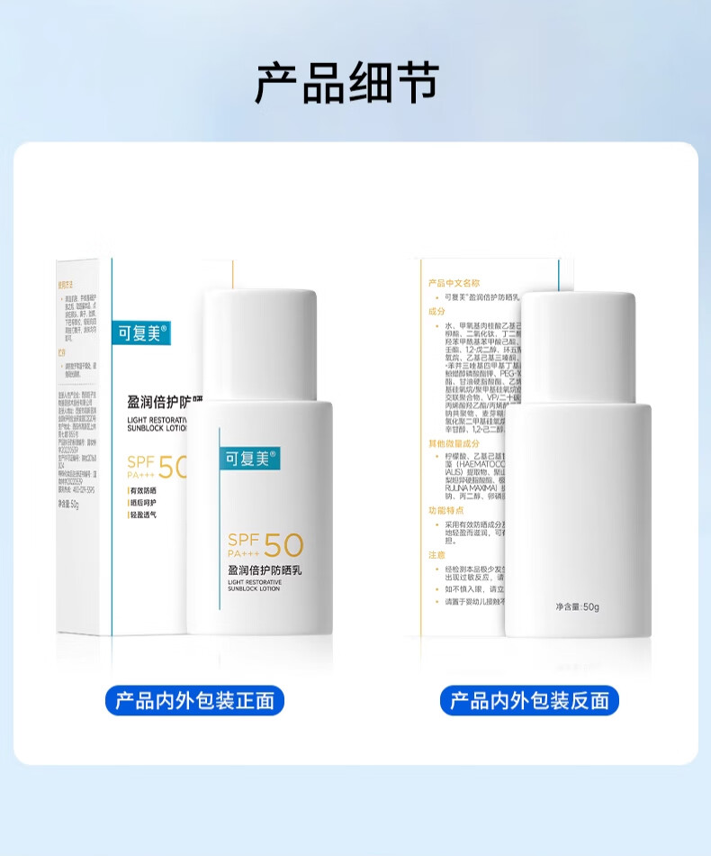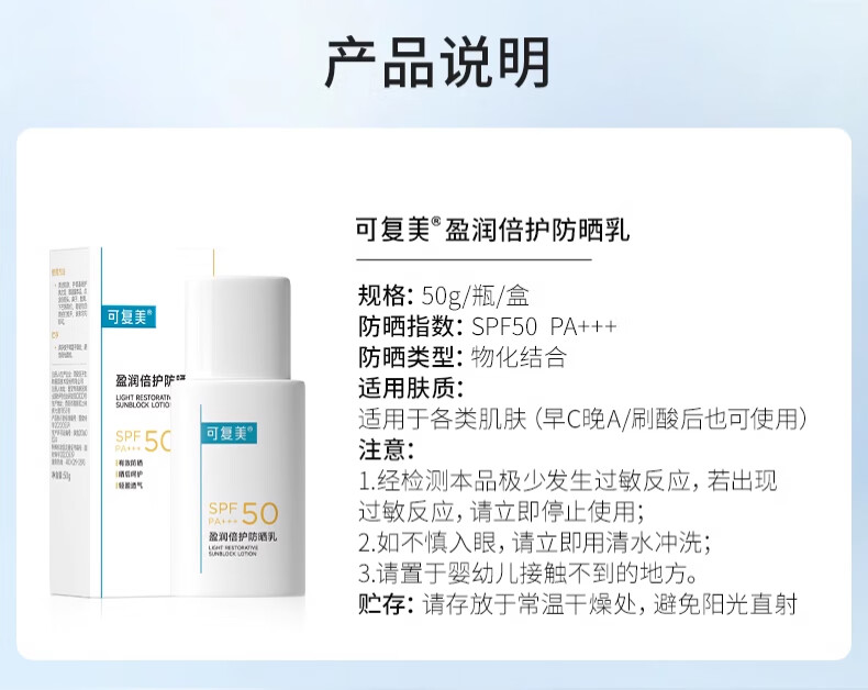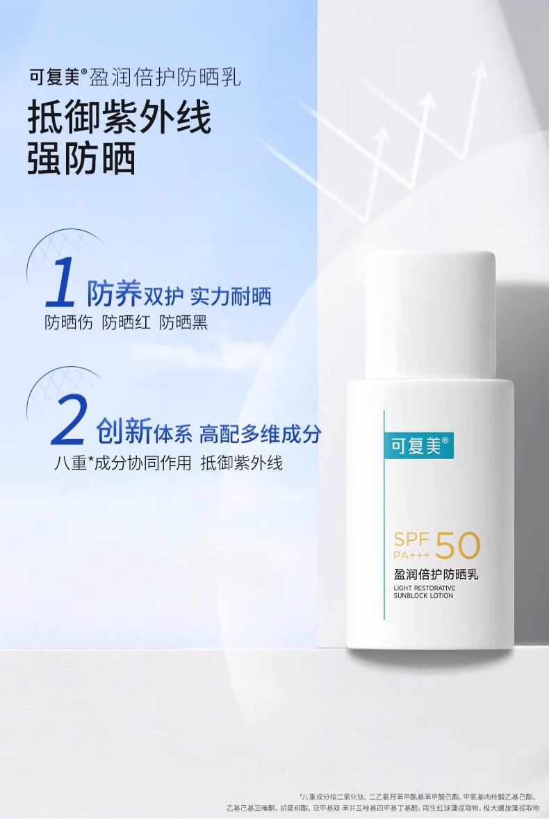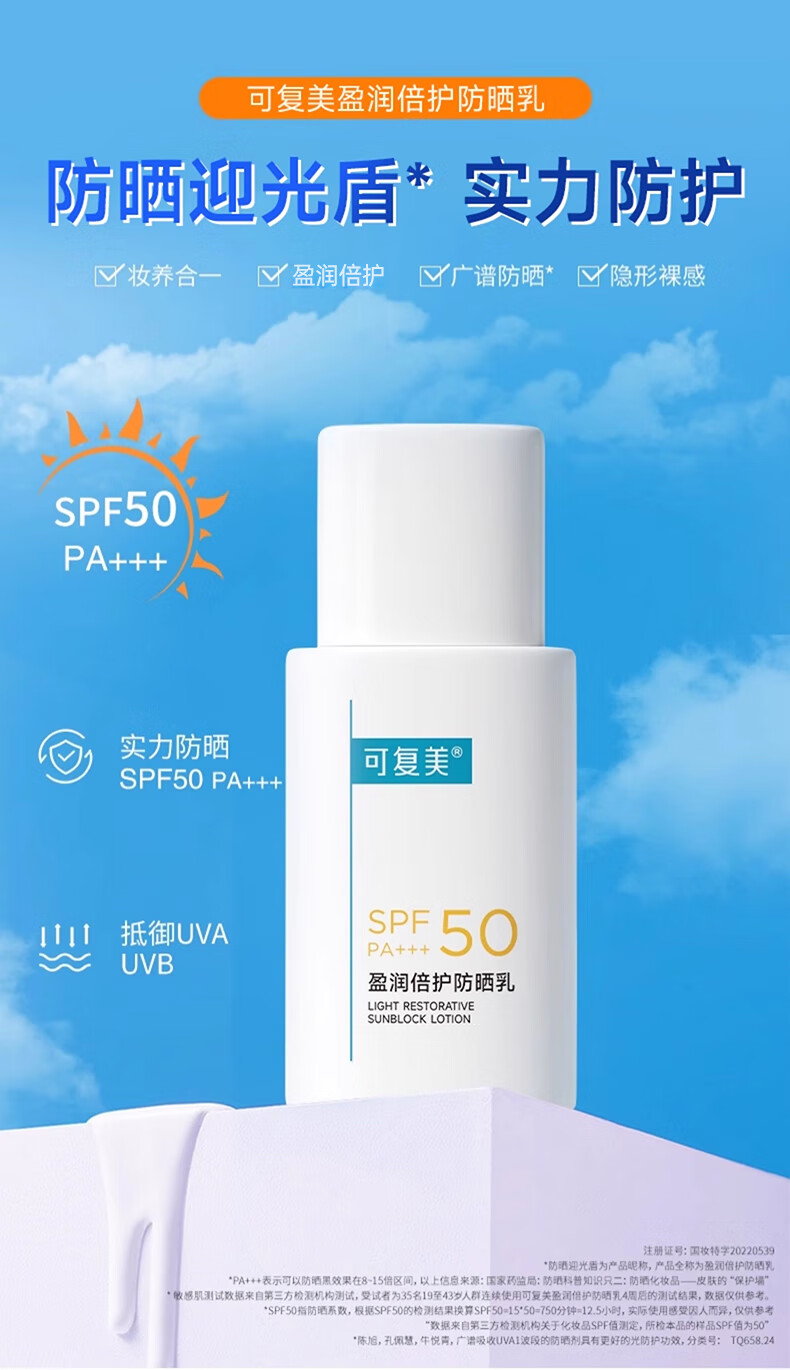 可复美防晒霜 盈润倍护防晒乳SPF50 PA+++室内外防晒透气隔离霜夏日军训 防晒乳45g【15g*3支】