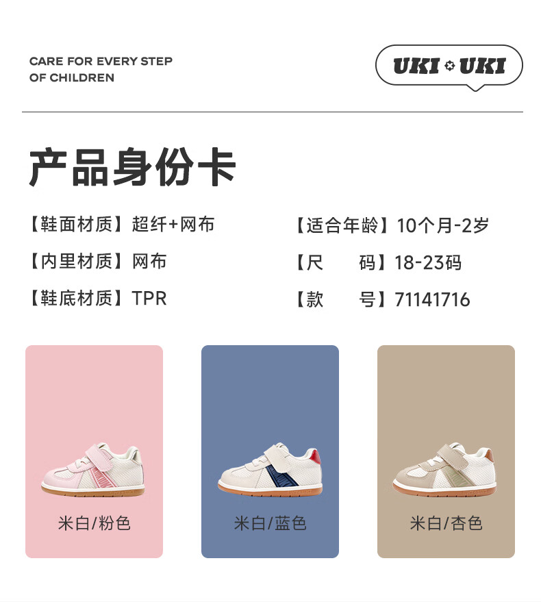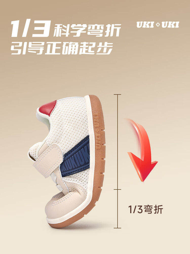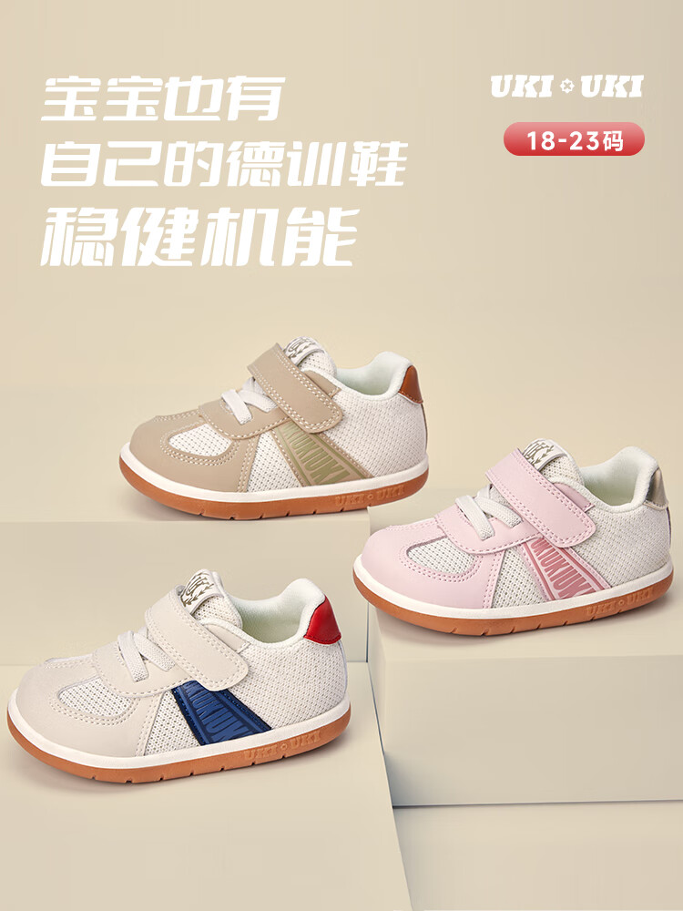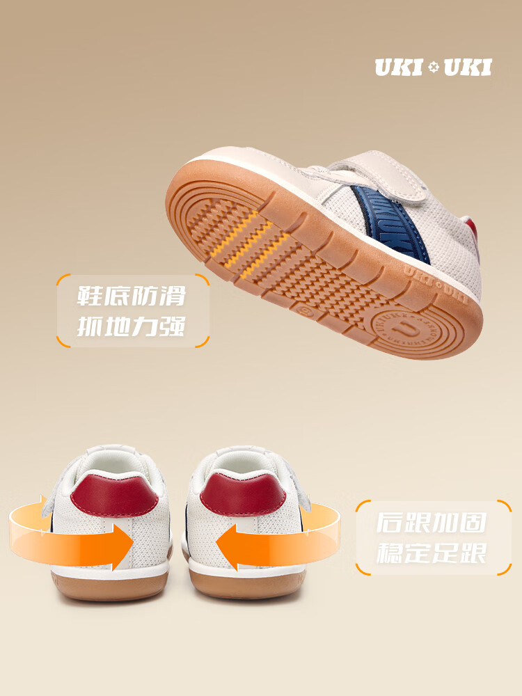 UKIUKI复古德训鞋稳健网面透气小童稳稳鞋男女童拼色防滑学步鞋 米白/蓝色 19 内长13.0cm 脚长约12.0cm
