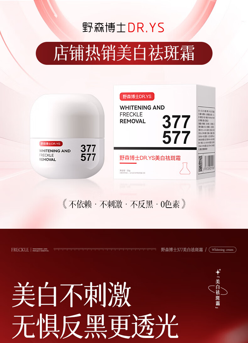 DR. YS 野森博士【拍一发二】美白特证 377+577双效美白祛斑霜50g/瓶D-myr 美白祛斑面霜