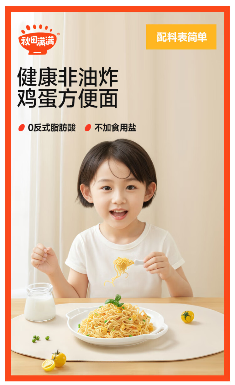 秋田满满儿童营养方便面泡面非油炸无添加速食休闲零食早餐面条半成品食品 方便面360g*2+赠软饼24g