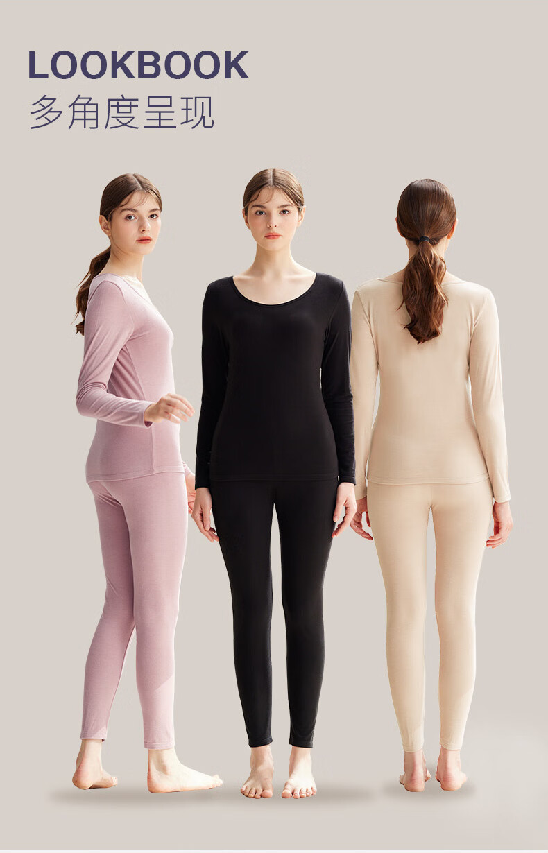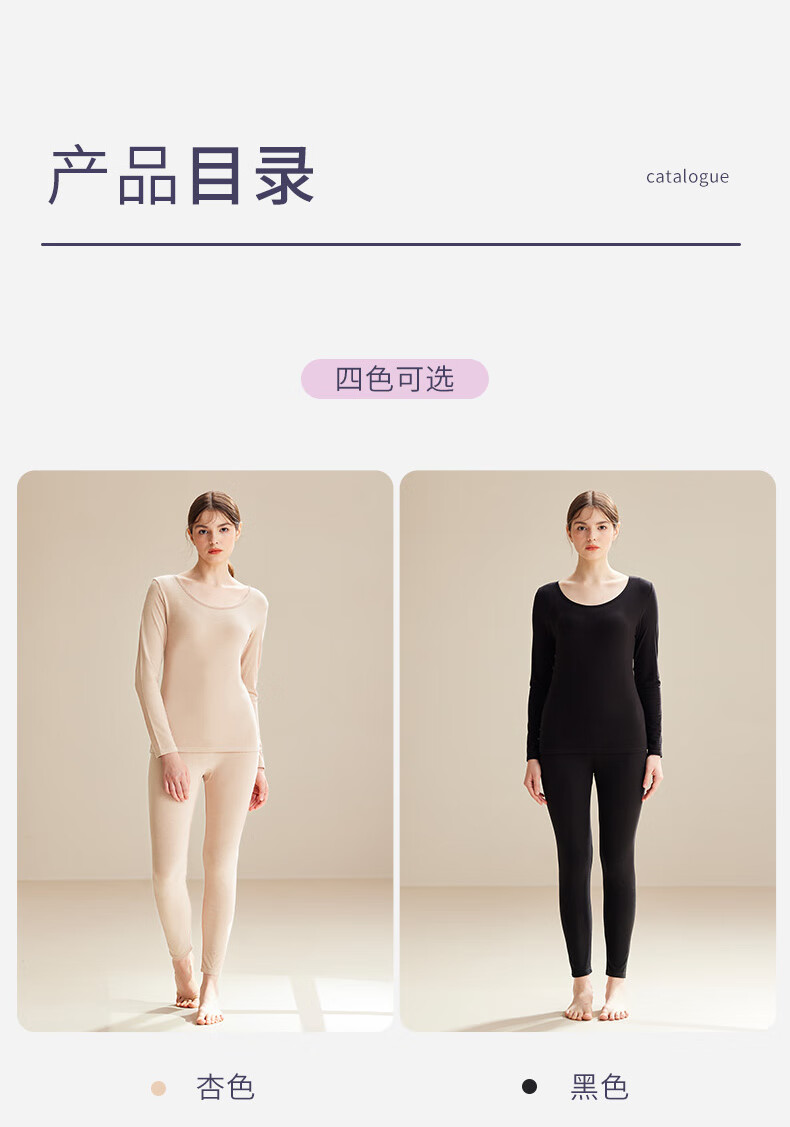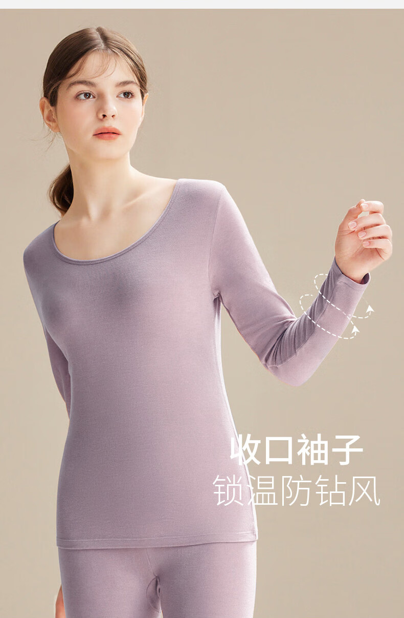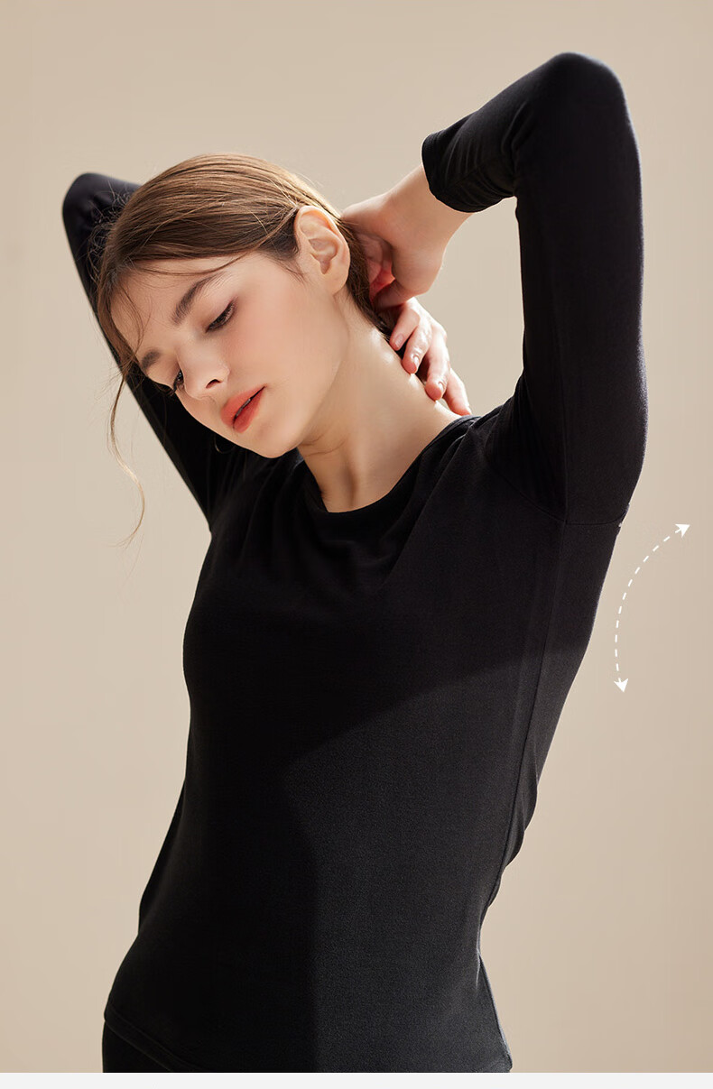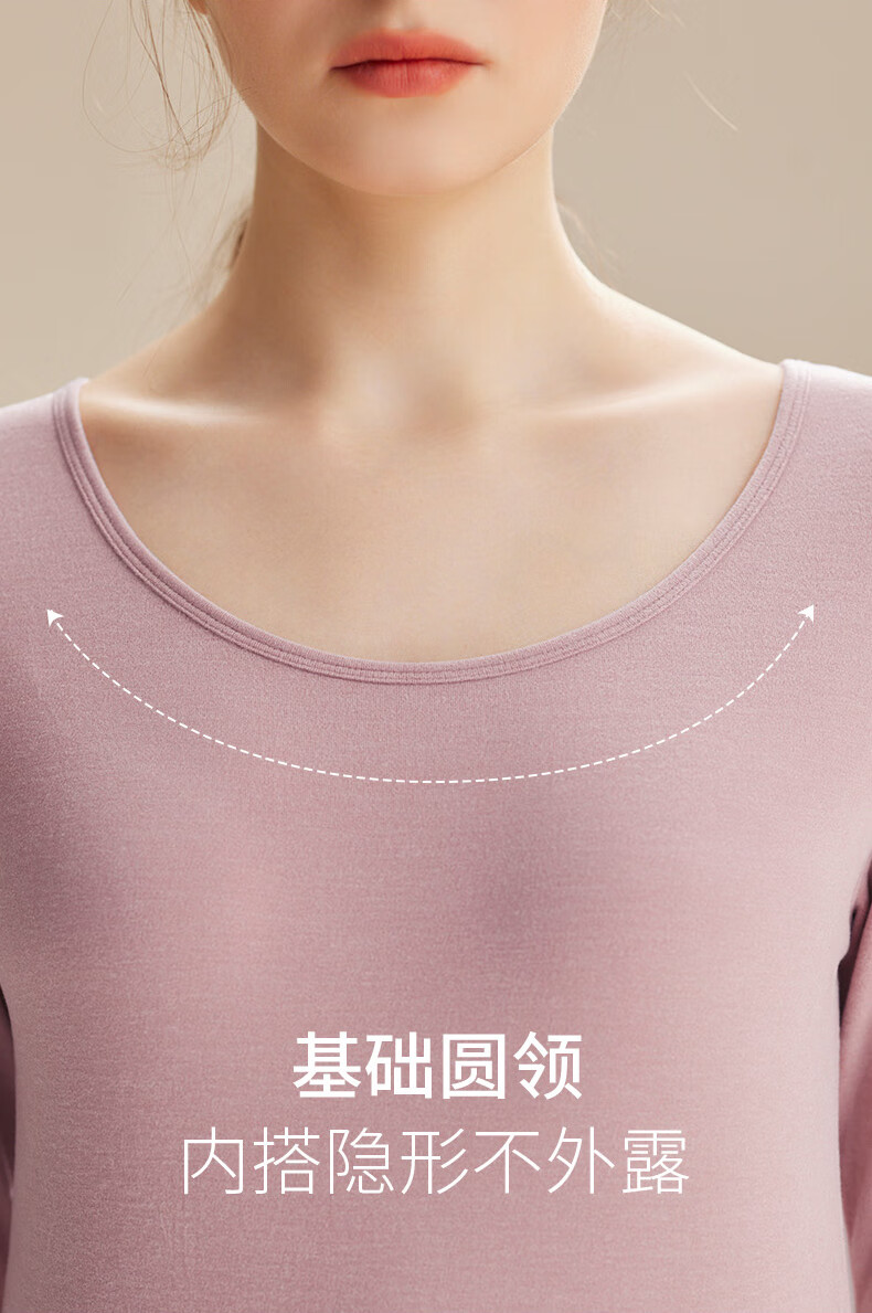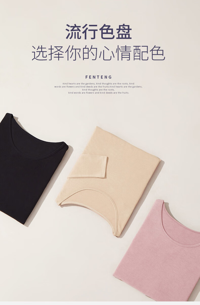 芬腾秋冬保暖内衣女棉质薄款秋衣秋裤套装少女圆领贴身美体打底衫套装 肤色 M 建议:90-110斤