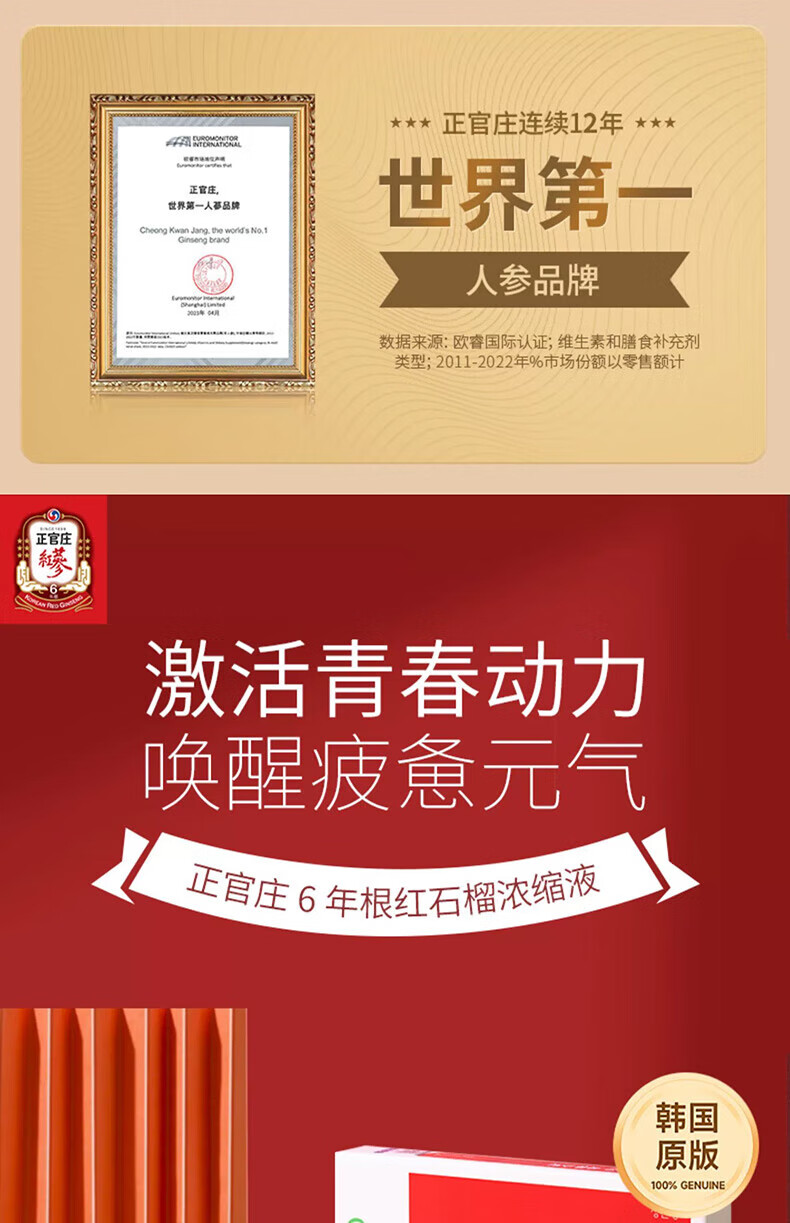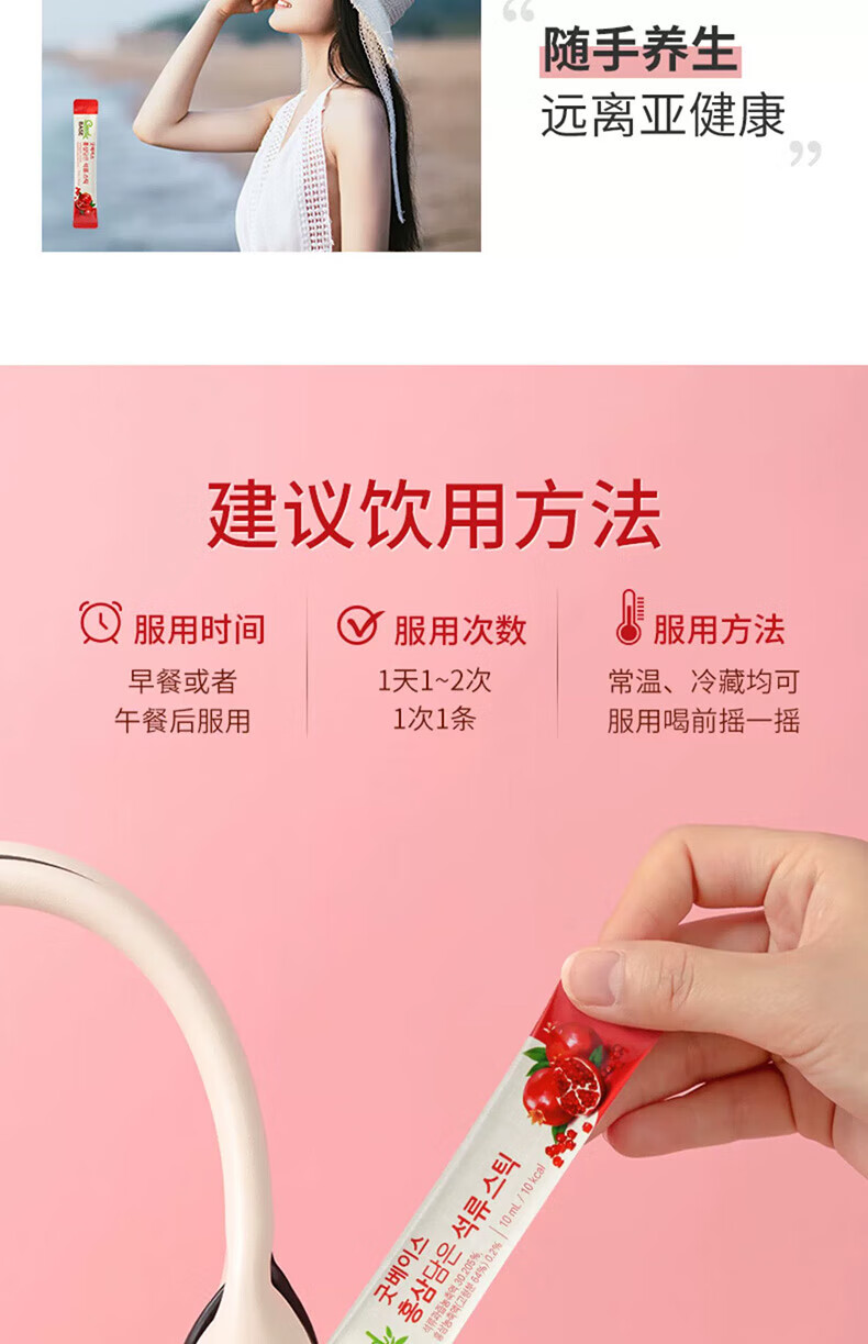正官庄6年根高丽参人参补气血元气饮红石榴汁液饮品营养品年货节礼盒 红参石榴 30条*2盒 【效期到26年7月28日】