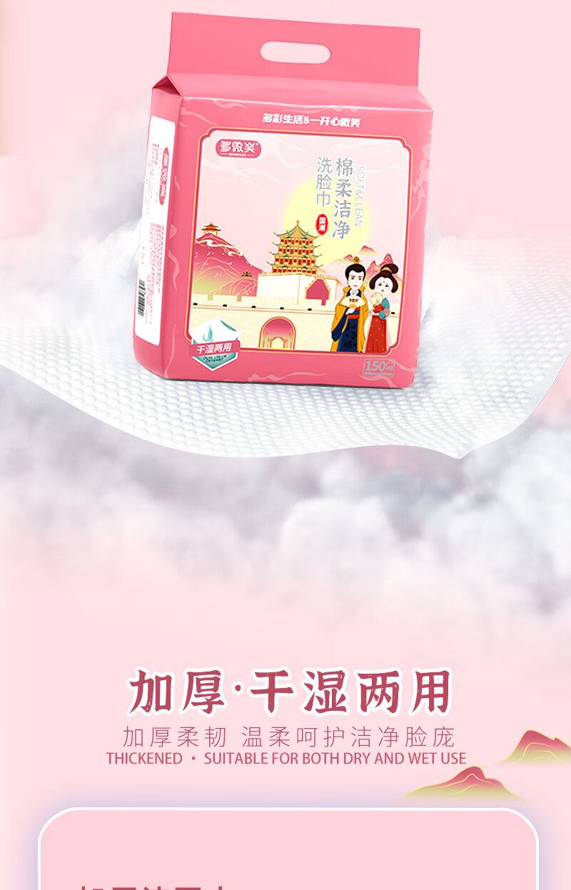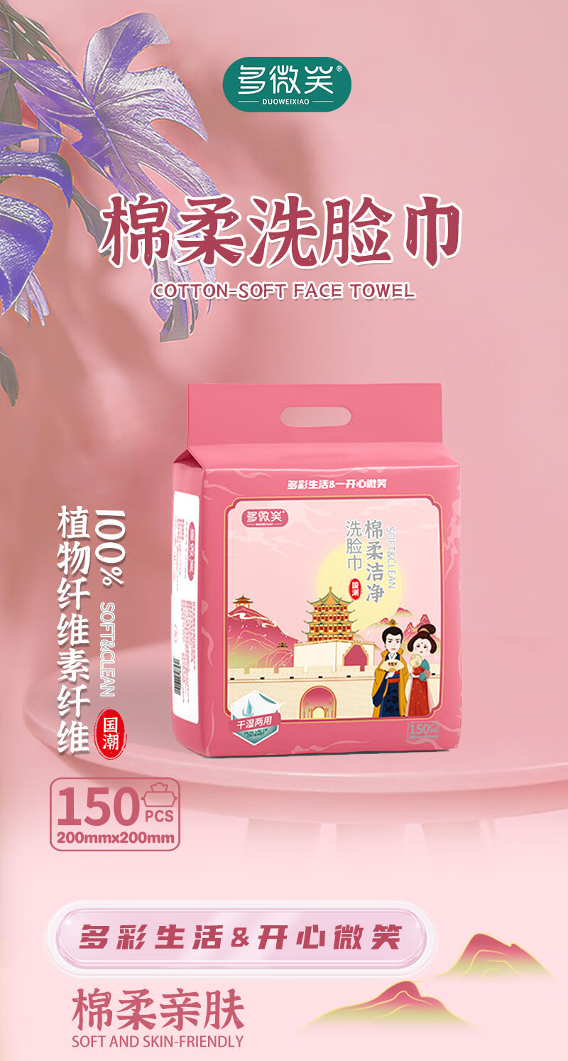 多微笑家庭囤货洗脸巾 一次性悬挂式超大包加厚擦脸巾 棉柔巾洁面巾 【1大包150抽】商超同款/尝鲜装