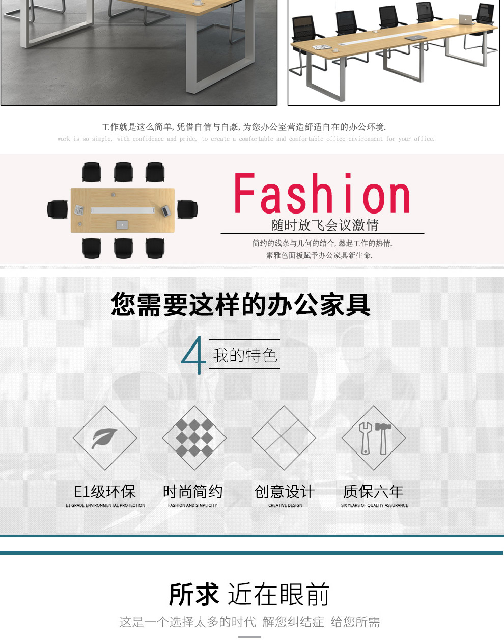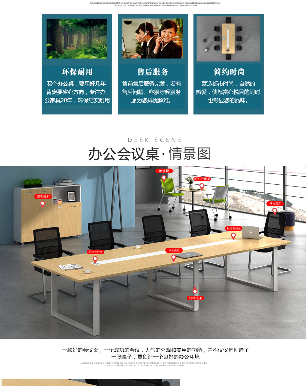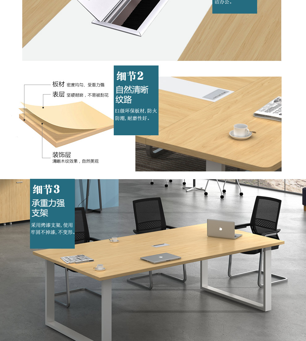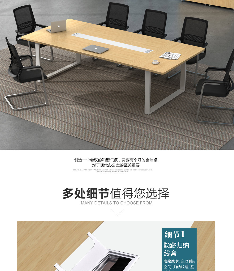 YOE.FTY优宜会议桌长桌长方形会客桌接待洽谈桌培训桌大小型会议桌椅组合 3.0*1.3米会议桌