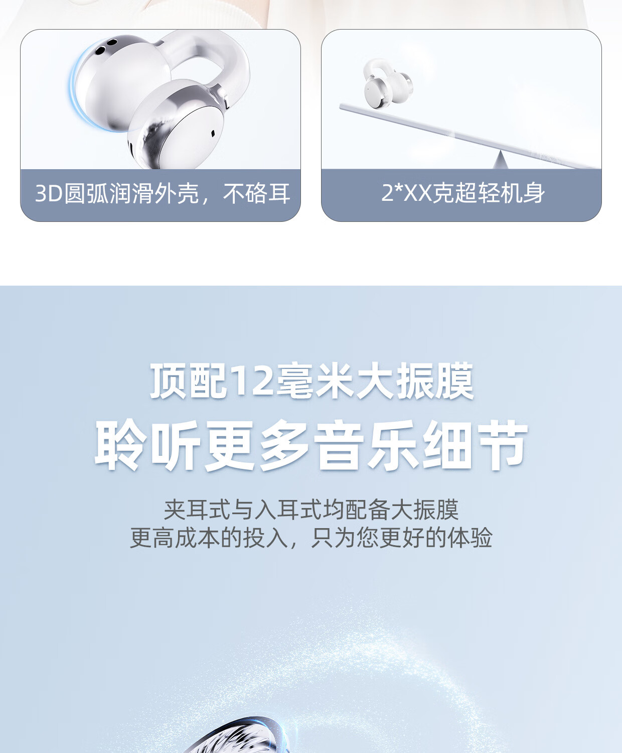 千飒SE05 双耳无线蓝牙耳机 两副耳机夹耳入耳挂耳式运动降噪耳机 【SE05GD】肤色