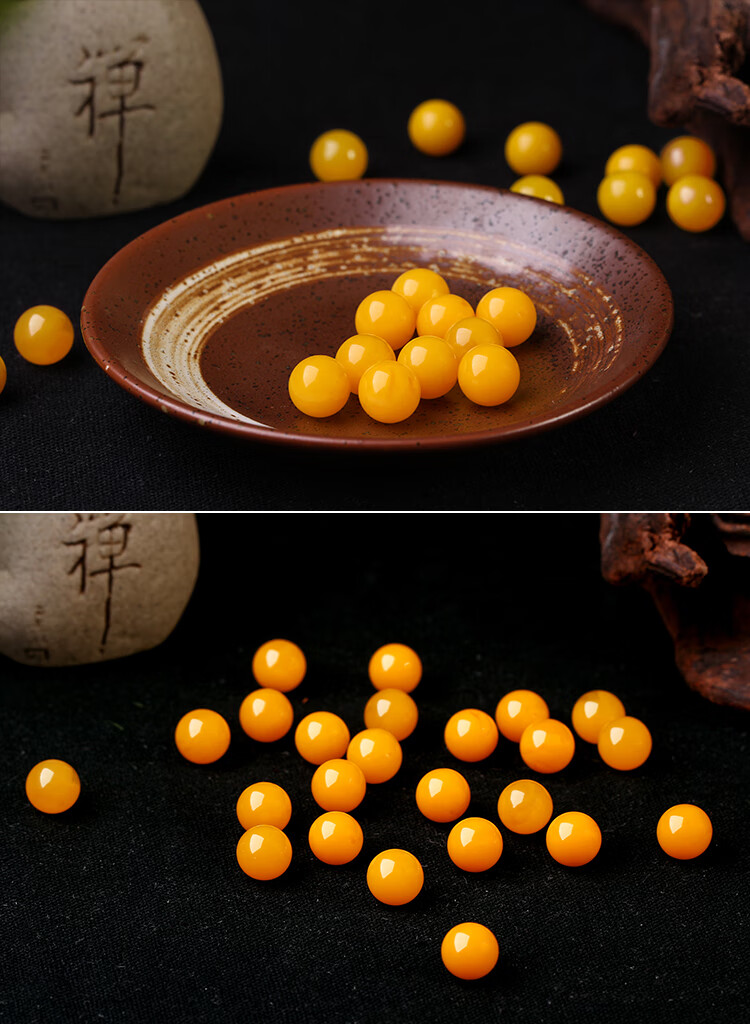 天l然蜜蜡单珠散珠鸡油黄老原石佛珠搭配圆珠单颗手串 10mm黄蜜圆珠(1颗通孔)