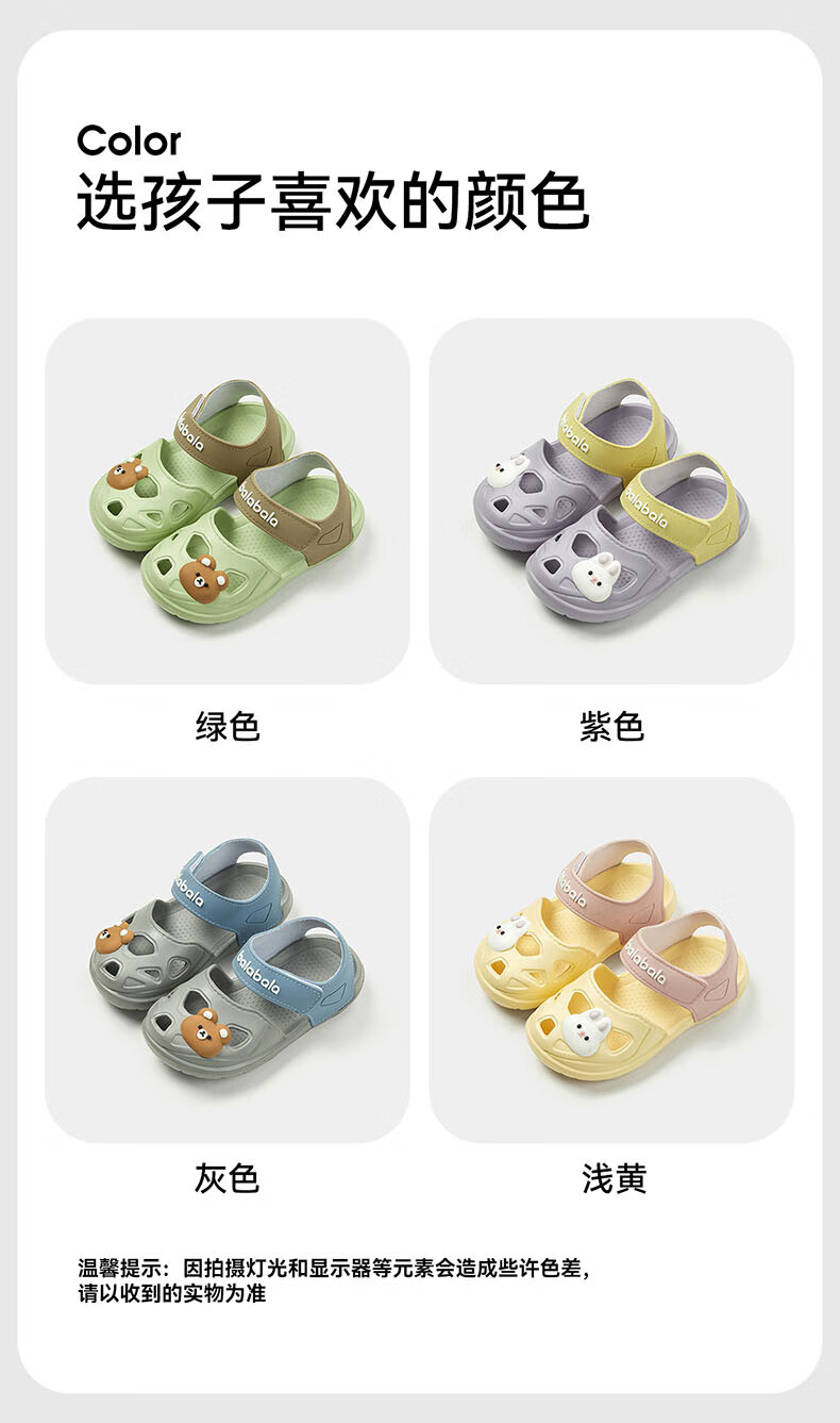 巴拉巴拉儿童凉鞋夏季新款男童女童室内耐磨凉鞋卡通软底亲子男宝宝沙滩鞋 浅黄 29 内长18cm适合脚长17.5-18.2cm