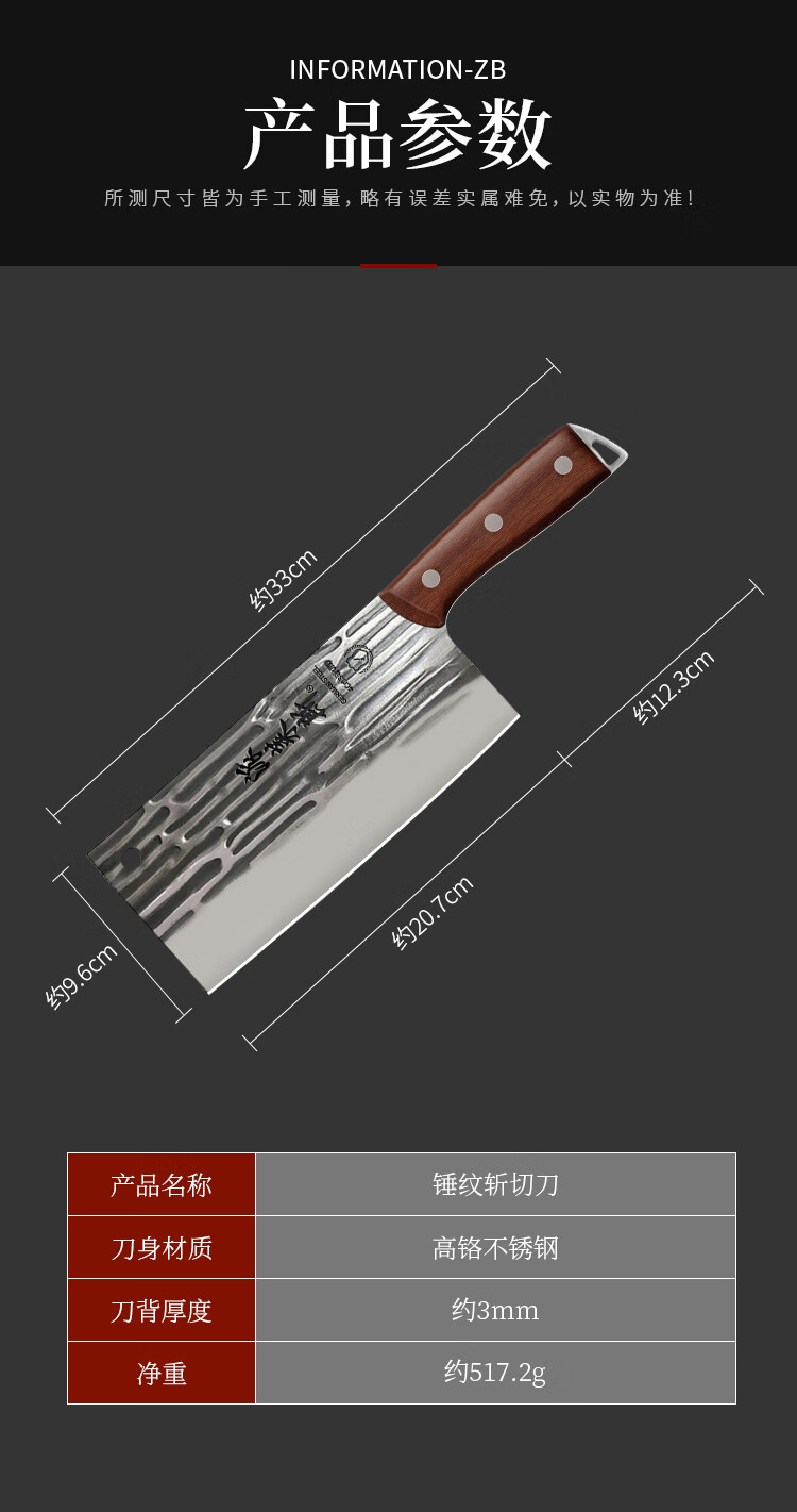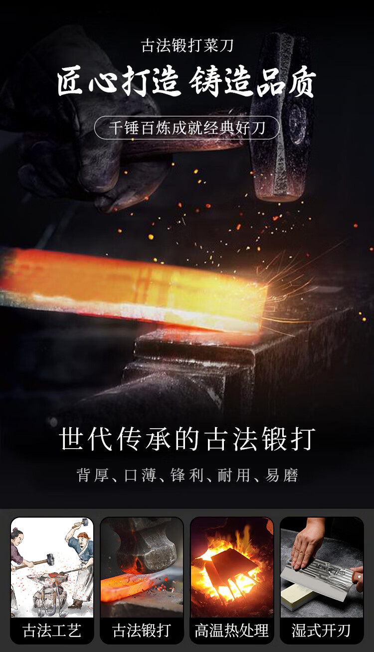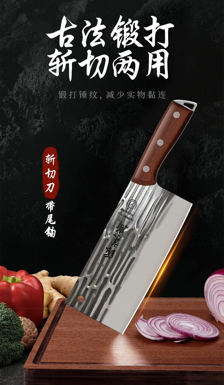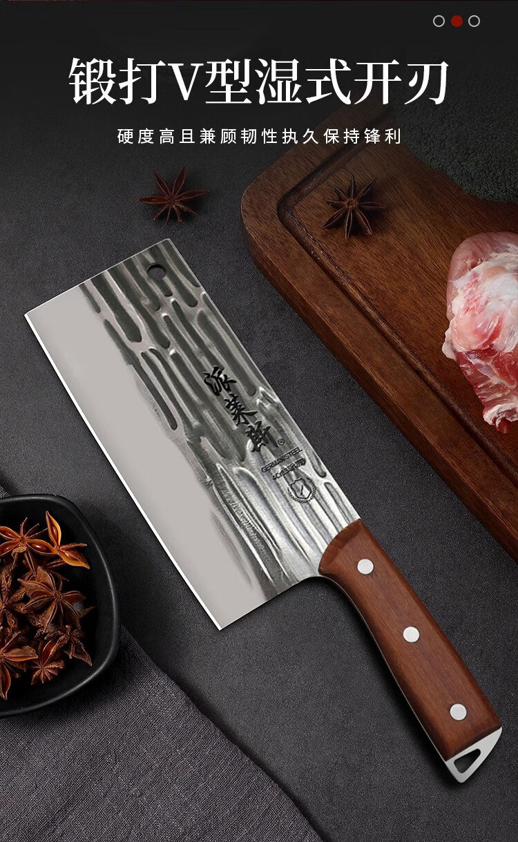 派莱斯菜刀家用手工锻打斩切两用刀厨房厨师专用切菜切肉刀砍骨刀具套装 【性价比推荐】龙泉锻打精钢菜刀