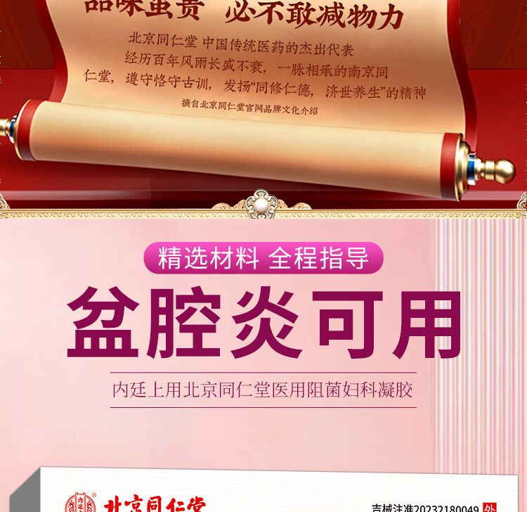 北京同仁堂盆腔炎盆腔积液妇科凝胶消炎抑菌用药小腹坠痛腰附件炎排积液专用 3盒【疗程装】盆腔炎专用