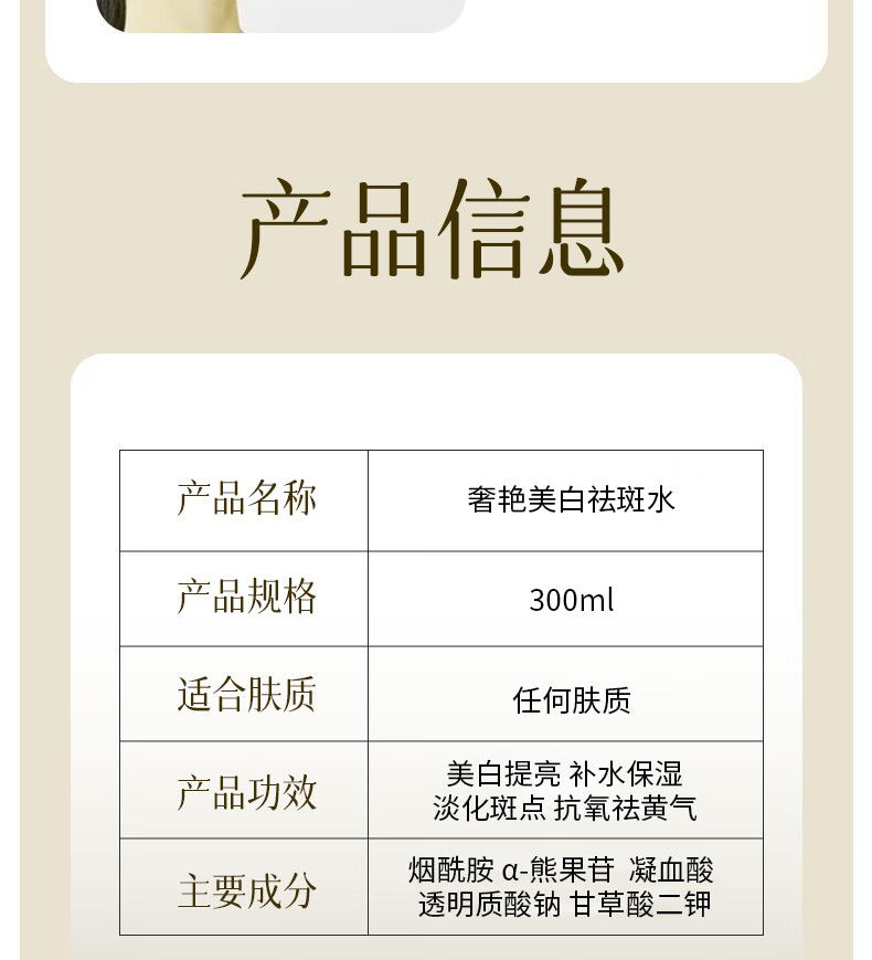 奢艳美白水300ml 柔肤水爽肤水美白祛斑补水保湿提亮肤色生日礼物 【美白淡斑】紧致美白水1瓶 300ml