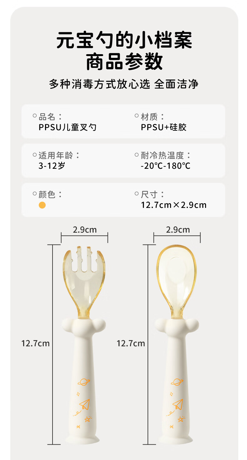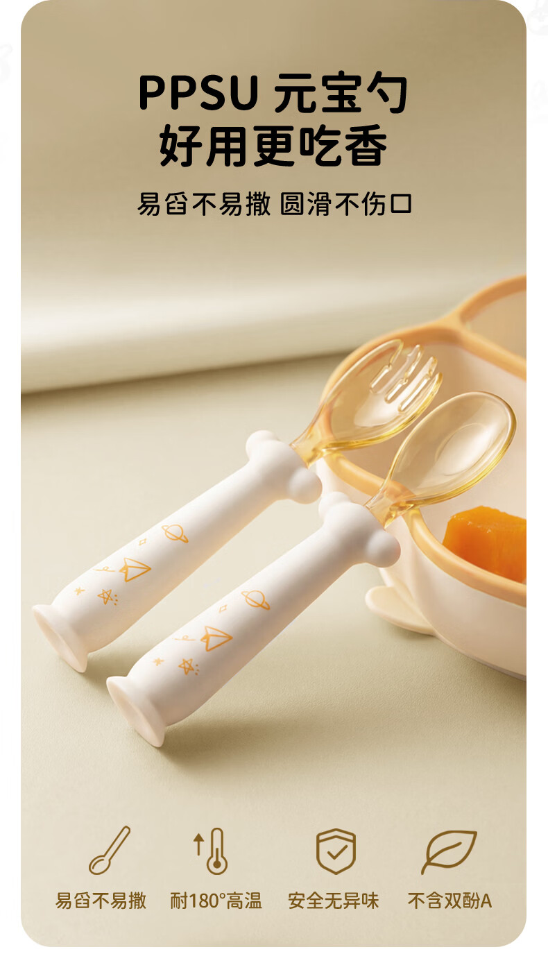 火火兔宝宝辅食勺婴儿学吃饭训练餐具套装食品级PPSU叉勺多功能