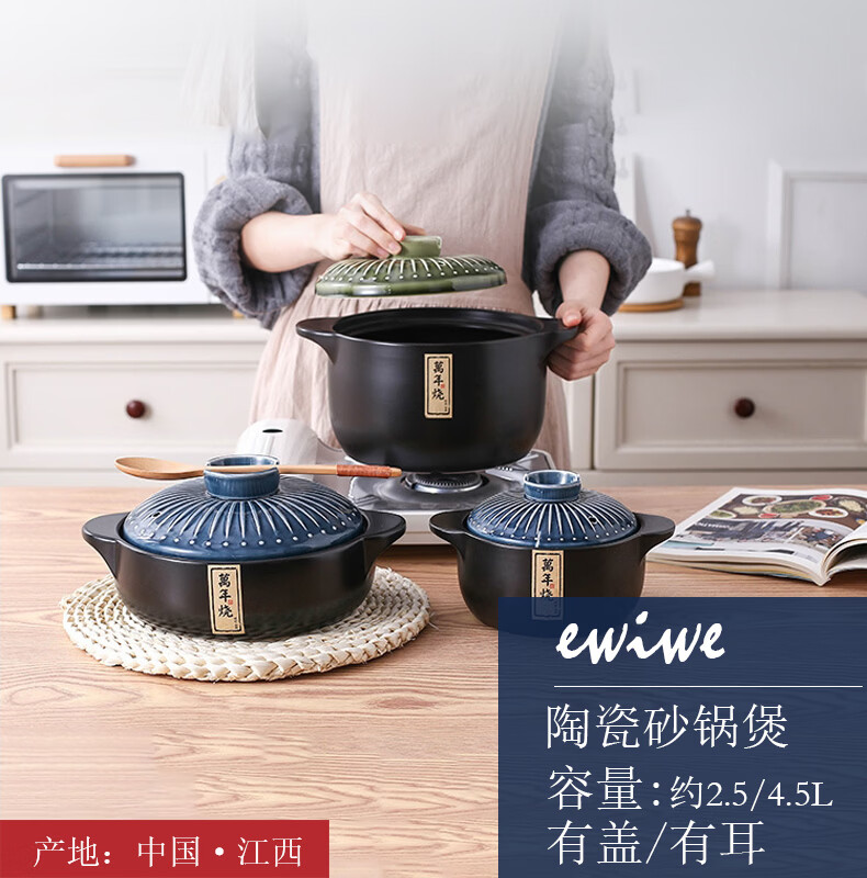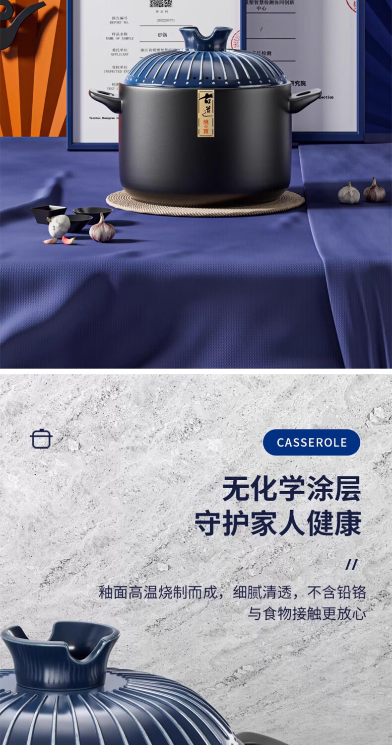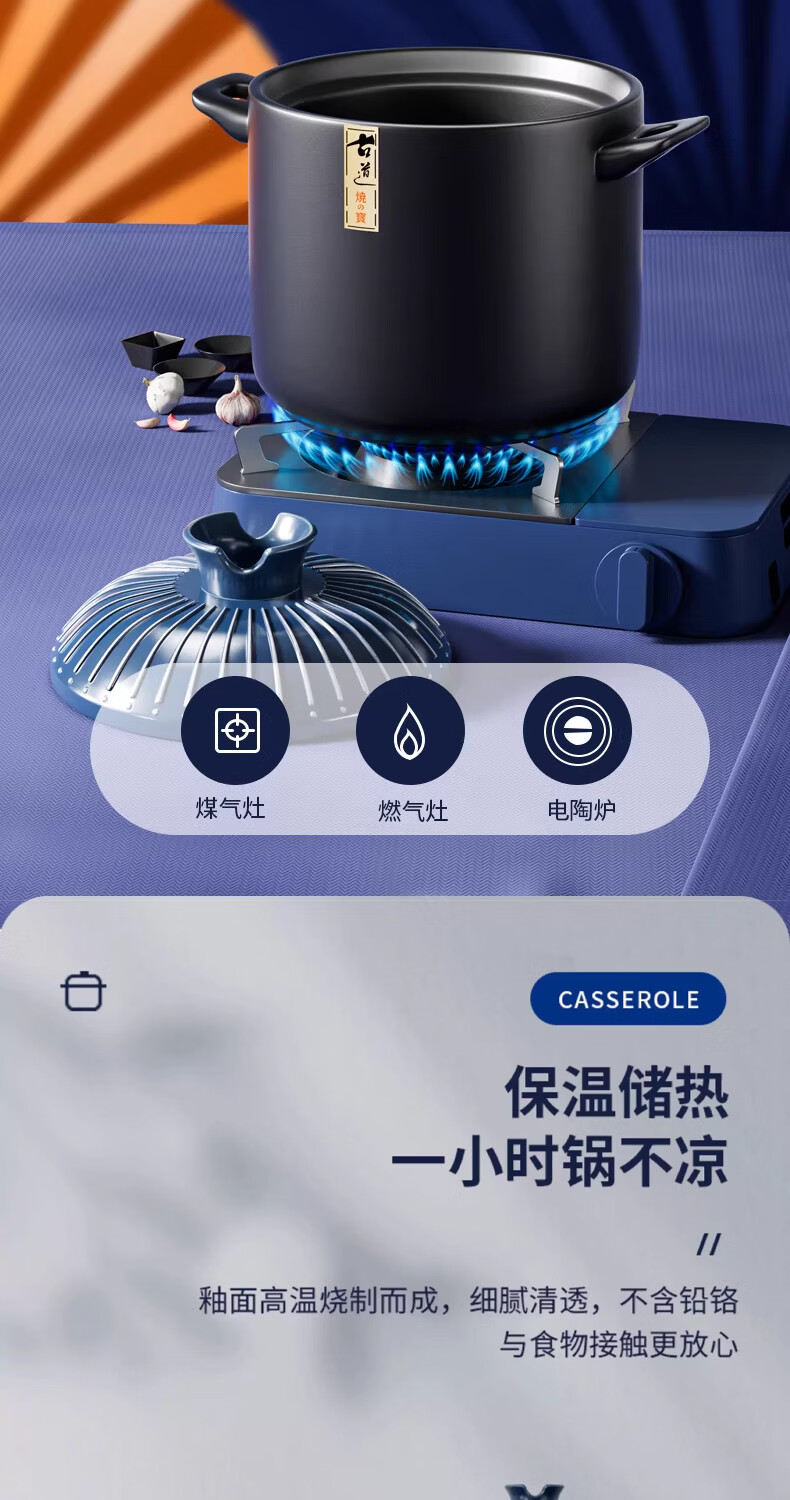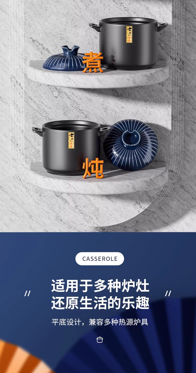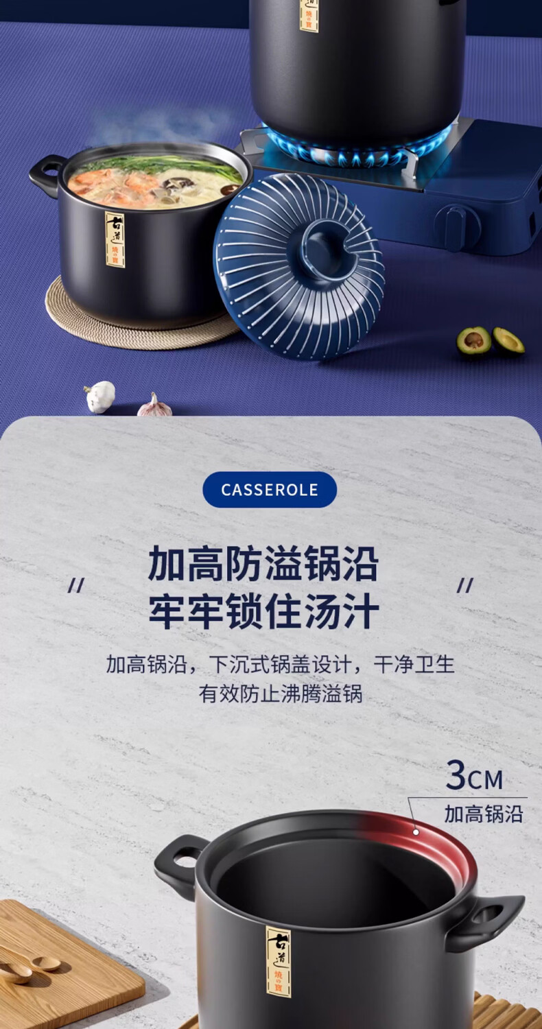 STABURG日式复古砂锅耐高温炖锅家用煲汤锅燃气灶专用陶瓷煲仔饭沙锅 聚能锅体/干烧不裂/食品级材质 2.5L