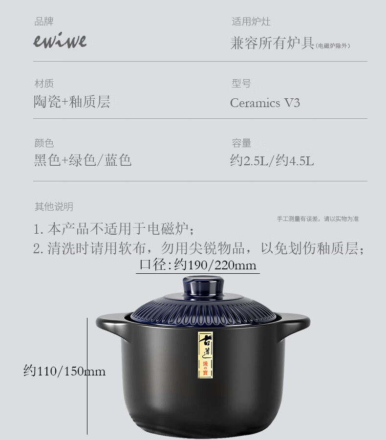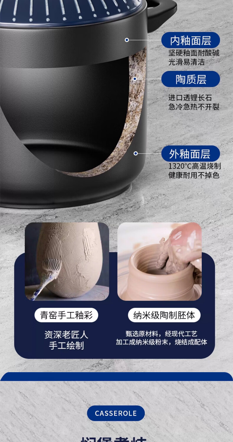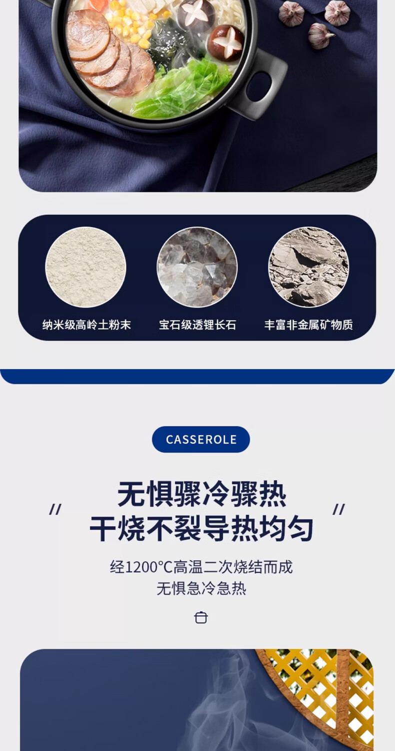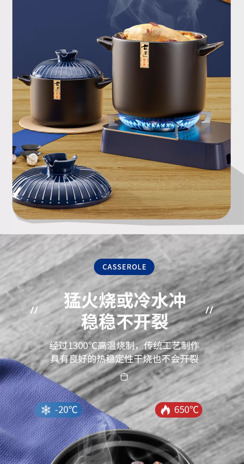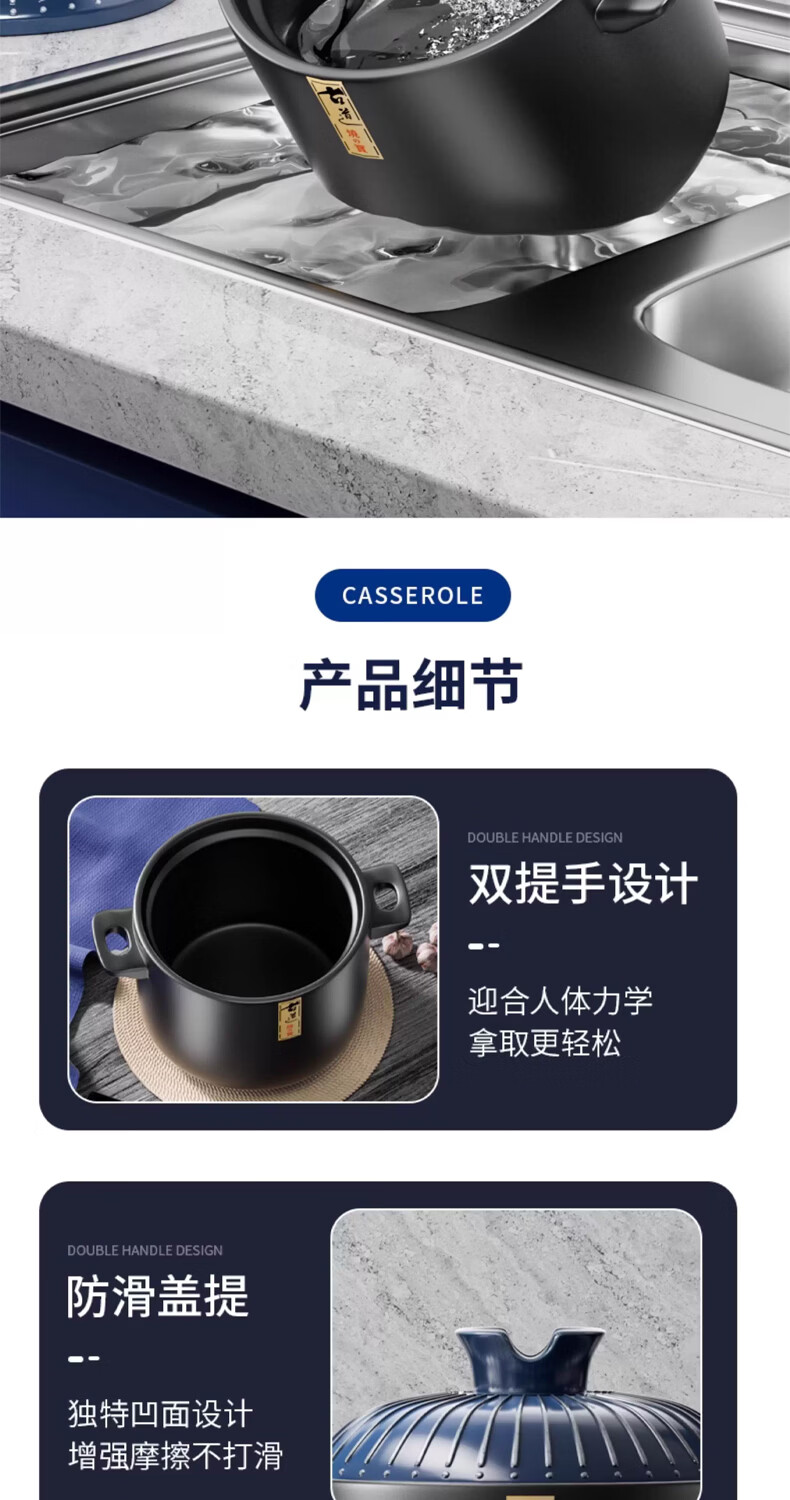 STABURG日式复古砂锅耐高温炖锅家用煲汤锅燃气灶专用陶瓷煲仔饭沙锅 聚能锅体/干烧不裂/食品级材质 2.5L
