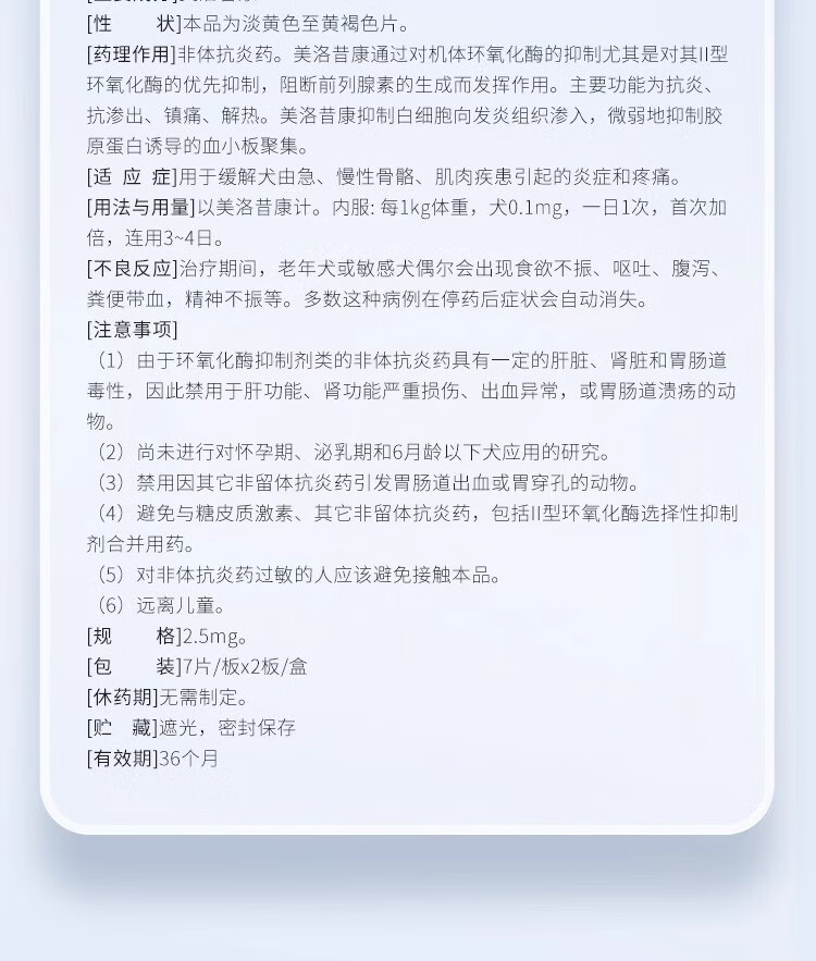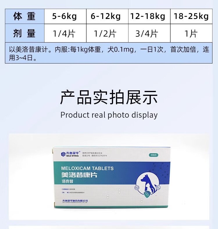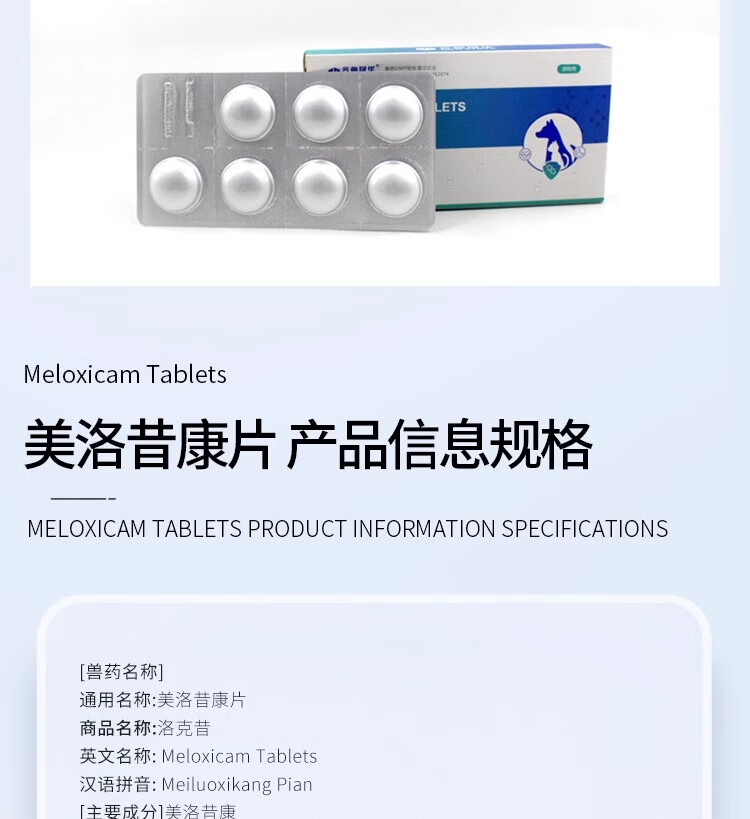 齐鲁美洛昔康宠物猫咪狗狗止痛药美洛昔康注射液犬关节肿瘤止疼针骨折术后镇痛 7粒/板 洛克昔片+喂药器 现货当日发
