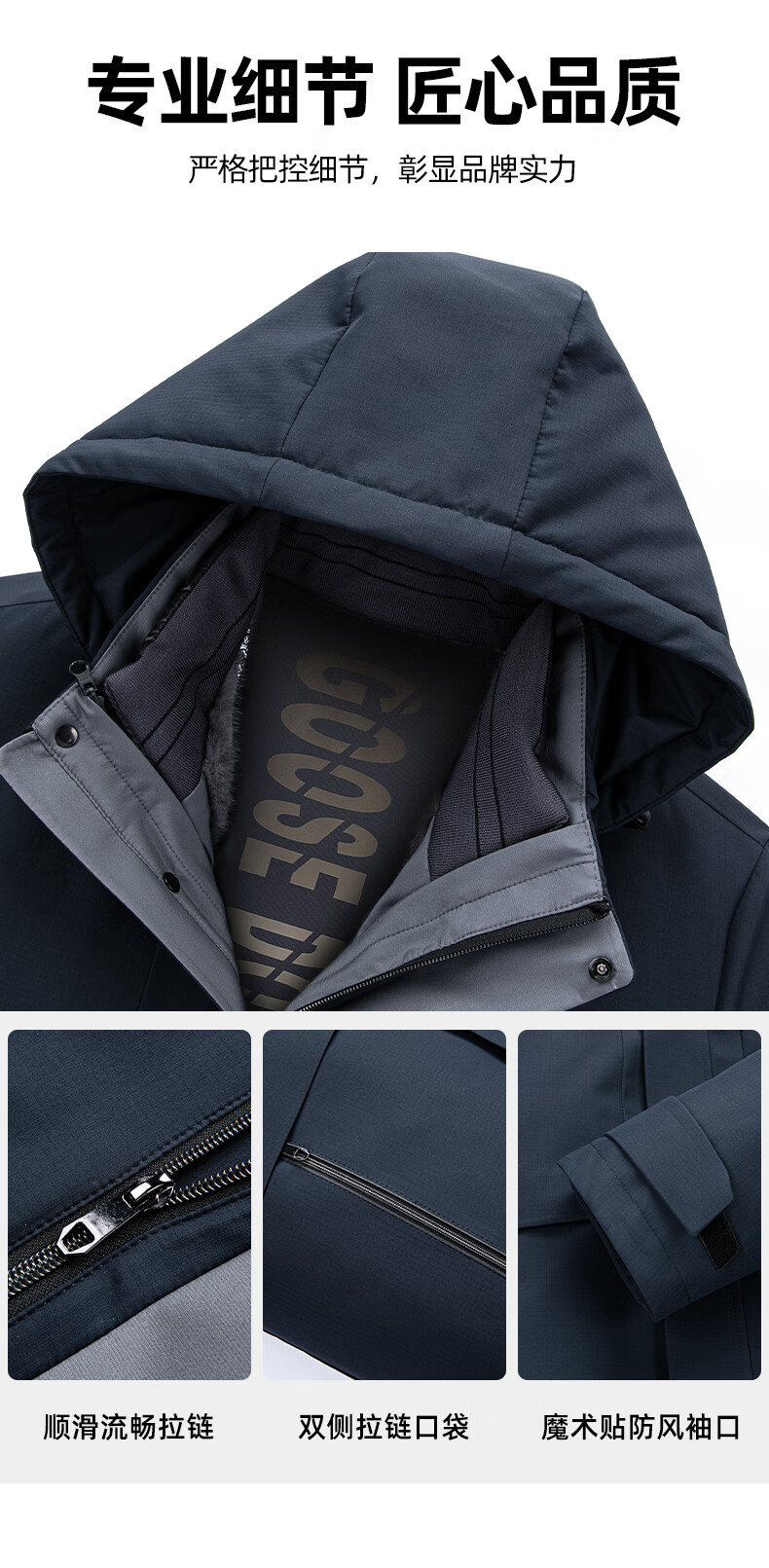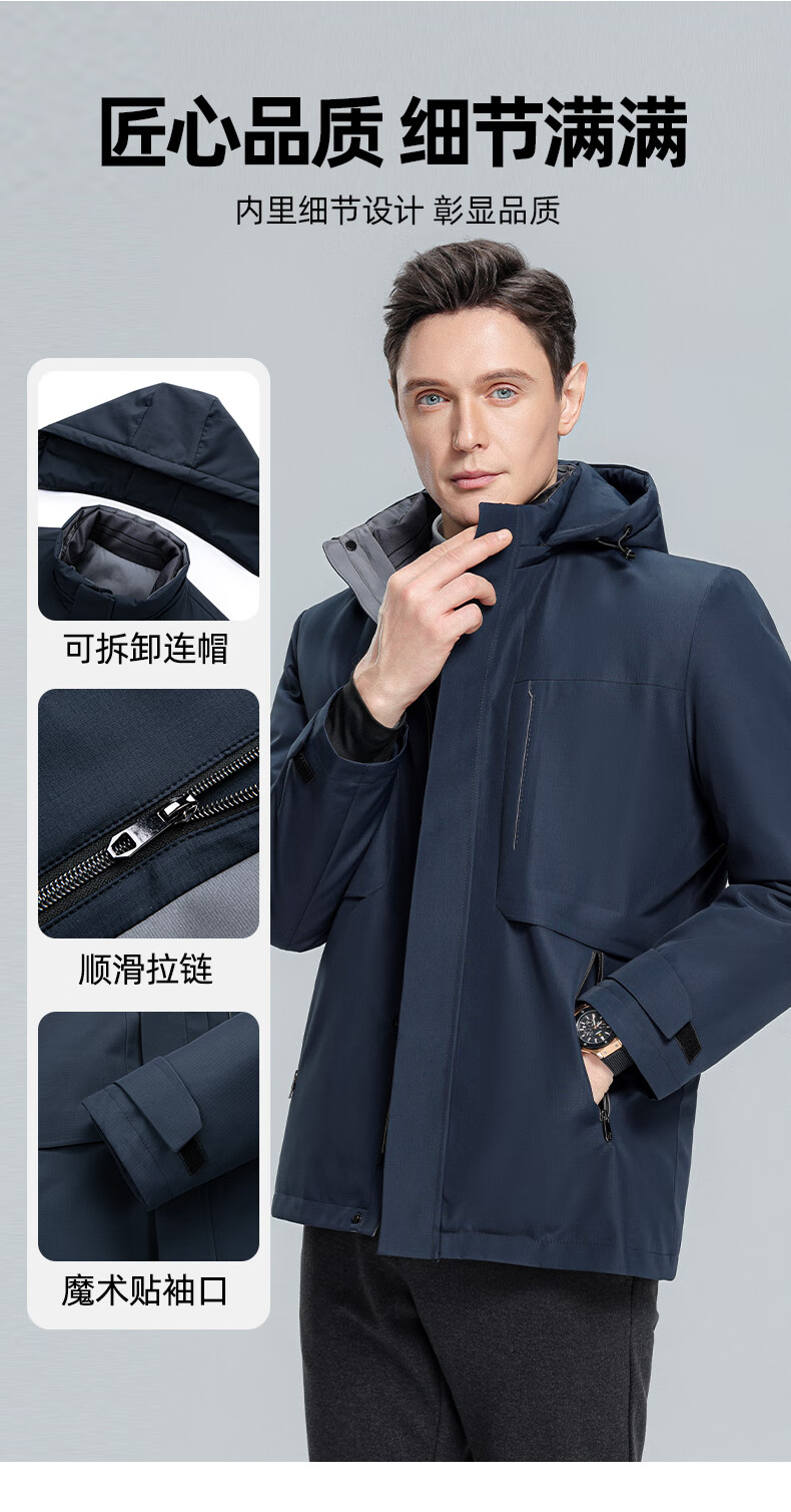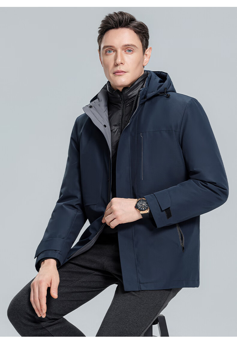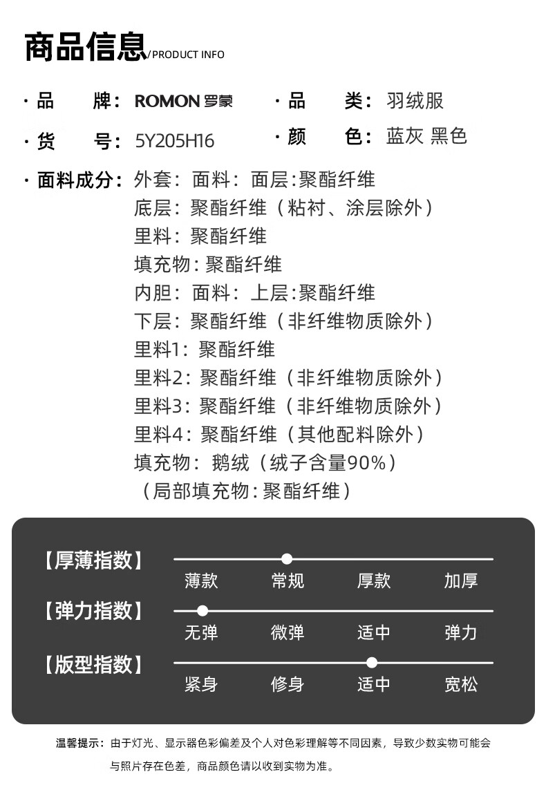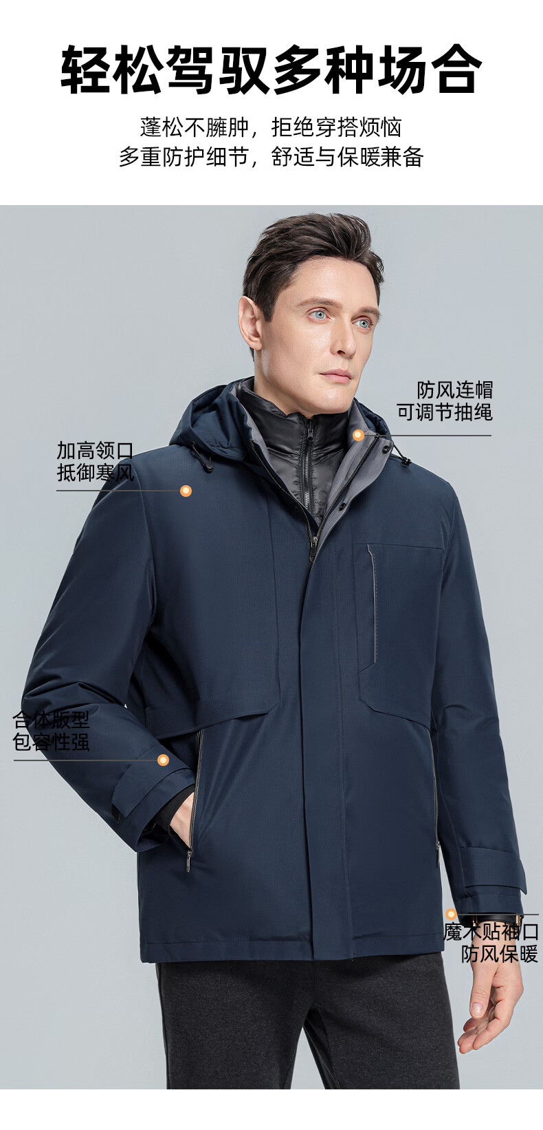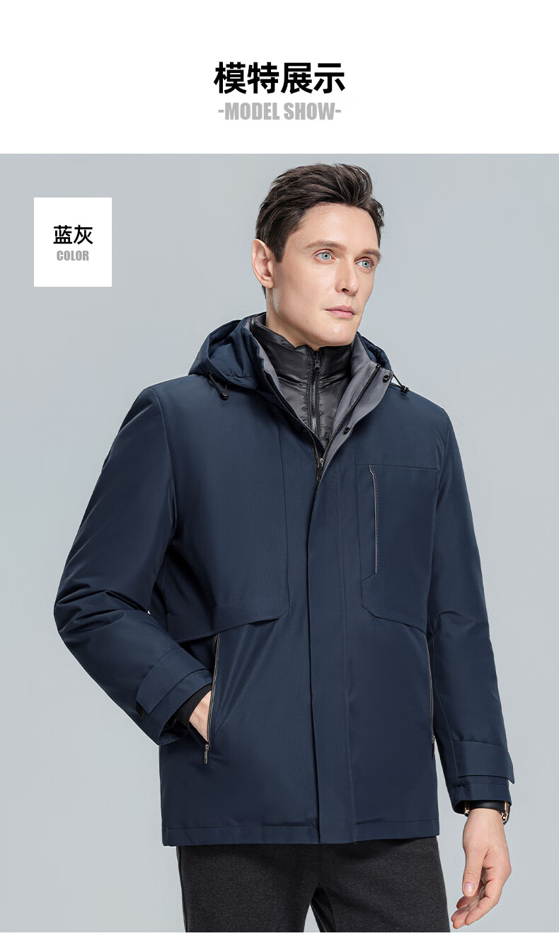 罗蒙(ROMON)【许亚军推荐&鹅绒&火焰绒】羽绒服男冬季新款衣多穿双重保暖外套 蓝灰 3XL (190) 【建议170-185斤】
