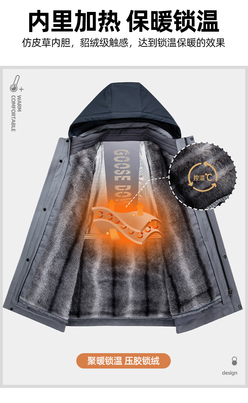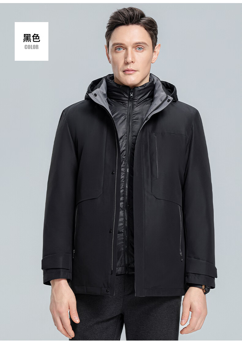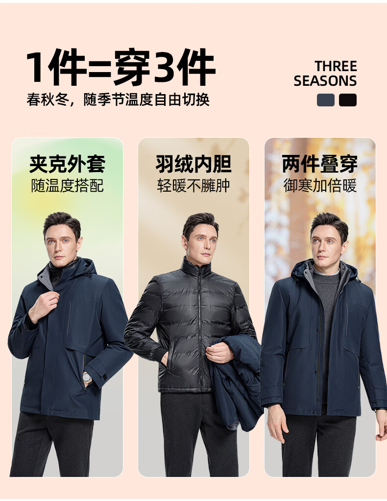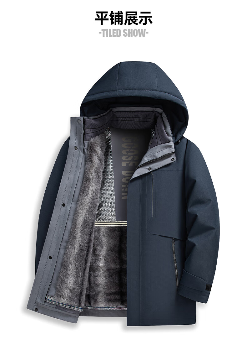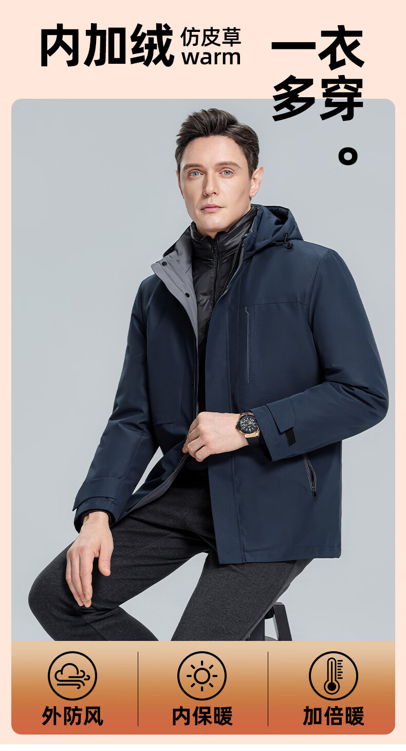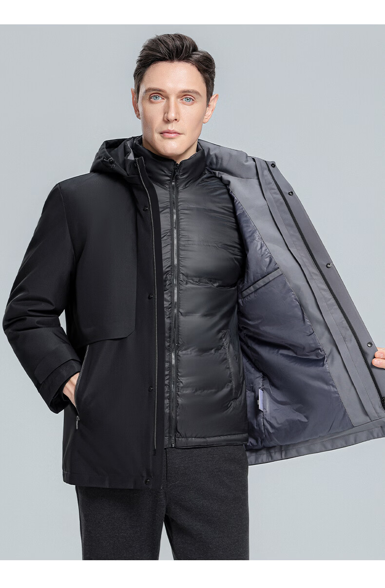 罗蒙(ROMON)【许亚军推荐&鹅绒&火焰绒】羽绒服男冬季新款衣多穿双重保暖外套 蓝灰 3XL (190) 【建议170-185斤】