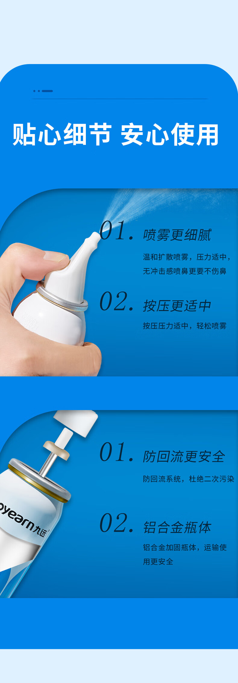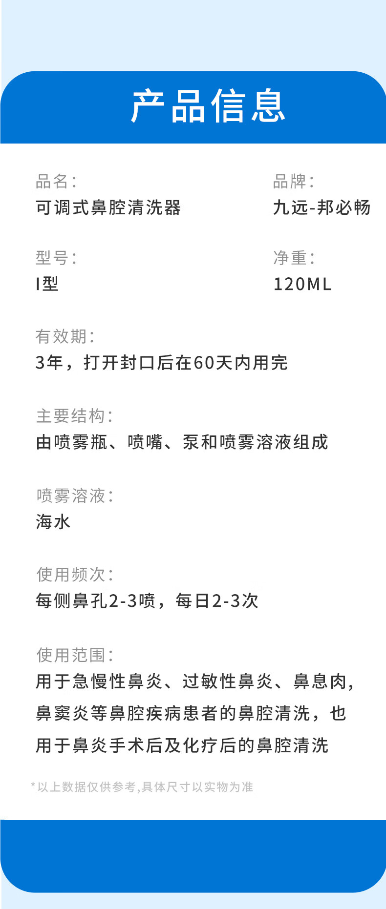 医院同款九远可调式鼻腔清洗器蓝色120ml鼻炎鼻窦炎冲洗持续出雾 医用同款蓝色120ml*1瓶