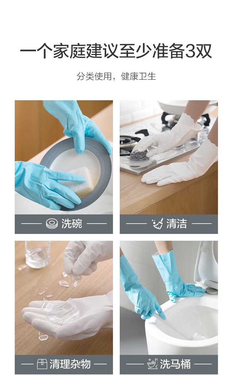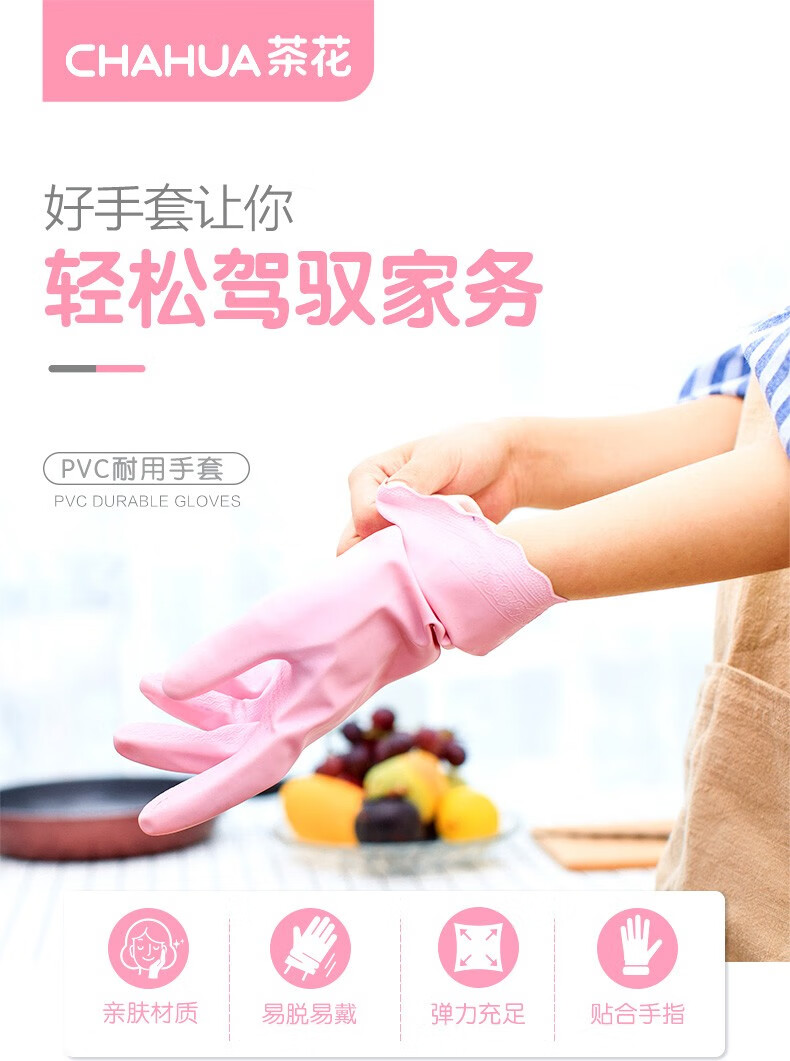 茶花(CHAHUA) 橡胶手套洗碗胶皮手套厨房防水胶手套洗衣清洁家务手套颜色随机 普通 L号 2双 【颜色随机】