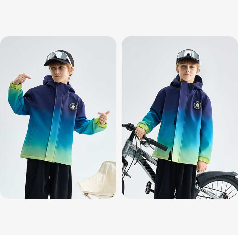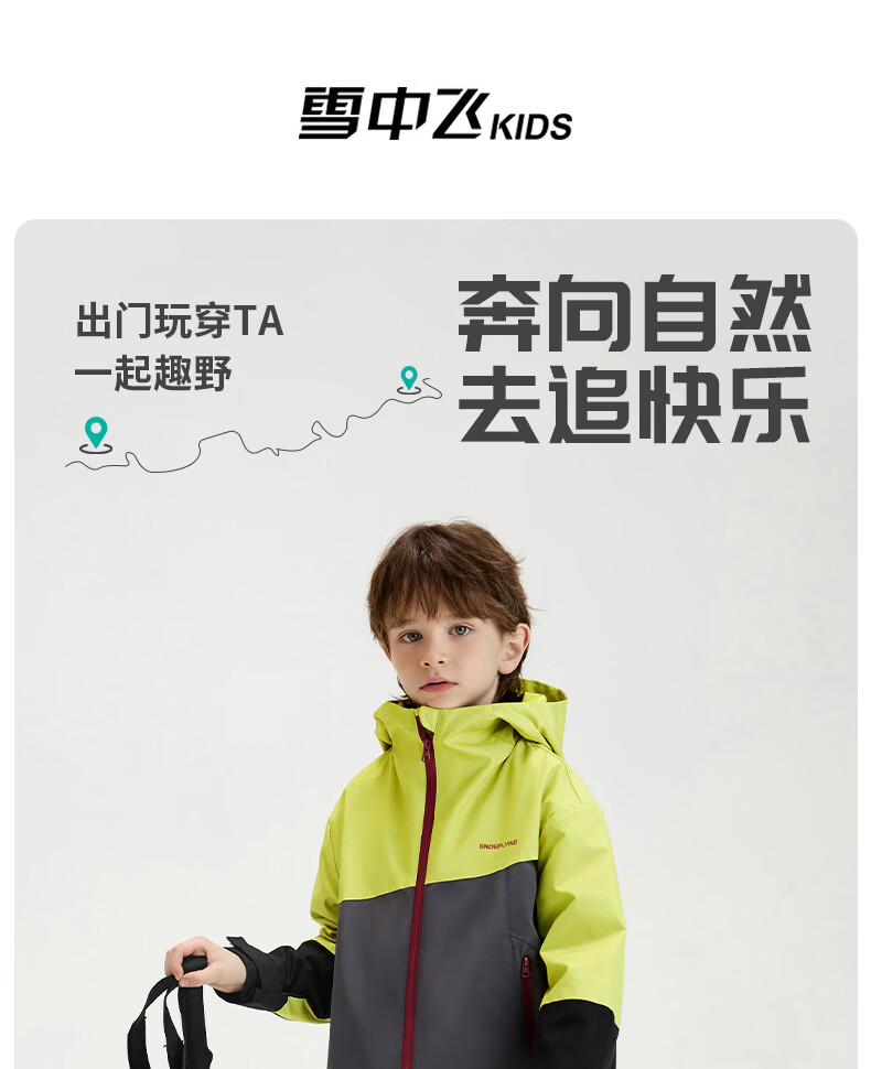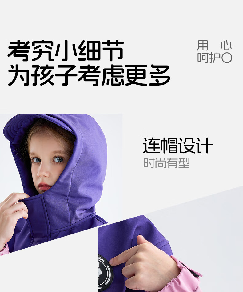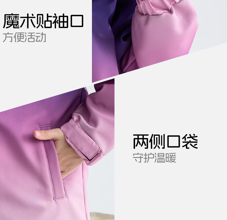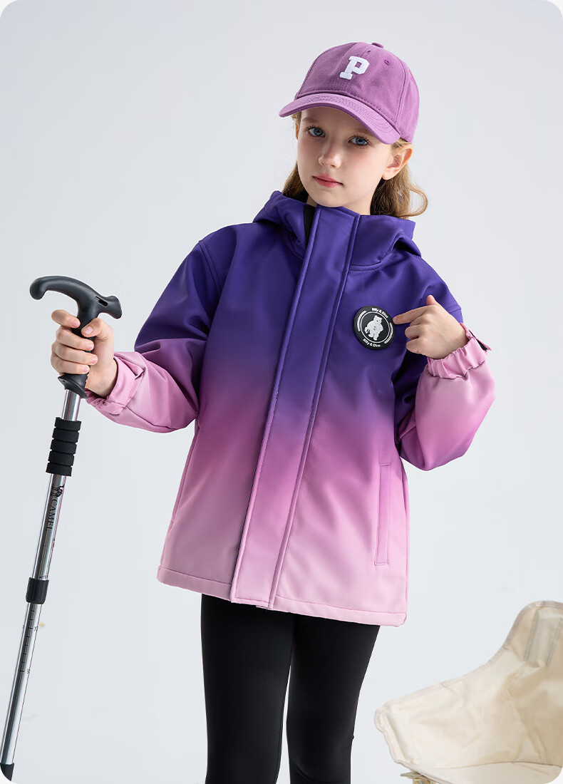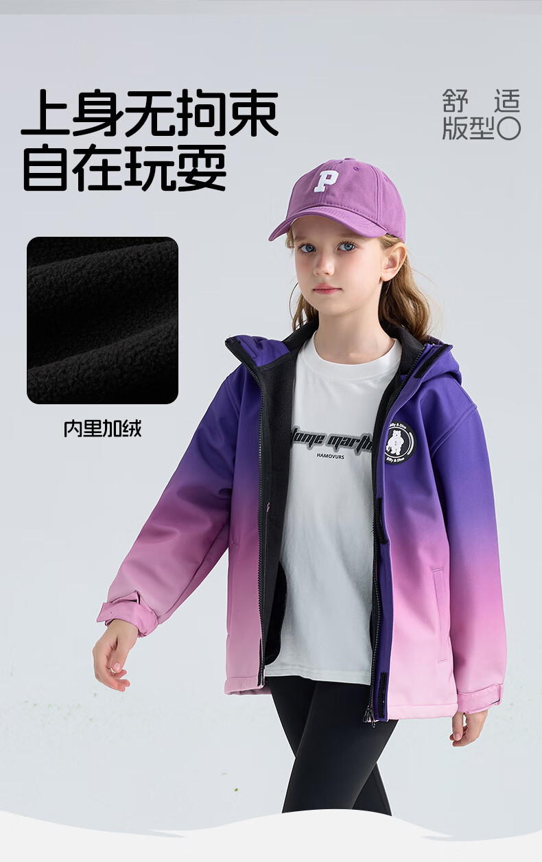 雪中飞童装儿童外套新款秋冬装女童一体加绒外套大童户外时尚渐变防风衣 紫粉色 170