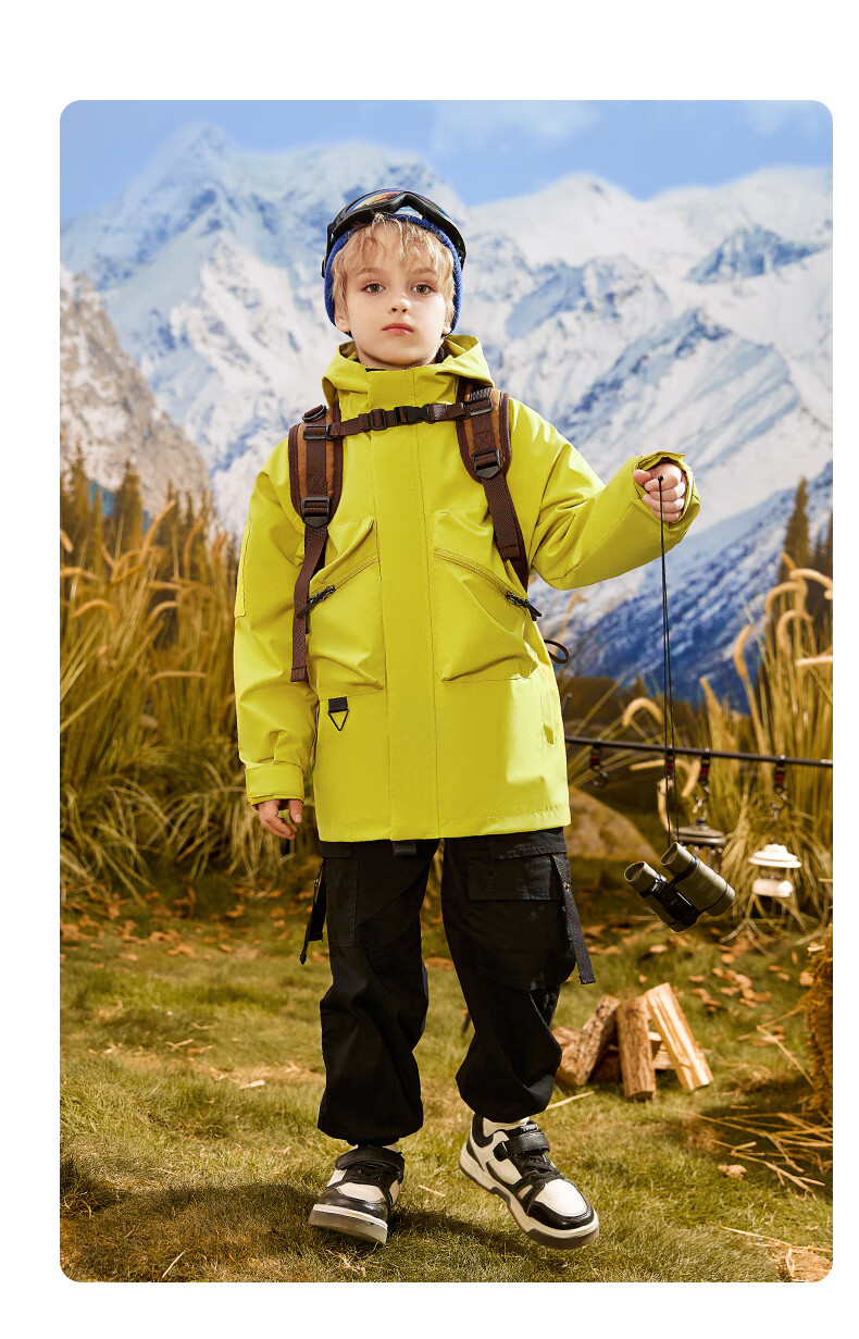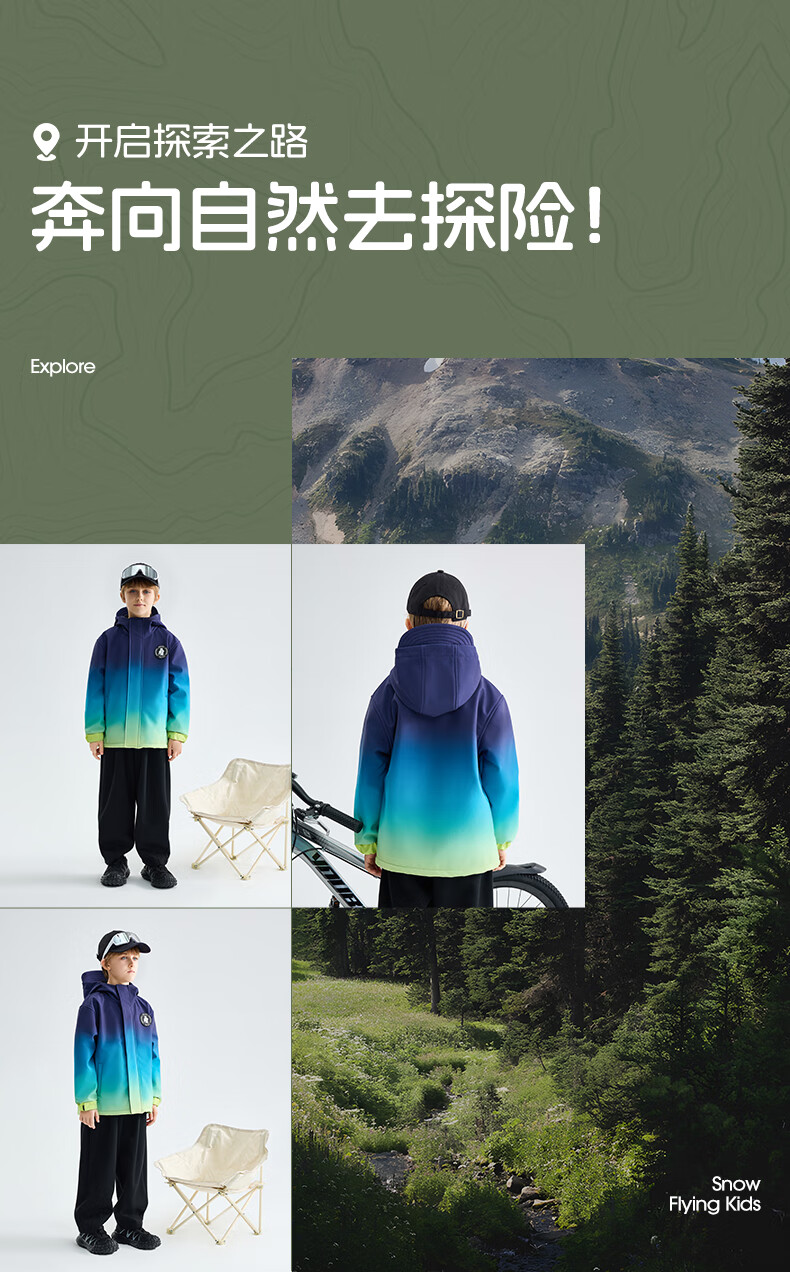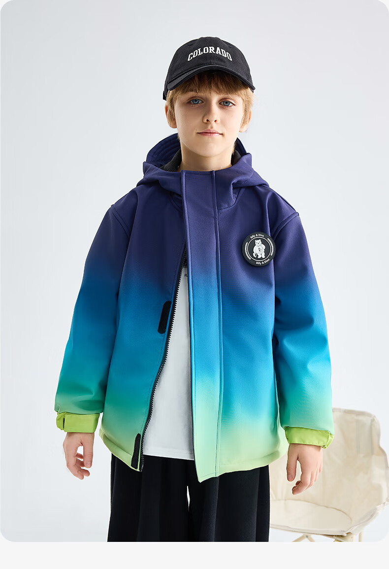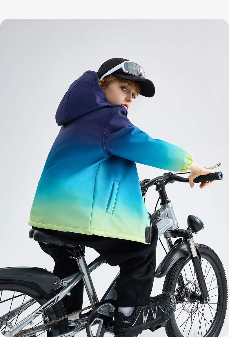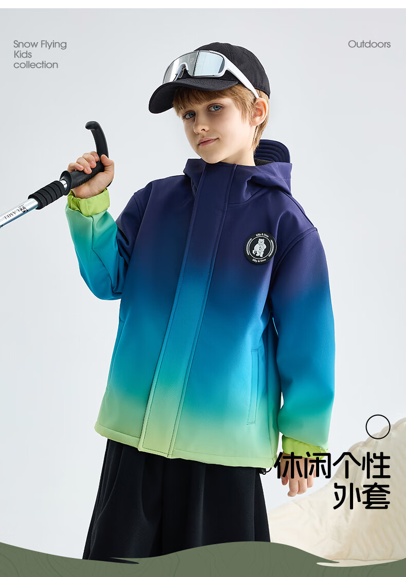 雪中飞童装儿童外套新款秋冬装女童一体加绒外套大童户外时尚渐变防风衣 紫粉色 170