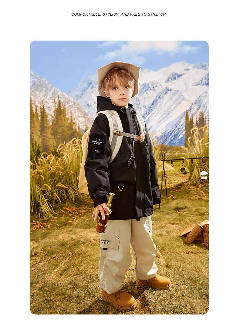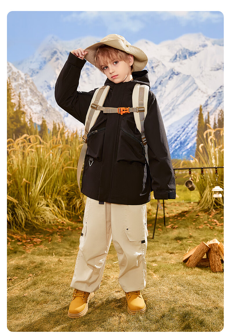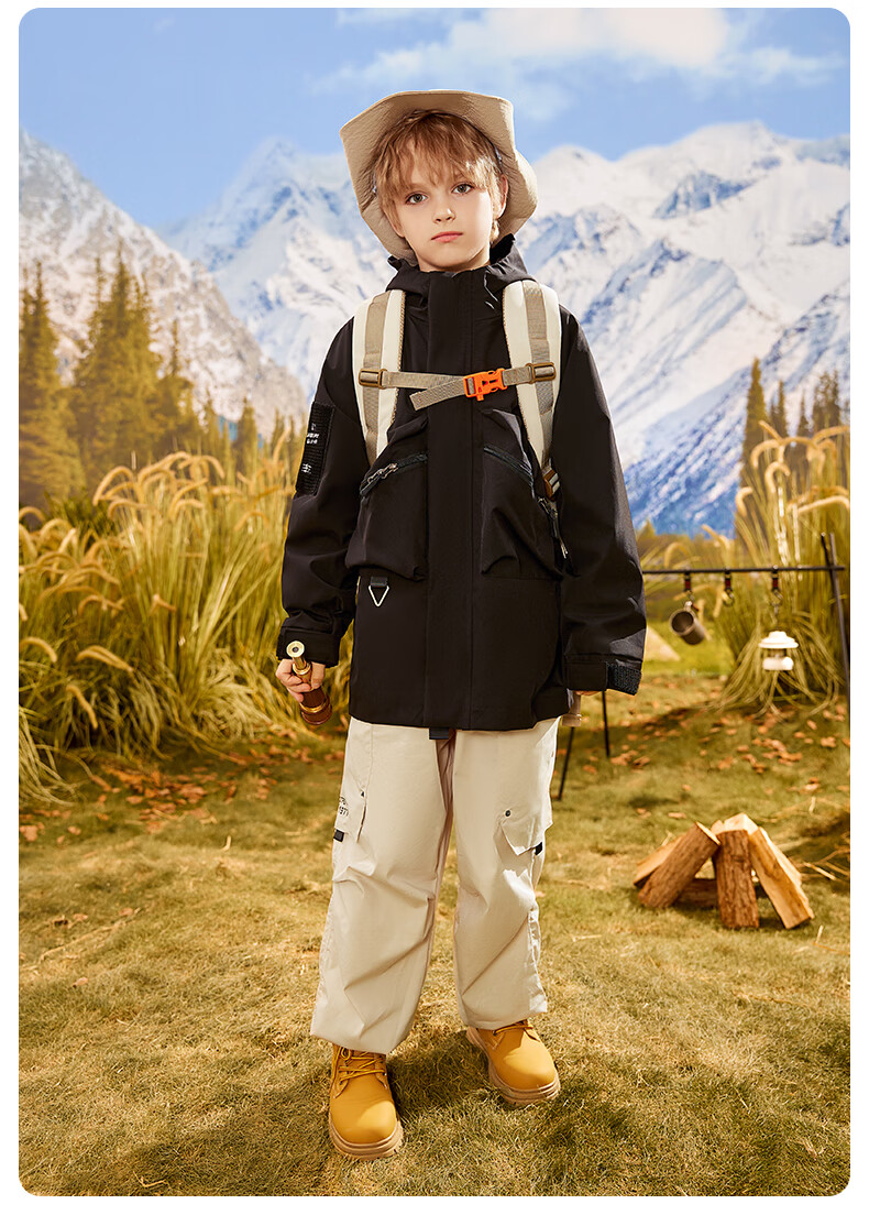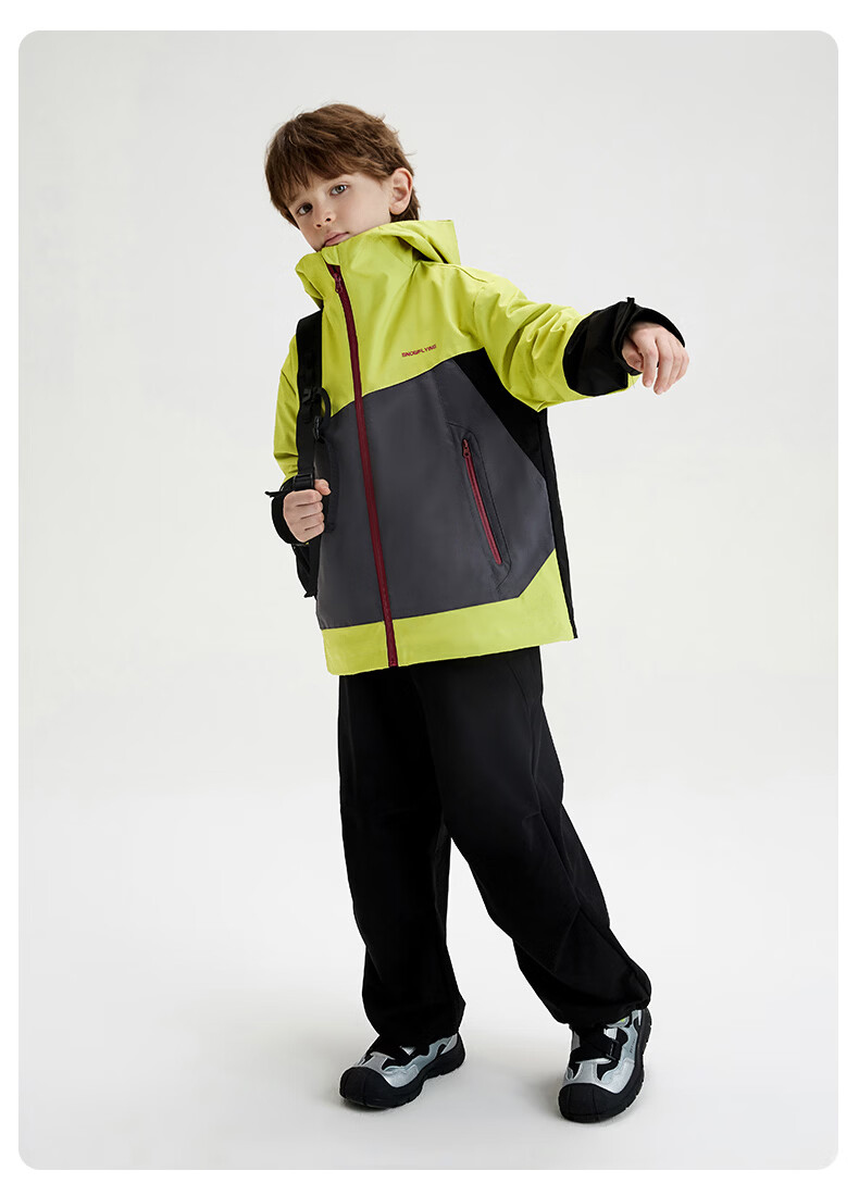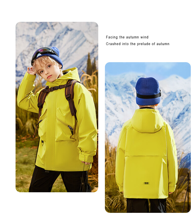 雪中飞童装儿童外套新款秋冬装女童一体加绒外套大童户外时尚渐变防风衣 紫粉色 170