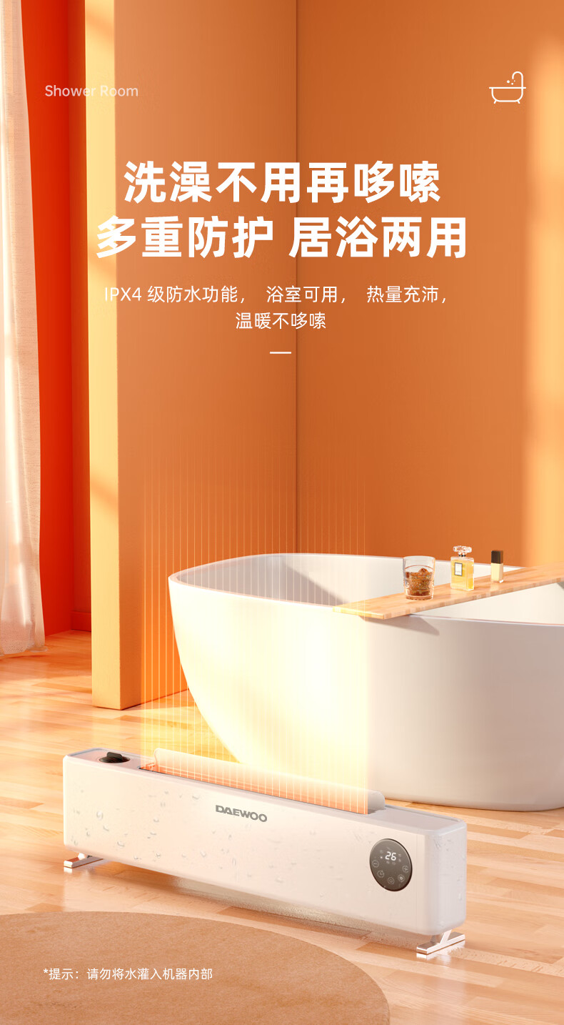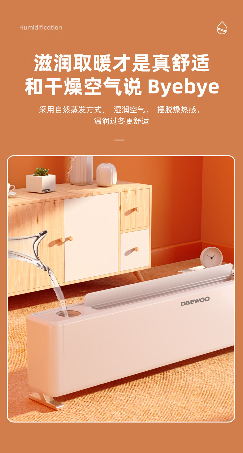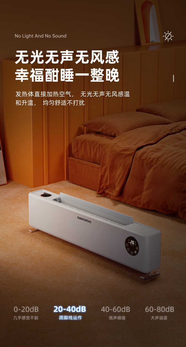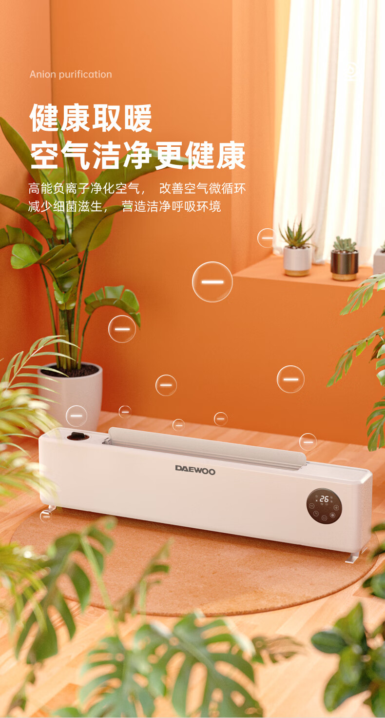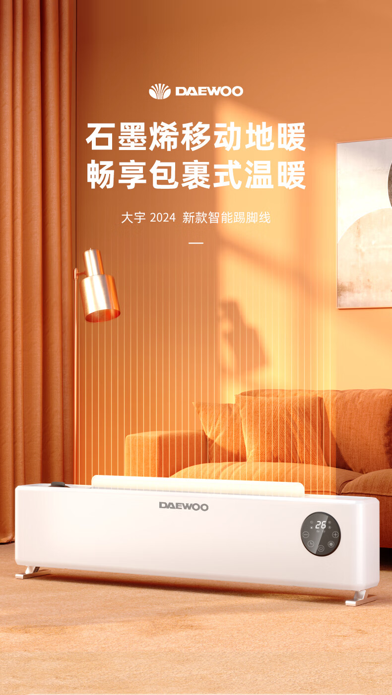 大宇(DAEWOO)石墨烯踢脚线取暖器/电暖器/电暖气/暖气片/烤火炉家用卧室加湿语音防水电暖风负离子净化移动地暖 DY-QN01(石墨烯语音款)