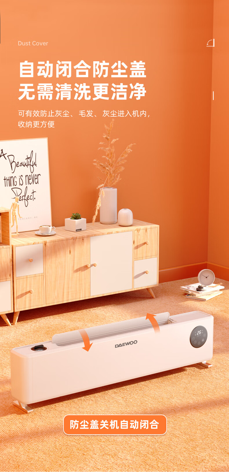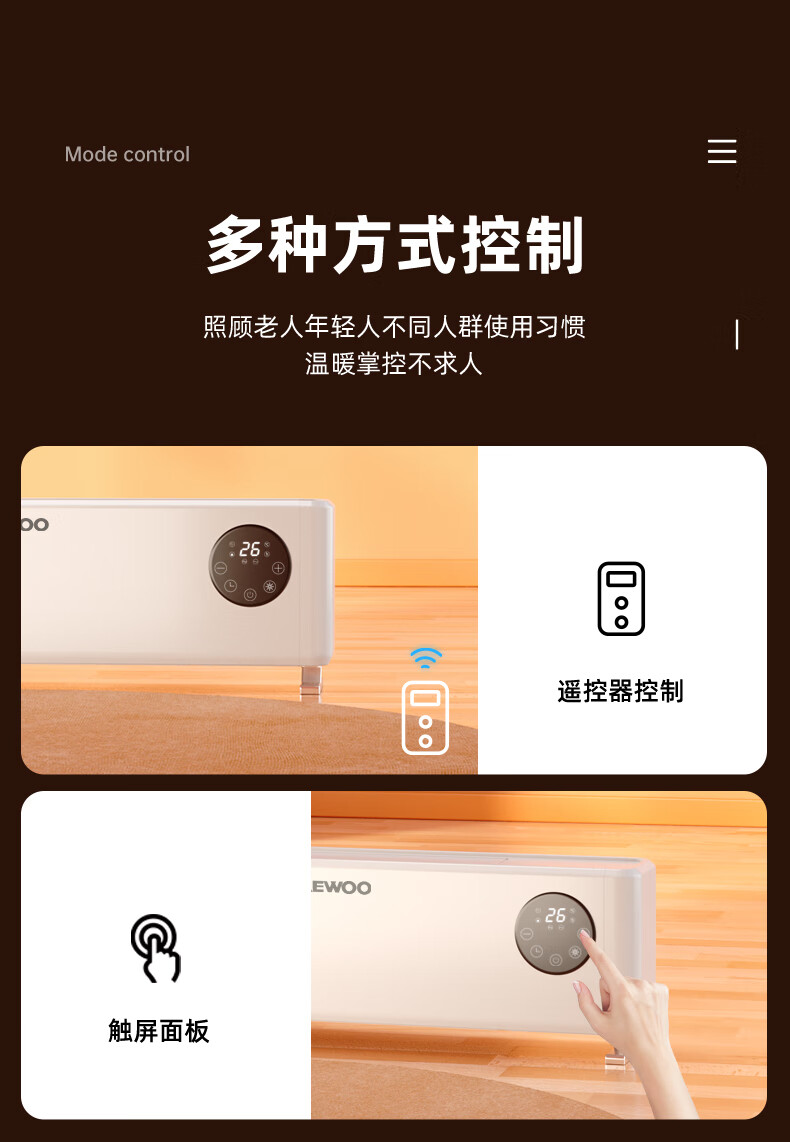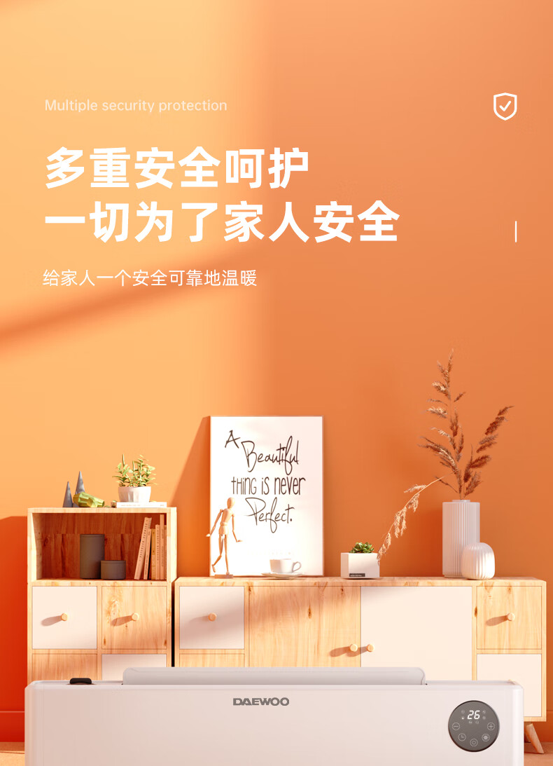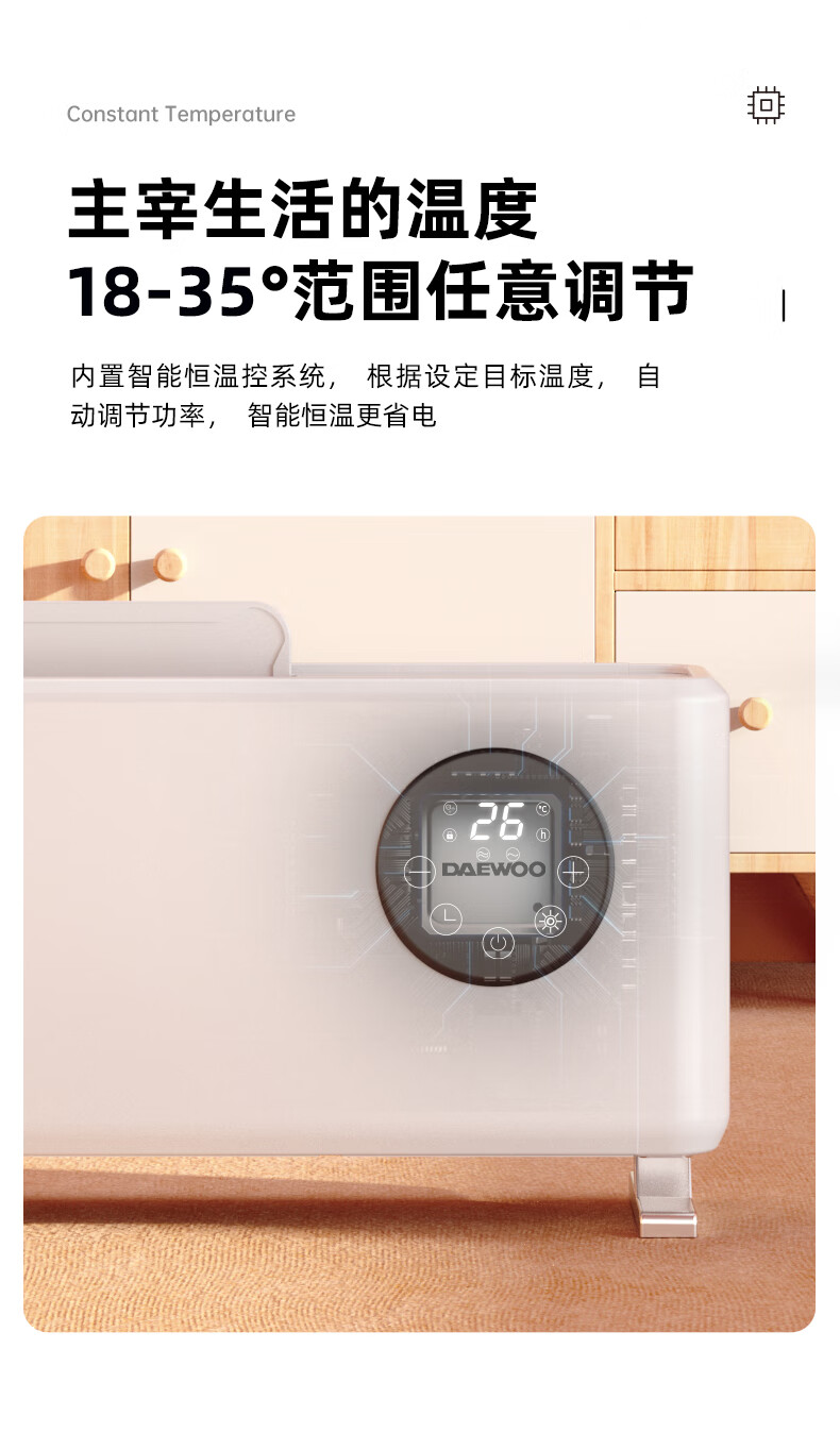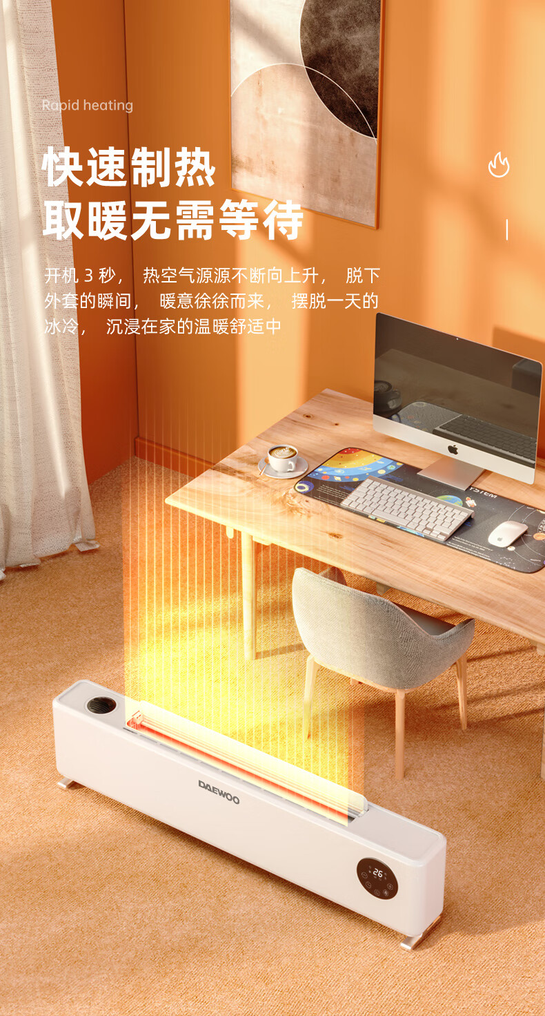 大宇(DAEWOO)石墨烯踢脚线取暖器/电暖器/电暖气/暖气片/烤火炉家用卧室加湿语音防水电暖风负离子净化移动地暖 DY-QN01(石墨烯语音款)