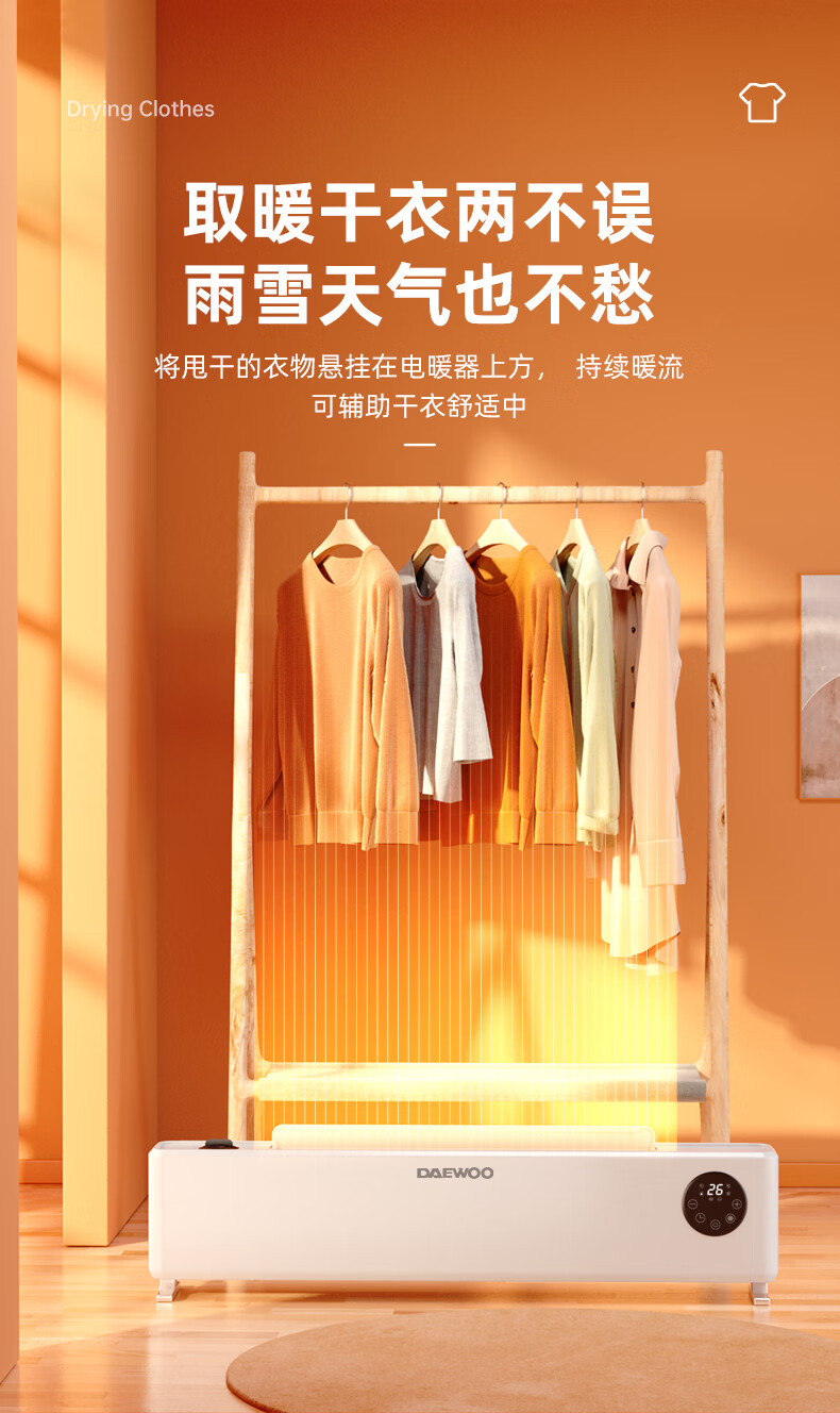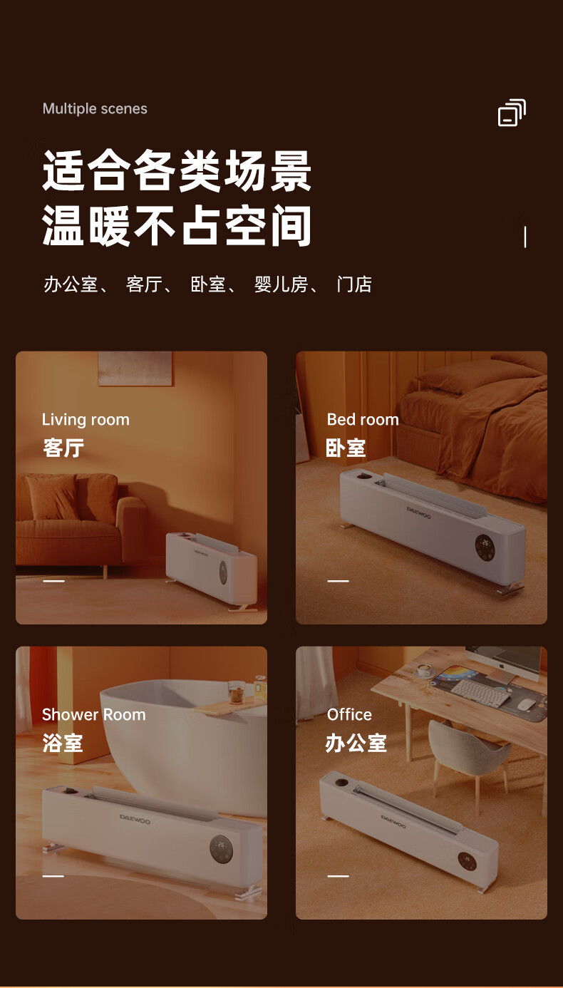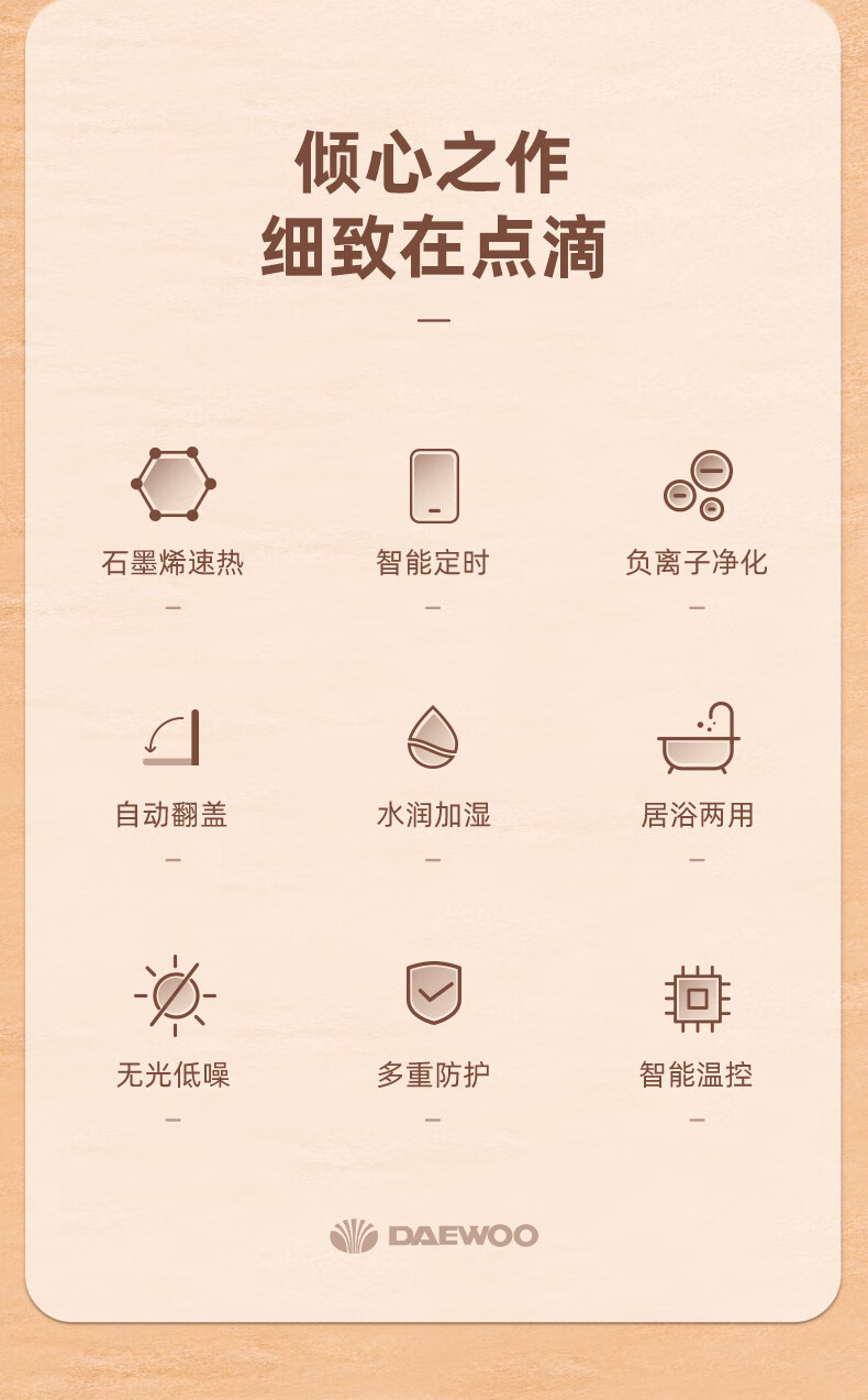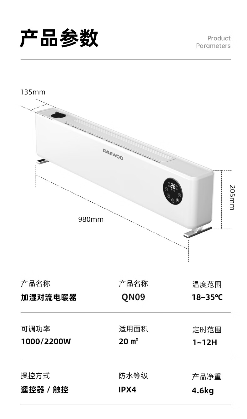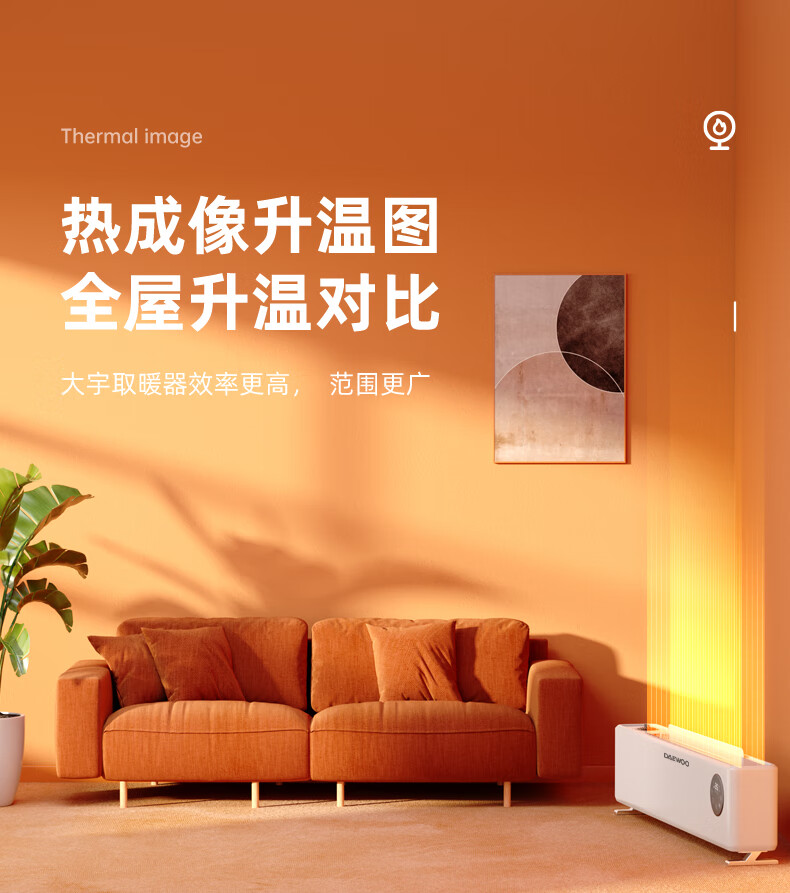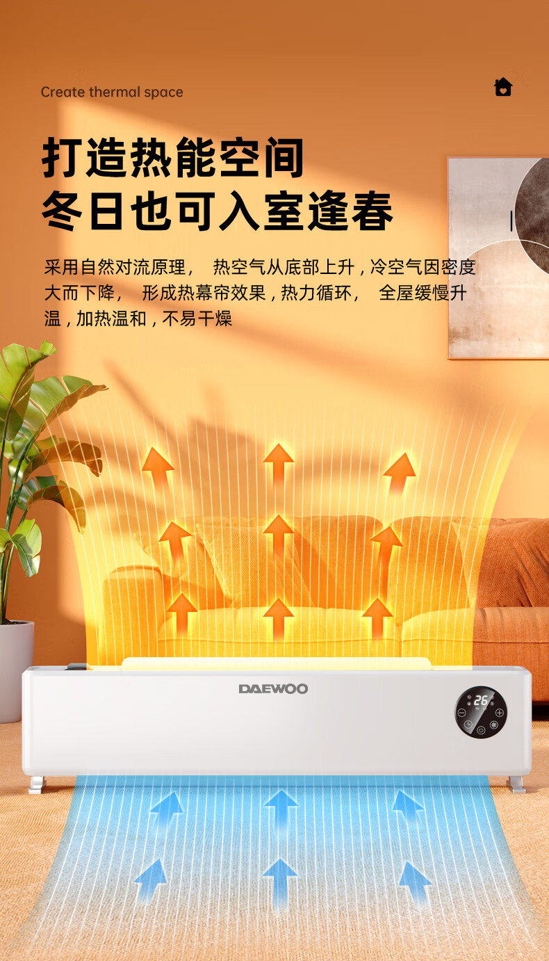 大宇(DAEWOO)石墨烯踢脚线取暖器/电暖器/电暖气/暖气片/烤火炉家用卧室加湿语音防水电暖风负离子净化移动地暖 DY-QN01(石墨烯语音款)