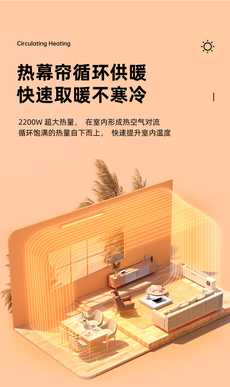 美的(Midea)【石墨烯速热】直流变频家用暖风机取暖器/小型电暖器电暖气/电热风扇/节能小太阳暖脚神器HFS20DQ